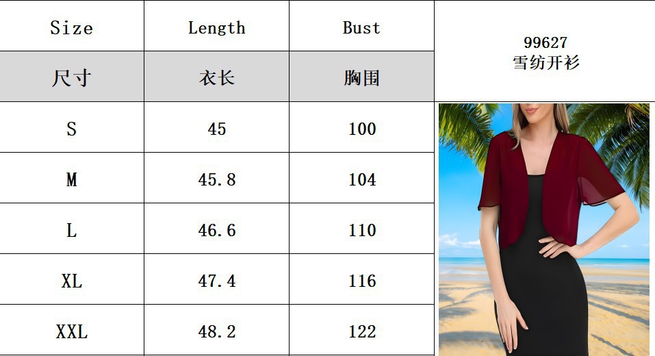 2025 Amazon Summer 새로운 독립 스테이션 유럽과 미국의 Tiktok 크로스 보더 쉬폰 여성용 반팔 카디건 재킷