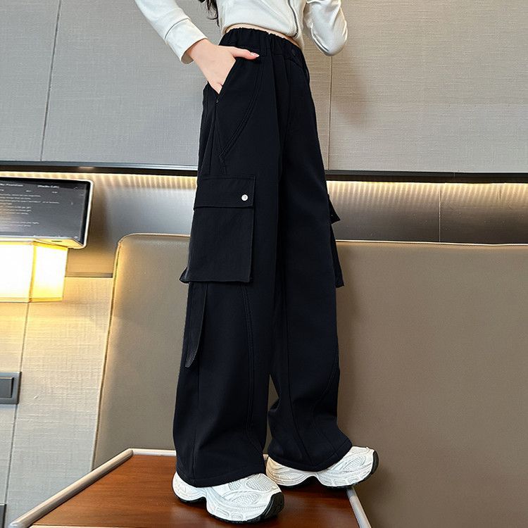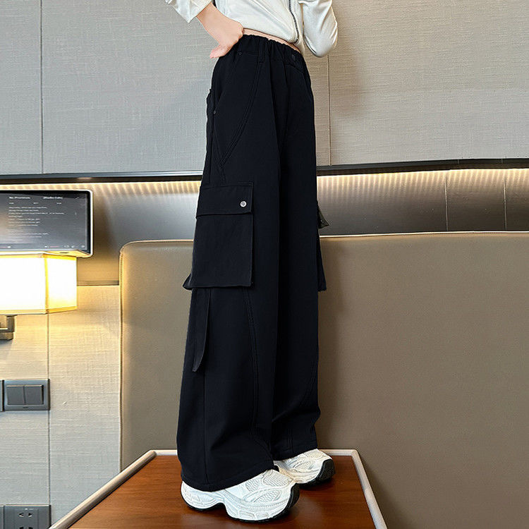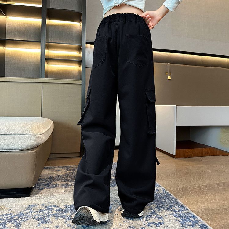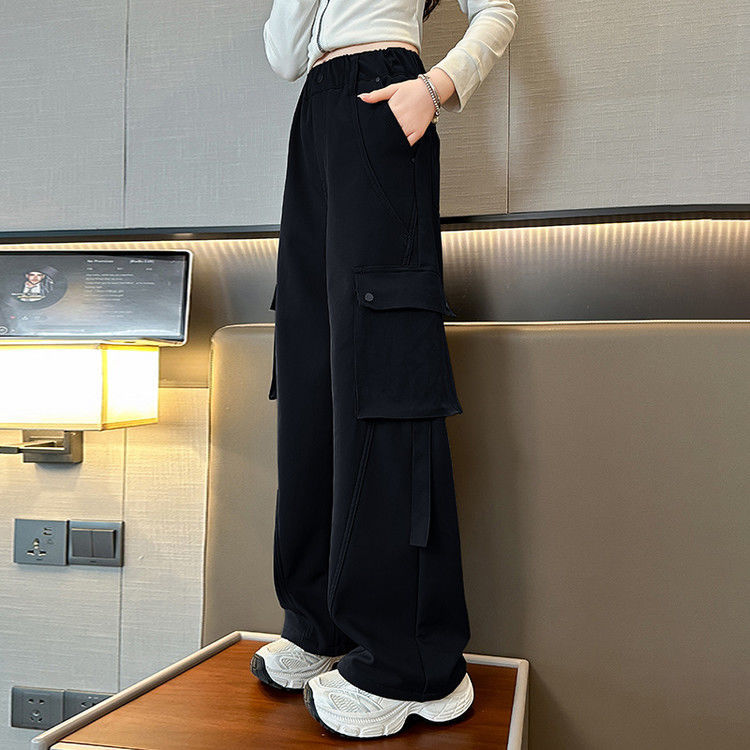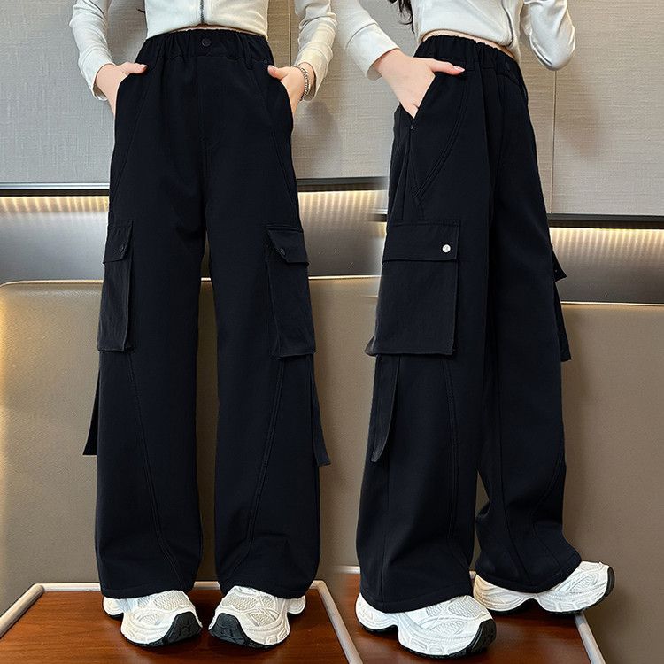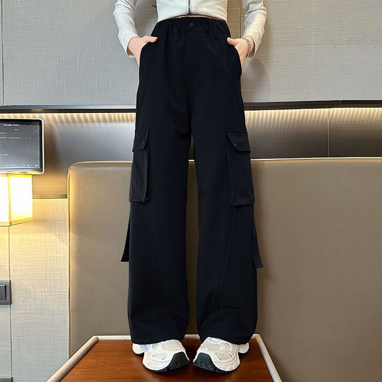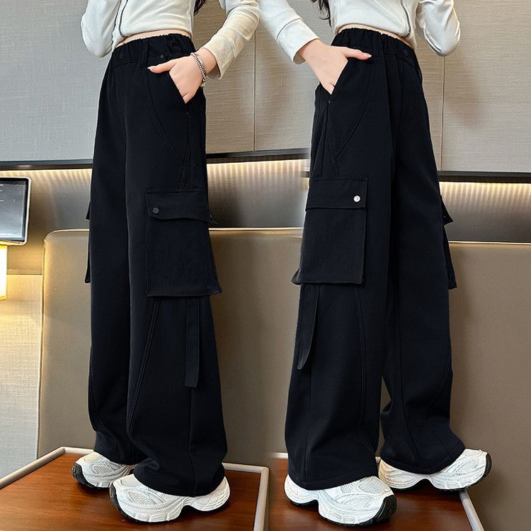 소녀 작업복 봄과 가을 트렌디 한 시원한 중대형 어린이 스트레이트 배럴 느슨한 넓은 다리 바지 스포츠 바지 2025 봄 새로운 도착