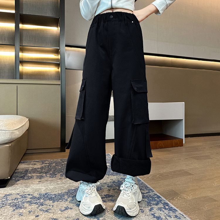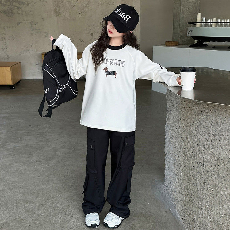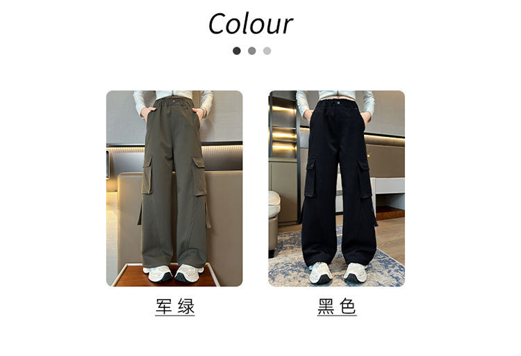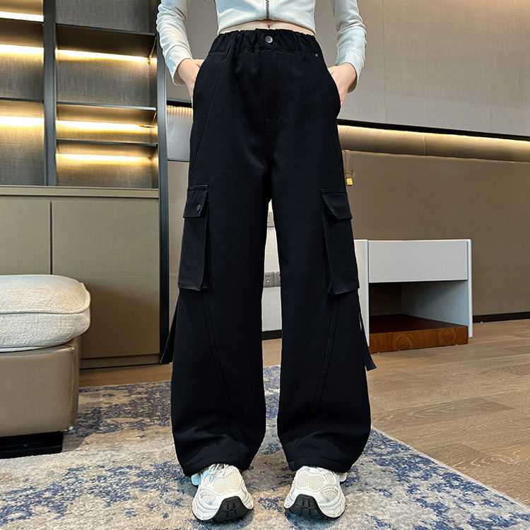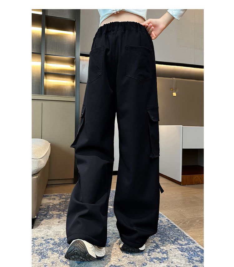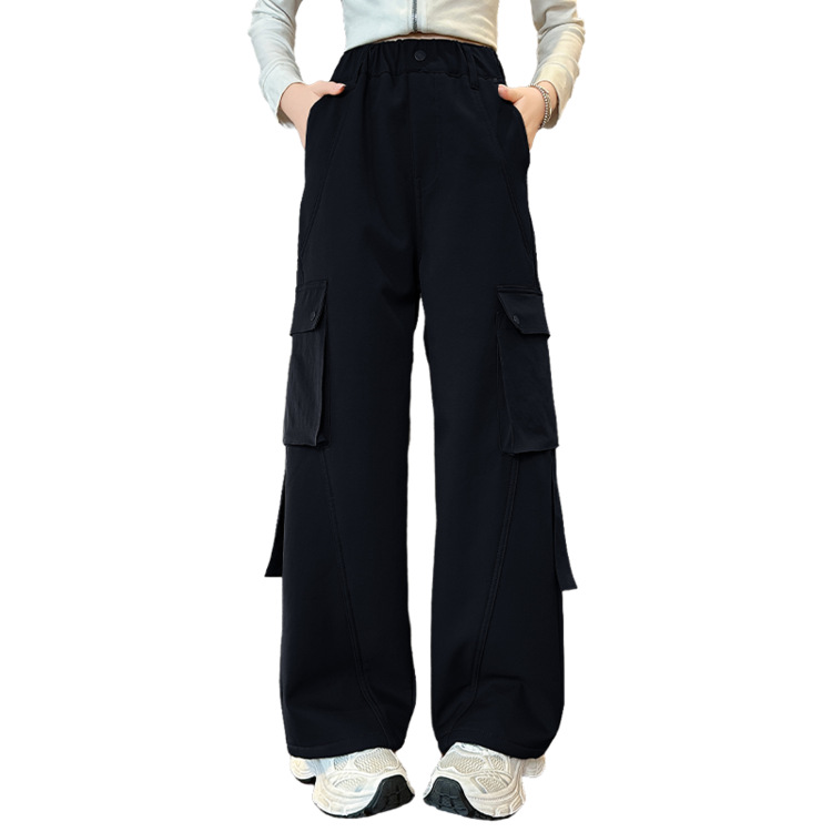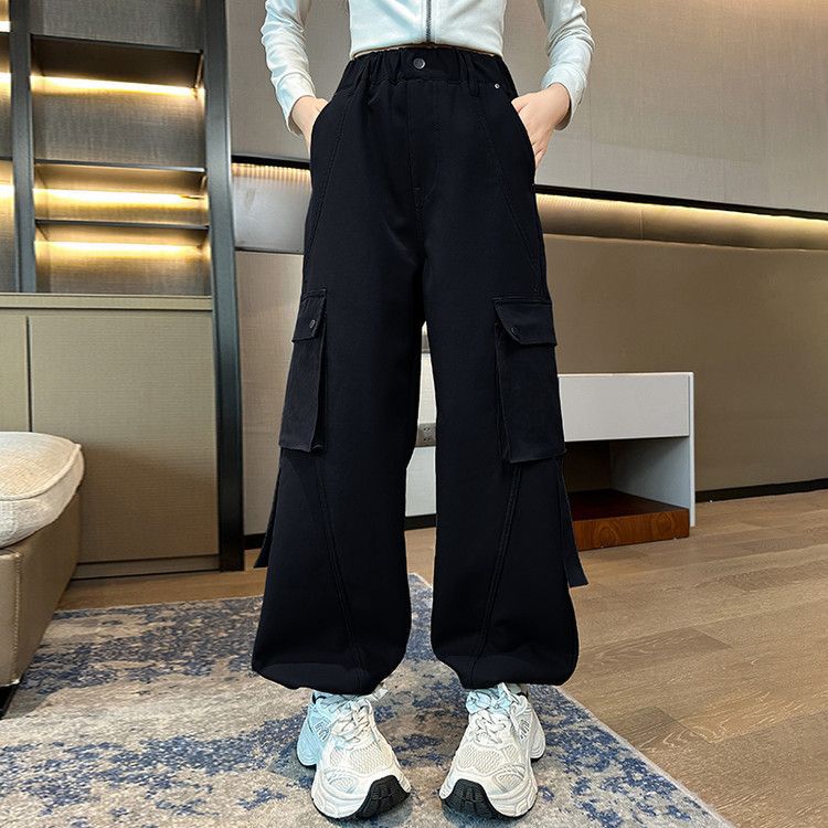 소녀 작업복 봄과 가을 트렌디 한 시원한 중대형 어린이 스트레이트 배럴 느슨한 넓은 다리 바지 스포츠 바지 2025 봄 새로운 도착