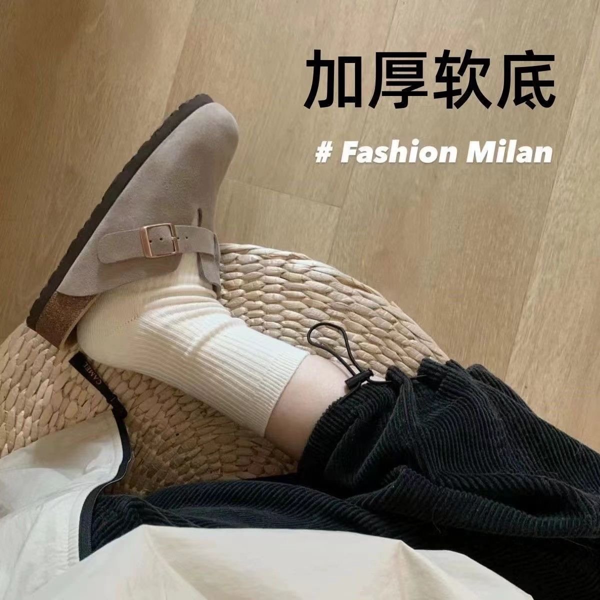 뉴 스타일 여자 두꺼운 밑창 하프 드래그 한국식 슬립 온 슬리퍼 본켄 슈즈 여자 봄 플러스 사이즈 2024 올 매치스토어 가기