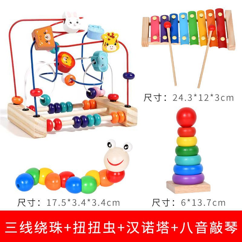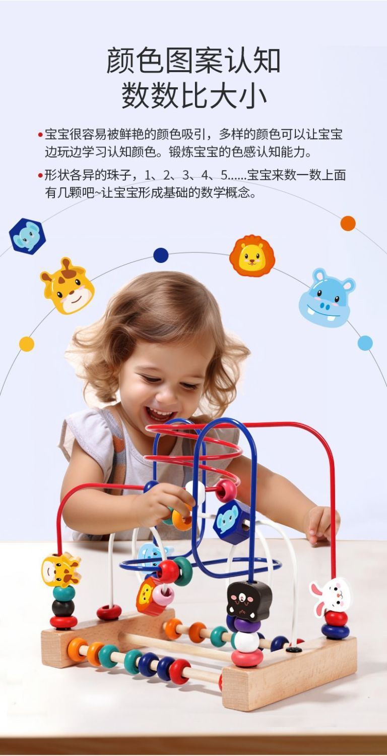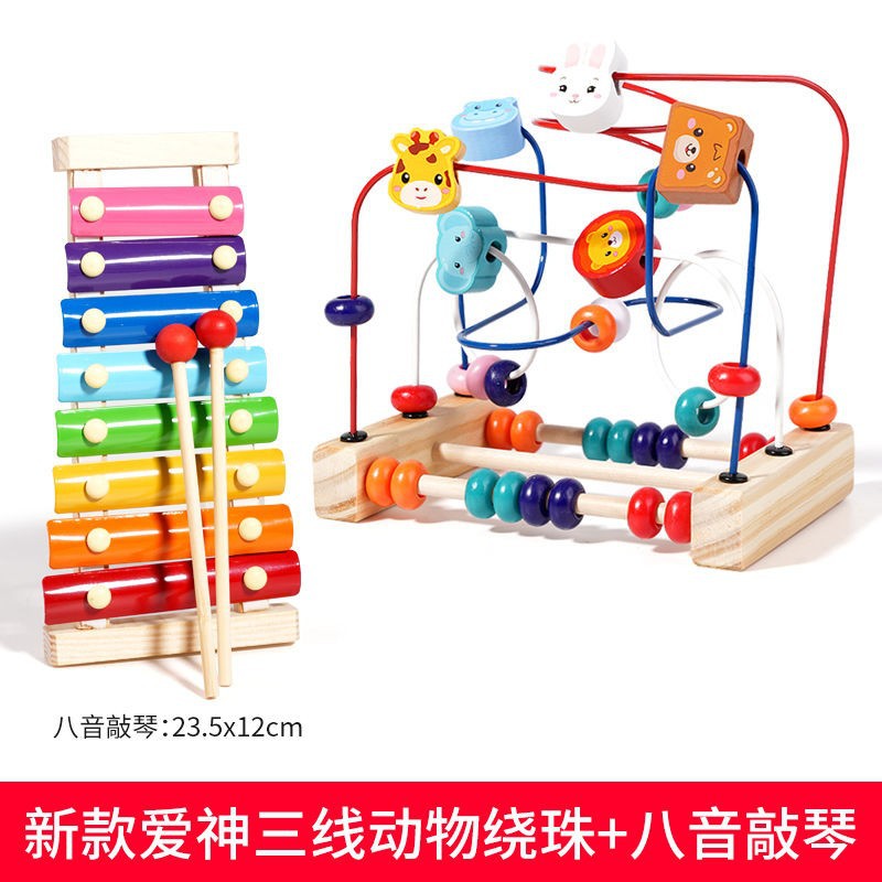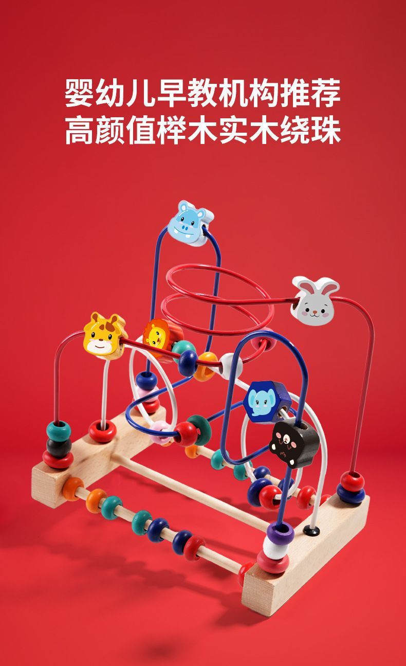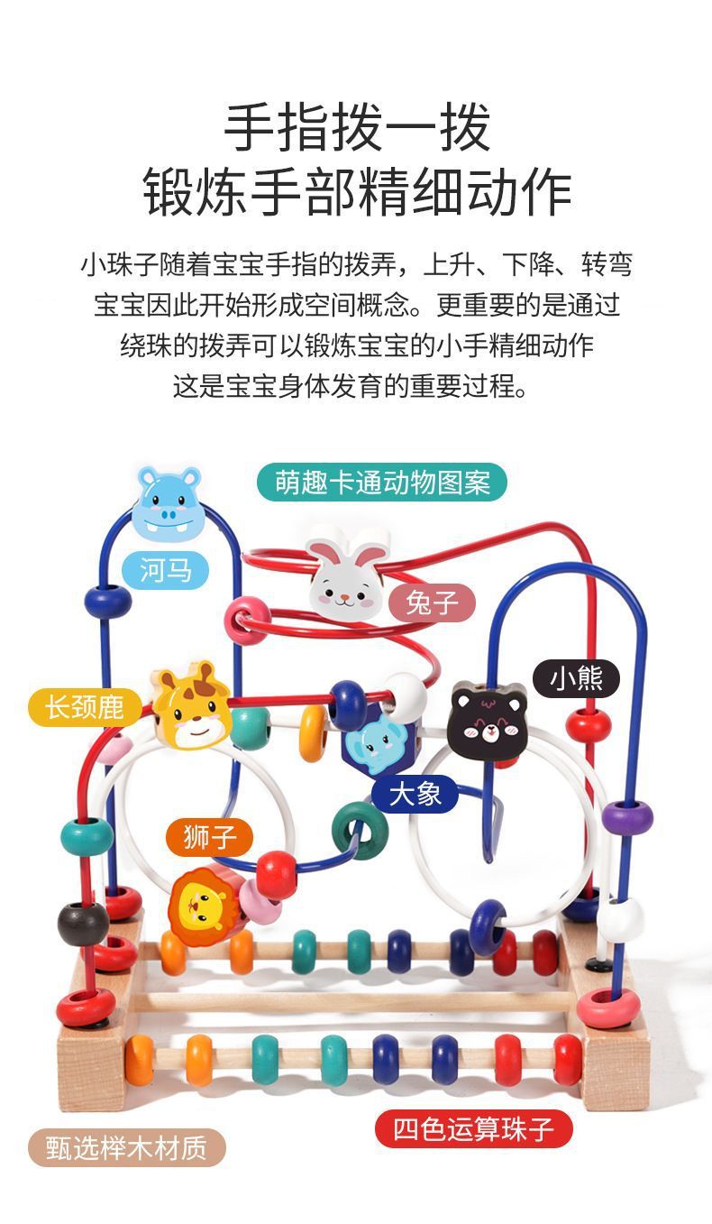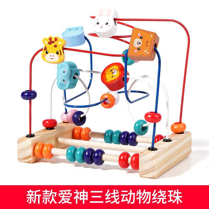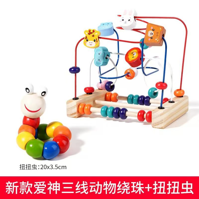 다기능 동물 구슬 아기 어린이 나무 3 트랙 구슬 장난감 손 눈 조정 훈련 조기 교육 교육 건물 블록