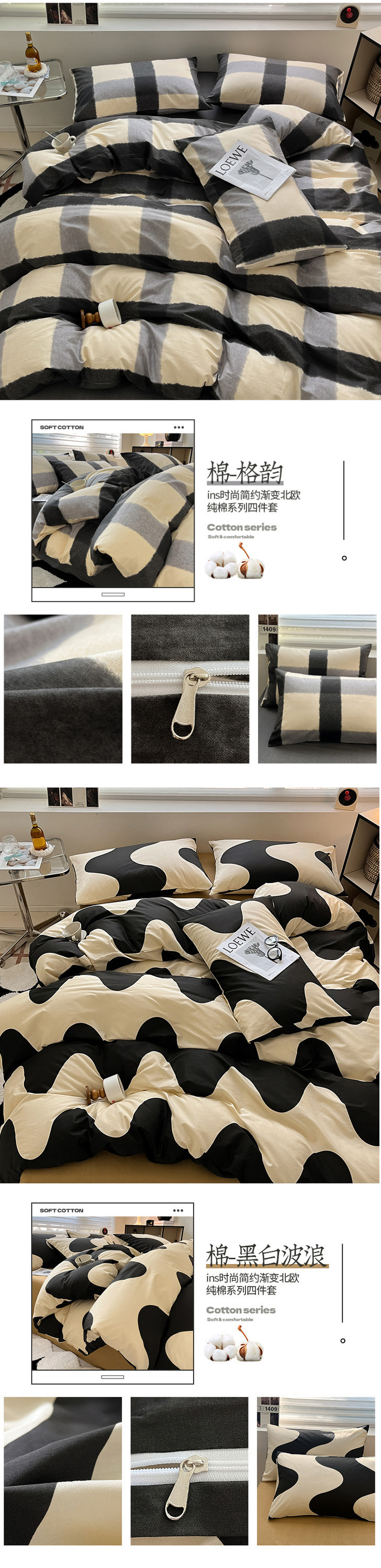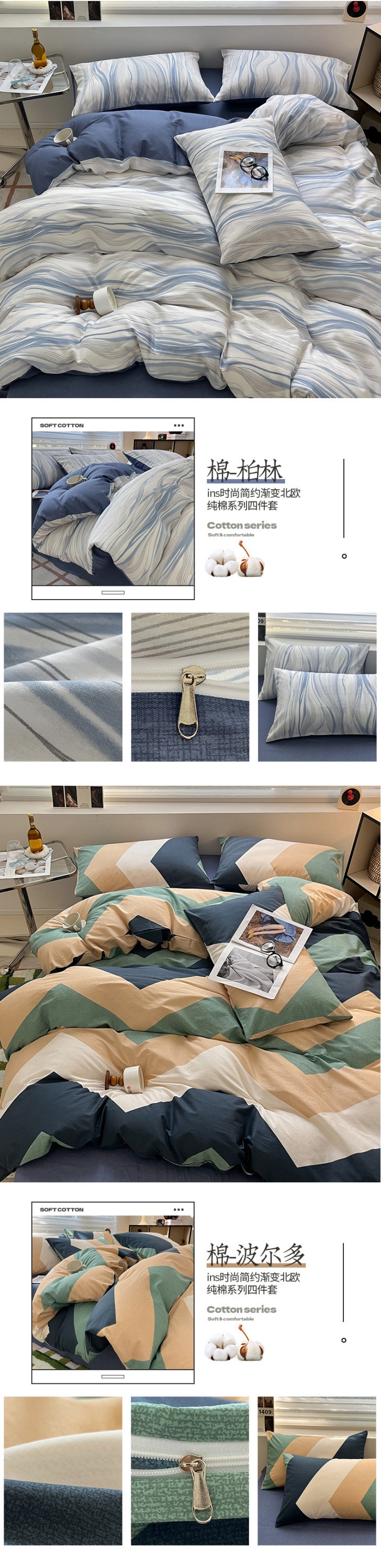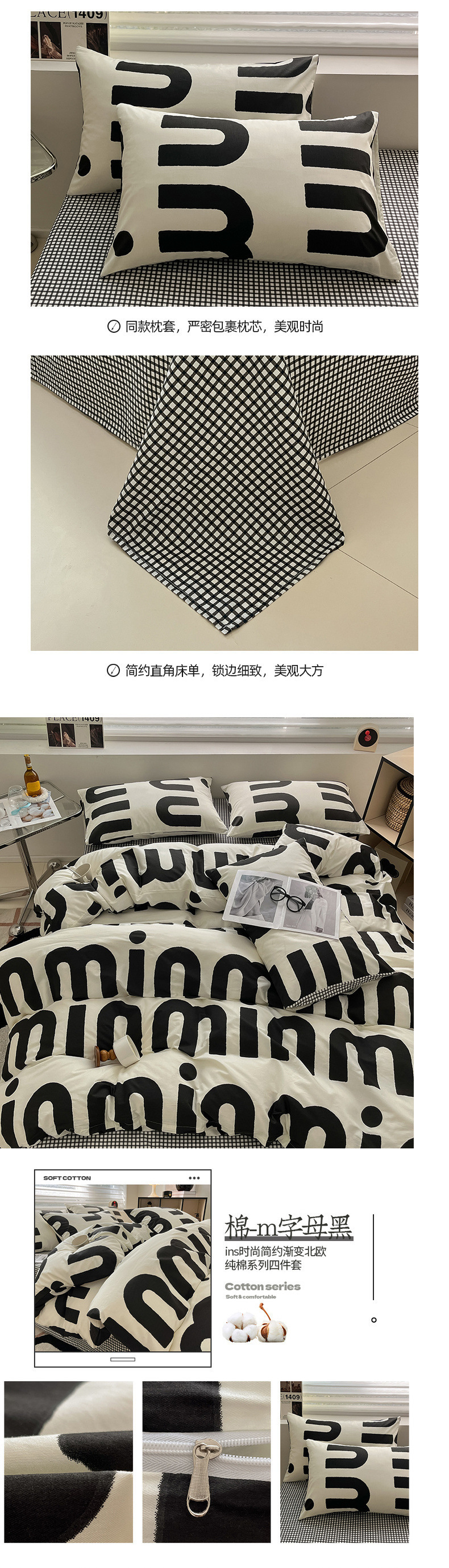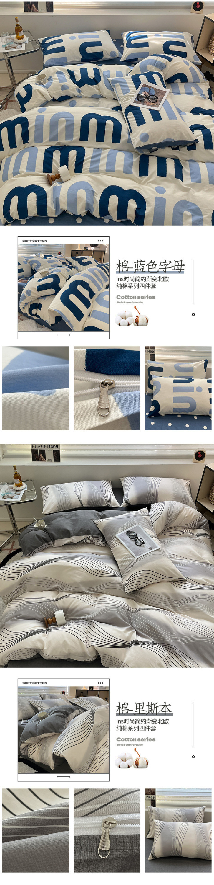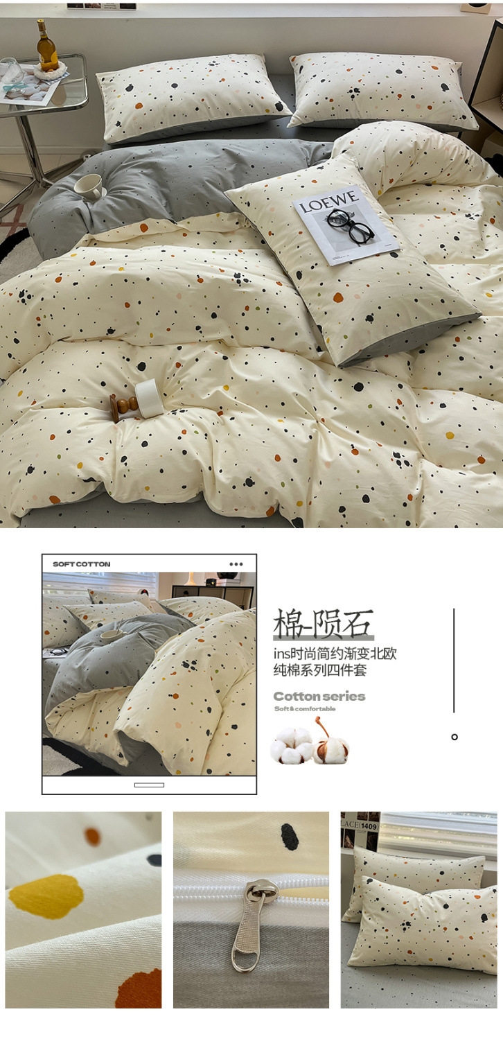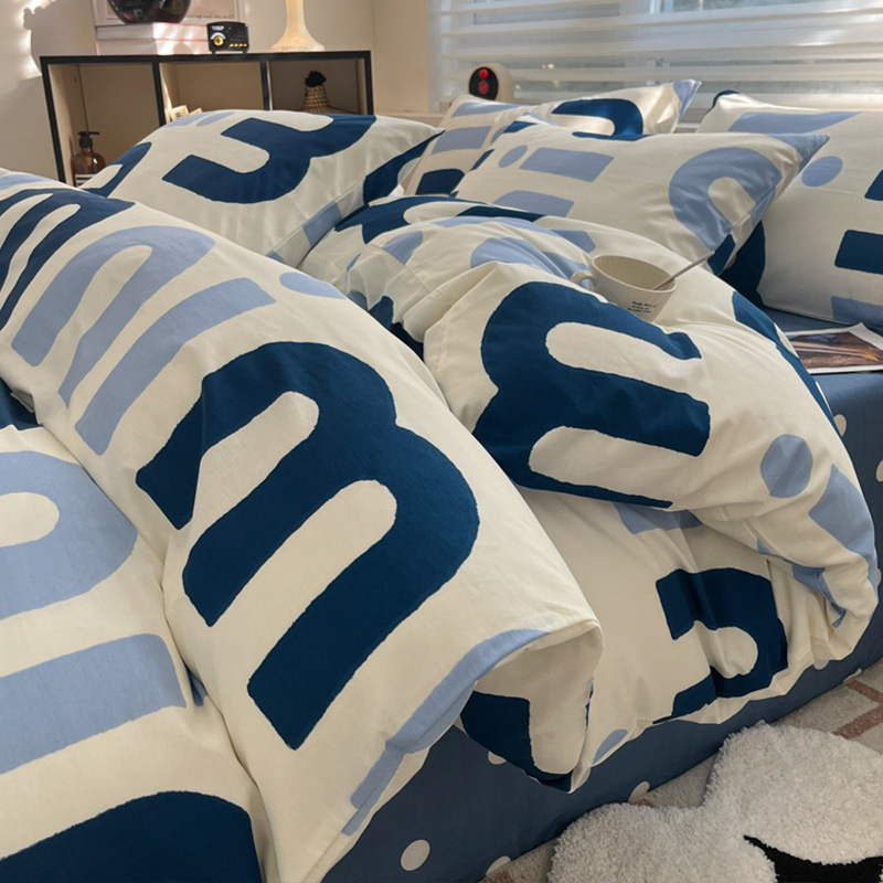 2025 북유럽 스타일 100 신장 면화 침대 시트 4 종 세트 퀼트 커버 침대 모자 면 기숙사 홈 3 종 세트스토어 가기