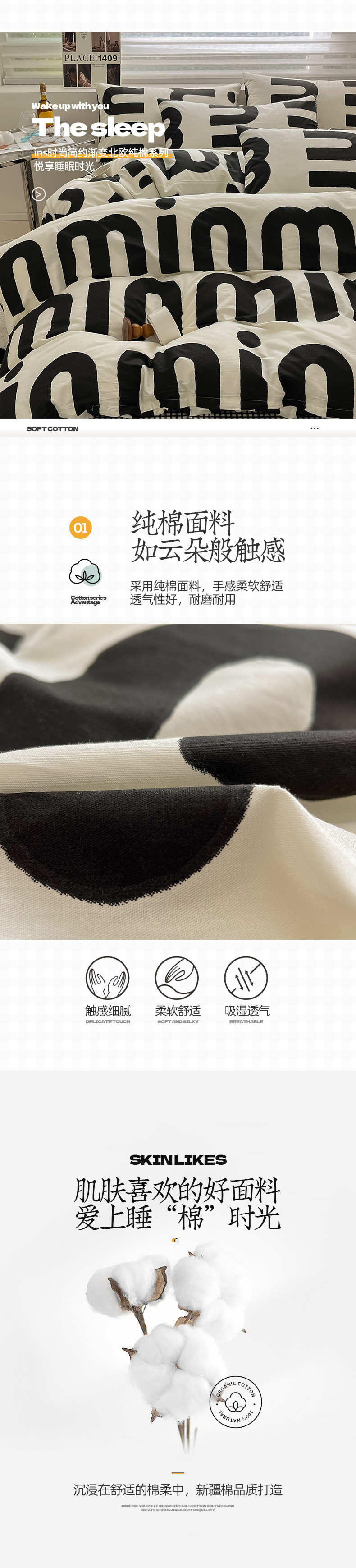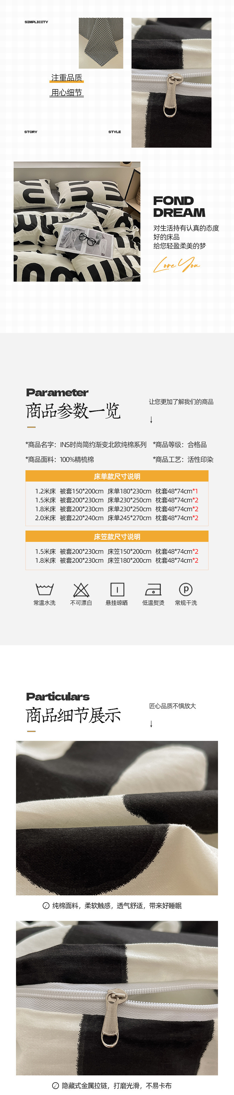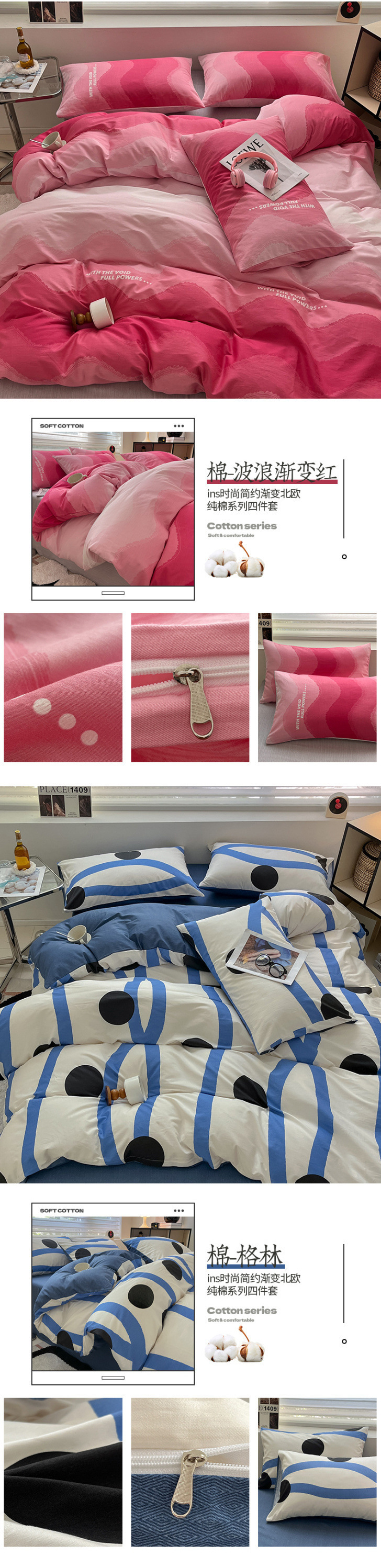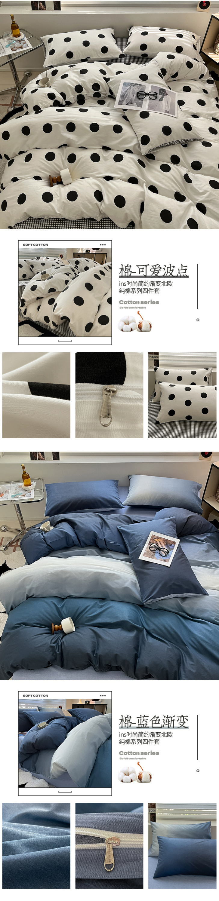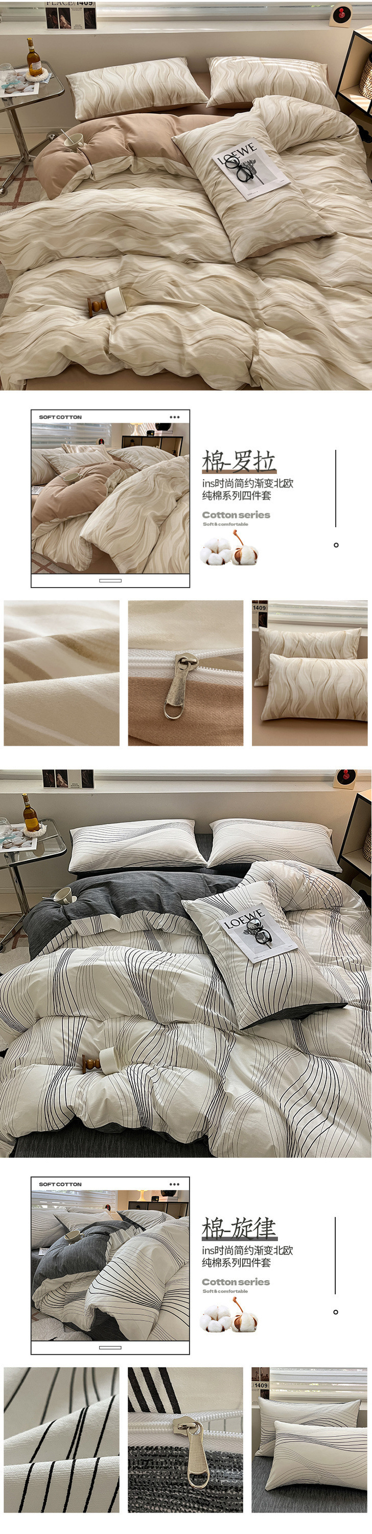 2025 북유럽 스타일 100 신장 면화 침대 시트 4 종 세트 퀼트 커버 침대 모자 면 기숙사 홈 3 종 세트스토어 가기