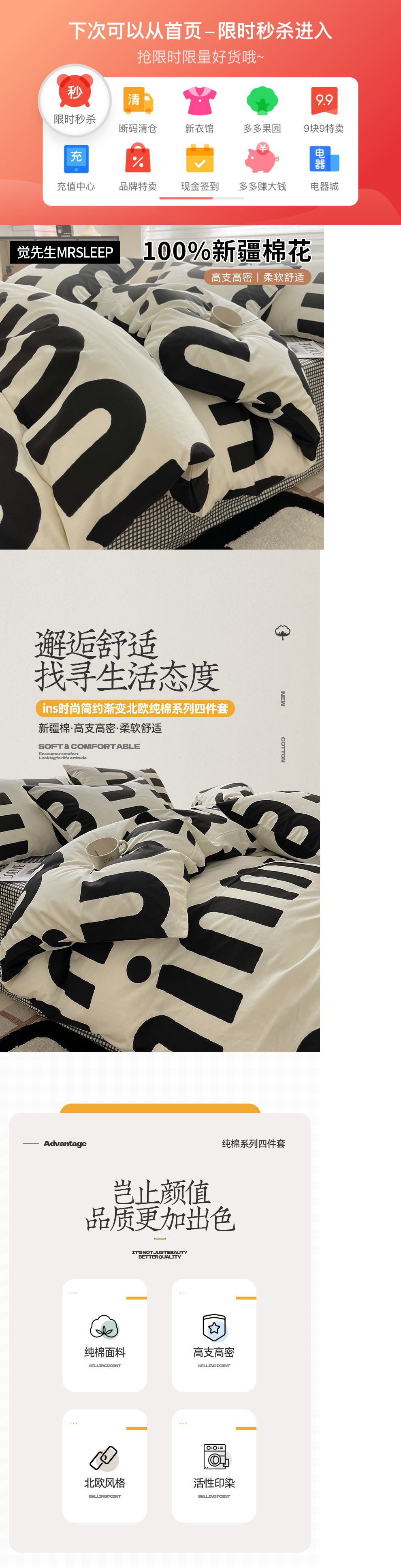 • 파란색 글자 [순면 100개 신강면, 항균 및 진드기 방지]