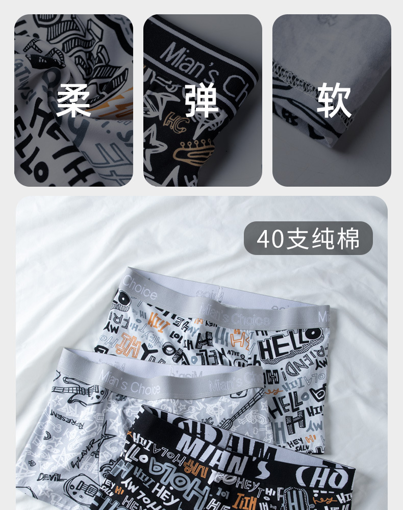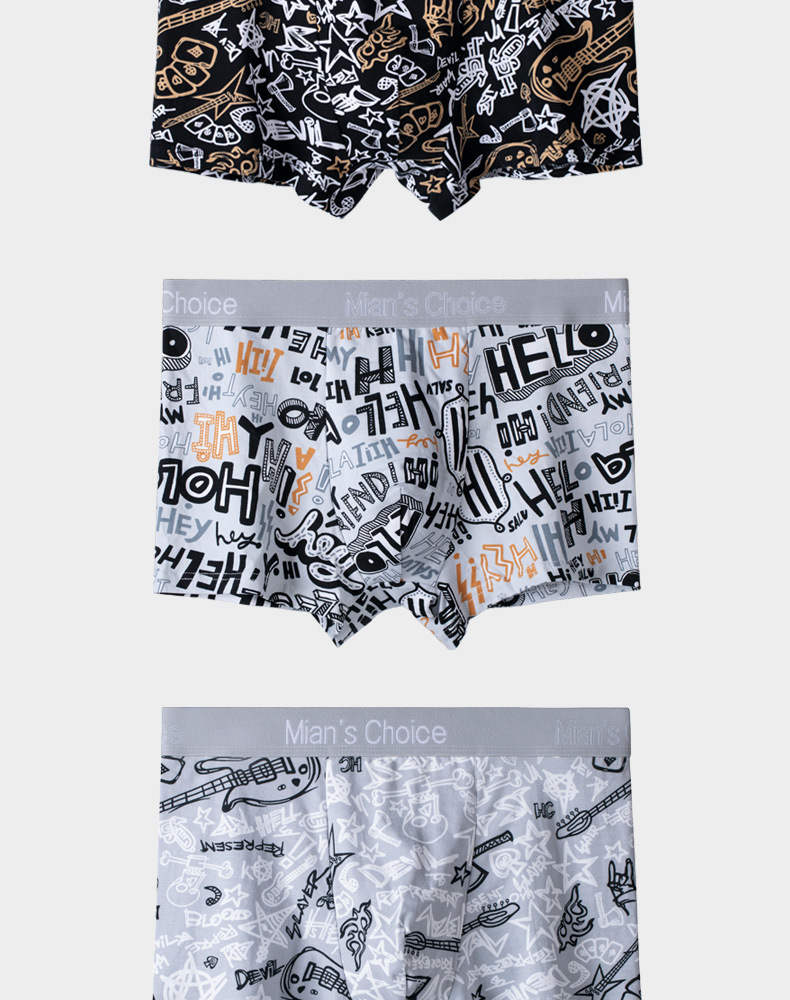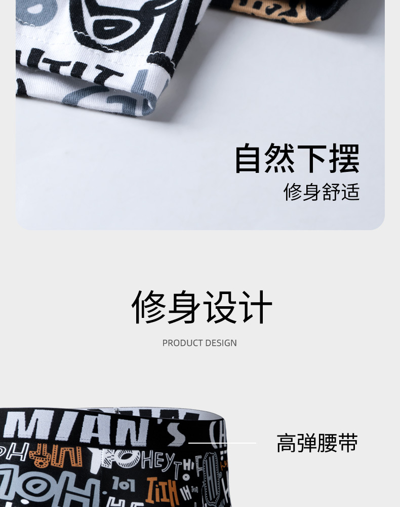 남성 속옷 소년 면 새로운 유행 낙서 박서 항균 학생 성인 부드럽고 편안한 4 코너 바지스토어 가기