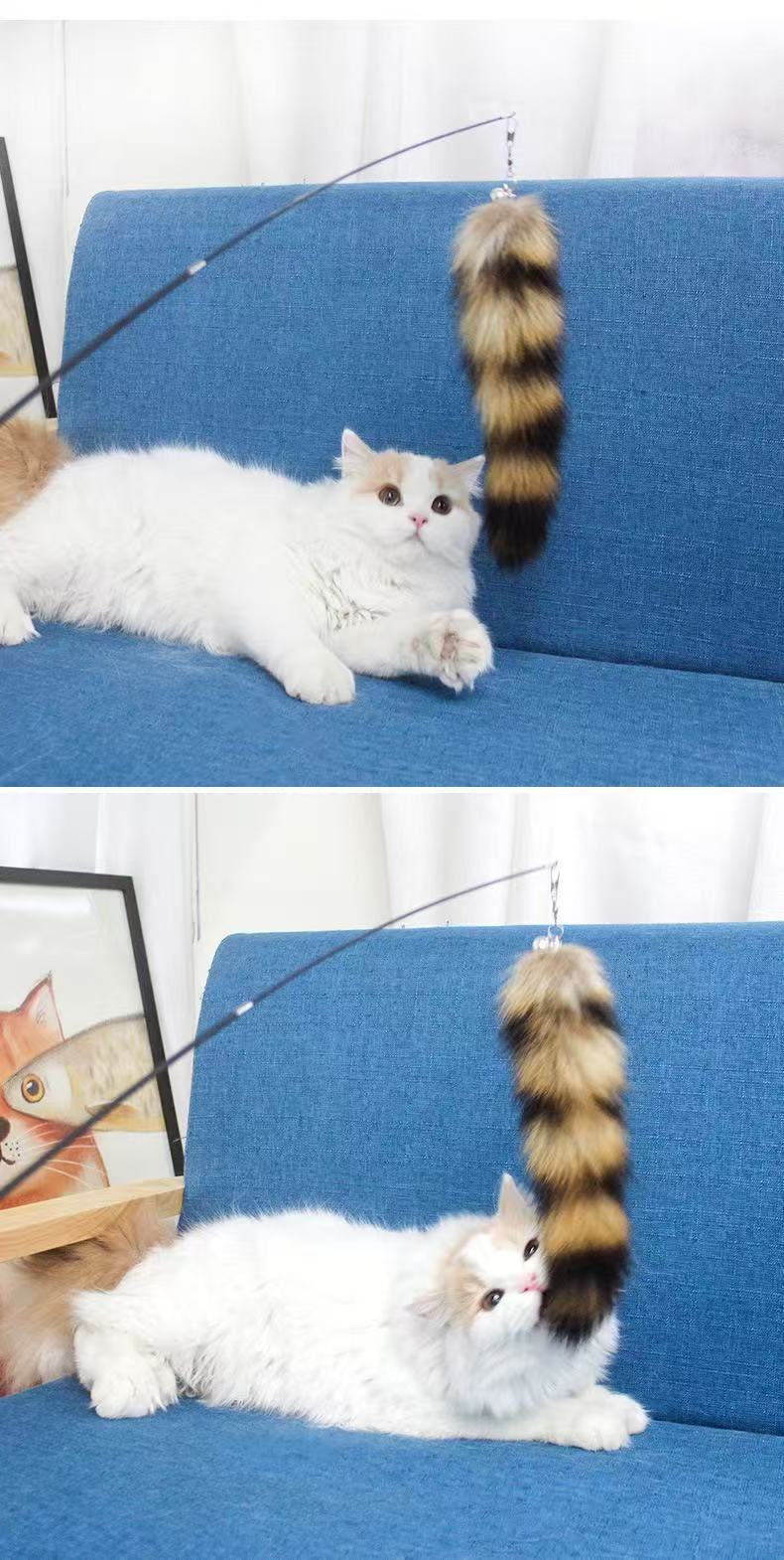 여우 모피 고양이 티저 슈퍼 긴 고양이 티저 깃털 교체 머리 3 개의 망원경 고양이 낚시 고양이 장난감 재고
