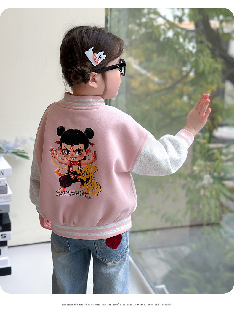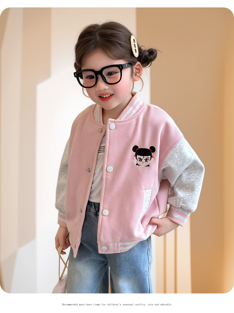 소녀의 봄과 가을 야구 세트 코트 2025 봄 옷 어린이 소녀의 만화 카디건 재킷 탑스토어 가기