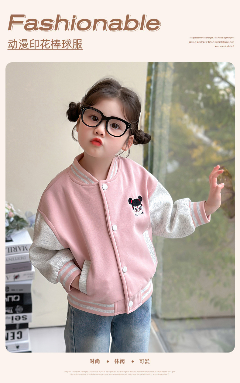 소녀의 봄과 가을 야구 세트 코트 2025 봄 옷 어린이 소녀의 만화 카디건 재킷 탑