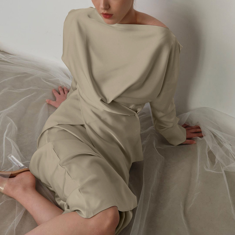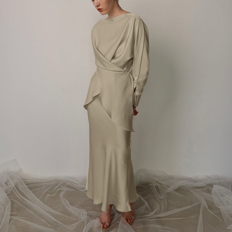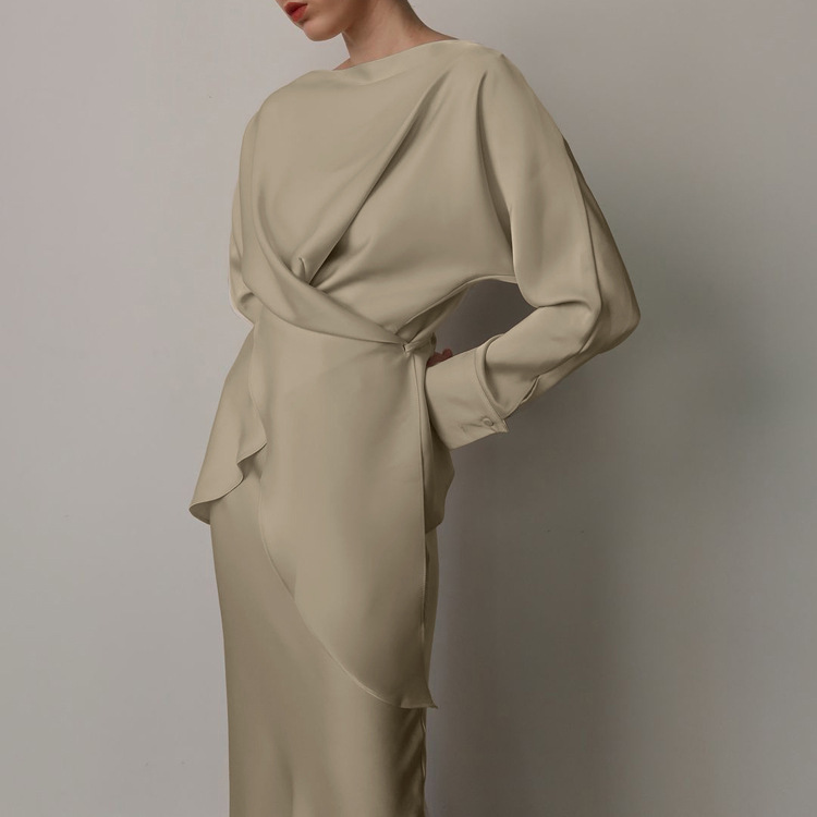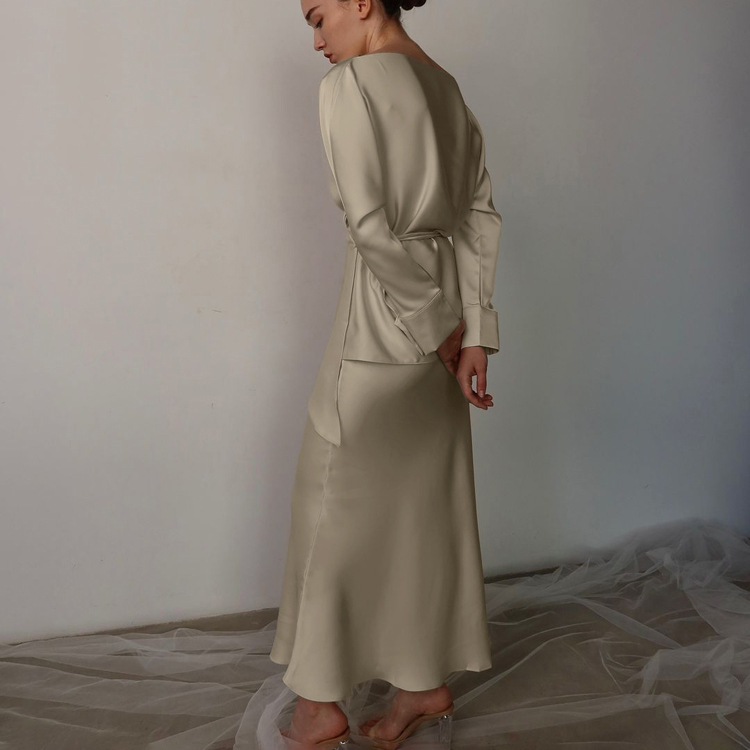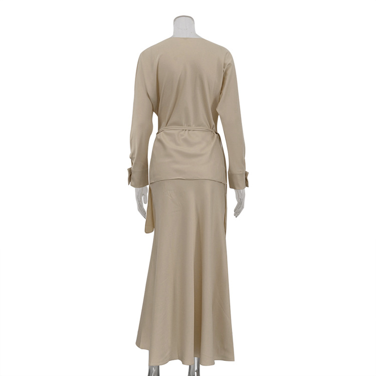 새로운 프랑스 스타일 스커트 세트 여성 크로스 디자인 불규칙한 긴 소매 레이스 업 탑 하프 원피스 투 피스 세트스토어 가기