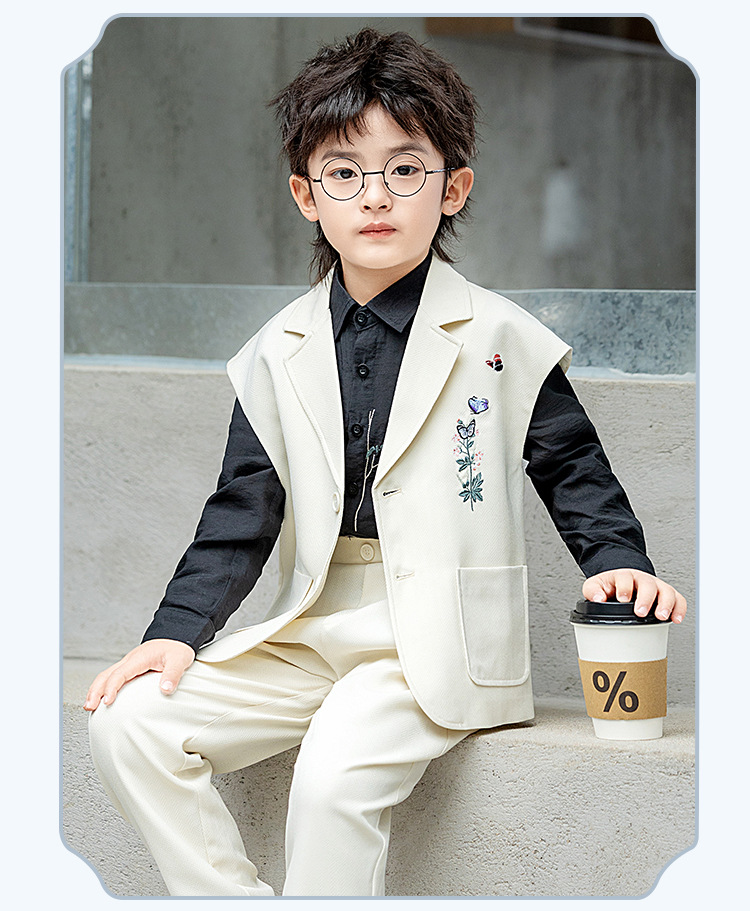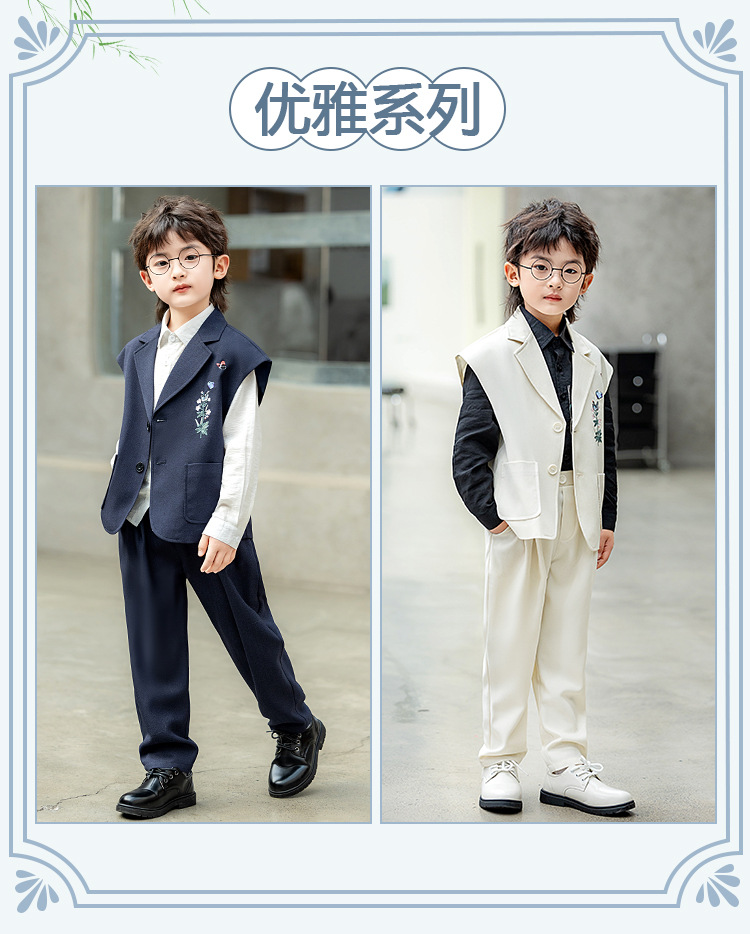 • 네이비 3종세트 (화이트 셔츠+조끼+바지)