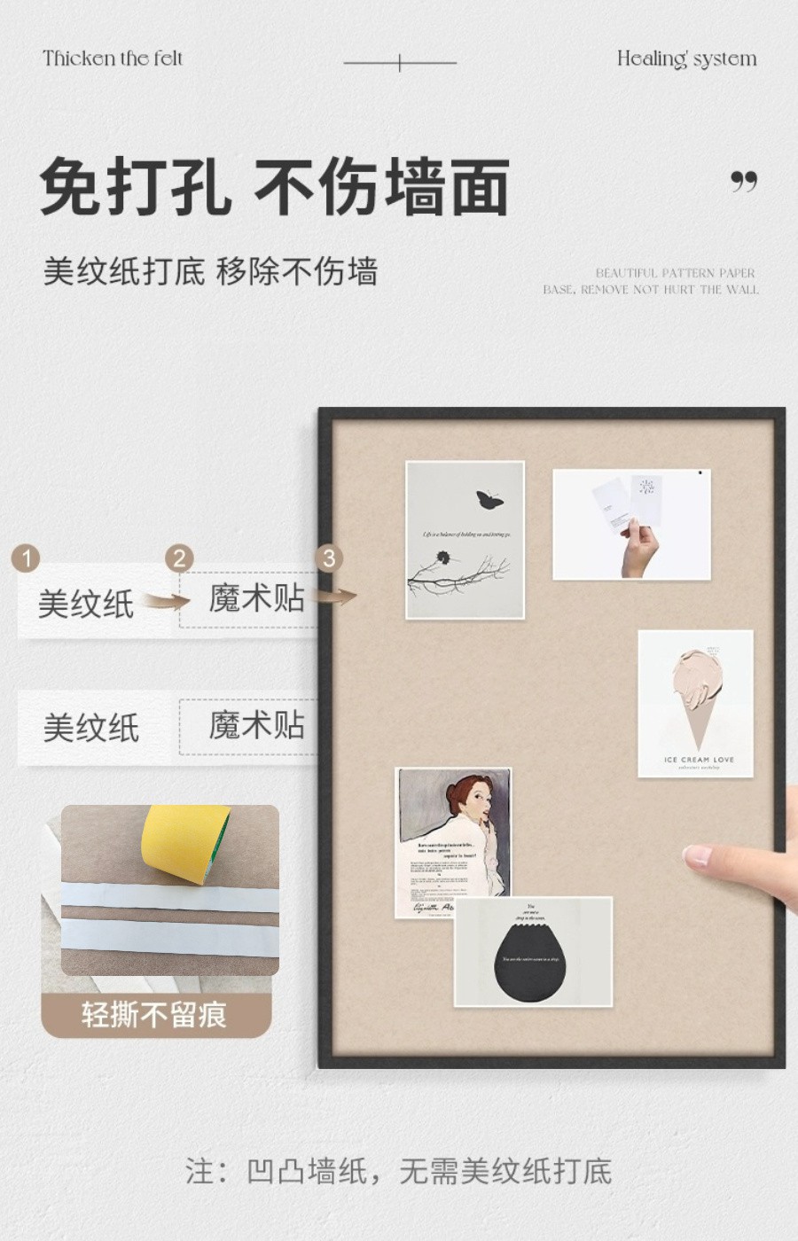 펀치없는 펠트 벽 스티커 사진 배경 벽 자체 접착 디스플레이 보드 코르크 보드 바람 거실 메시지 보드 장식스토어 가기