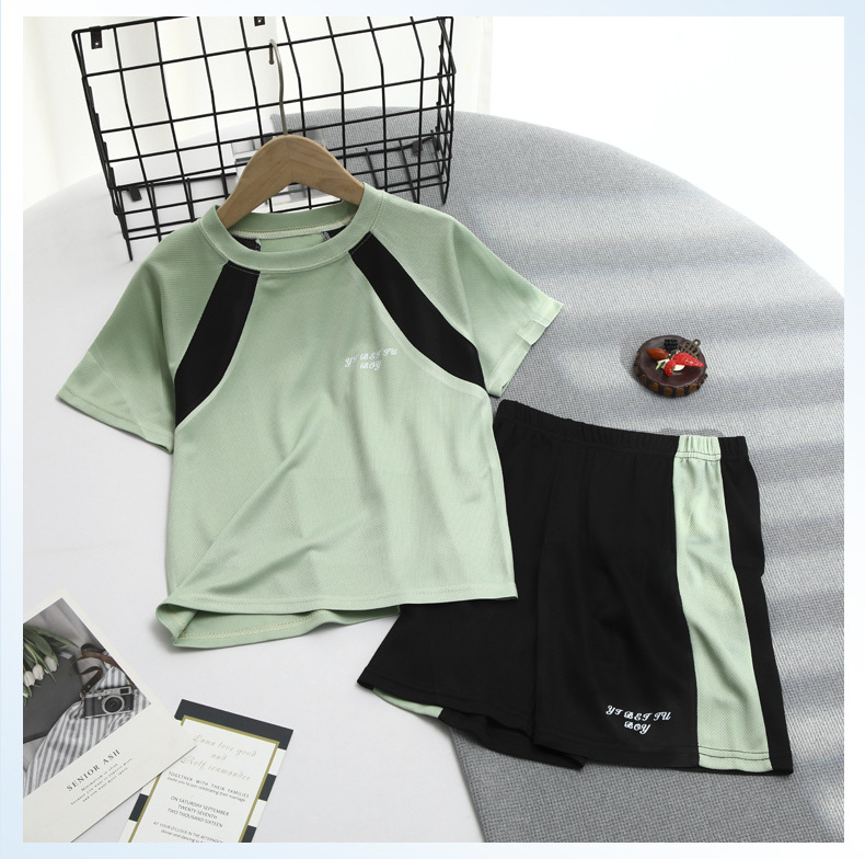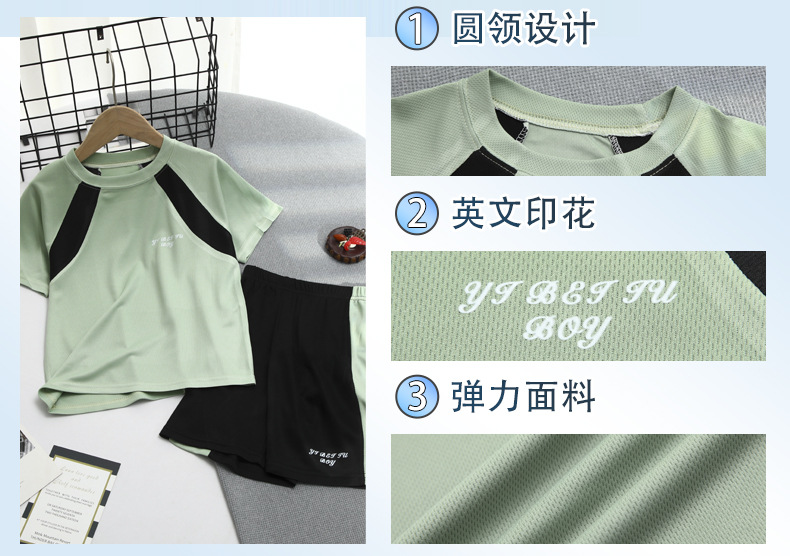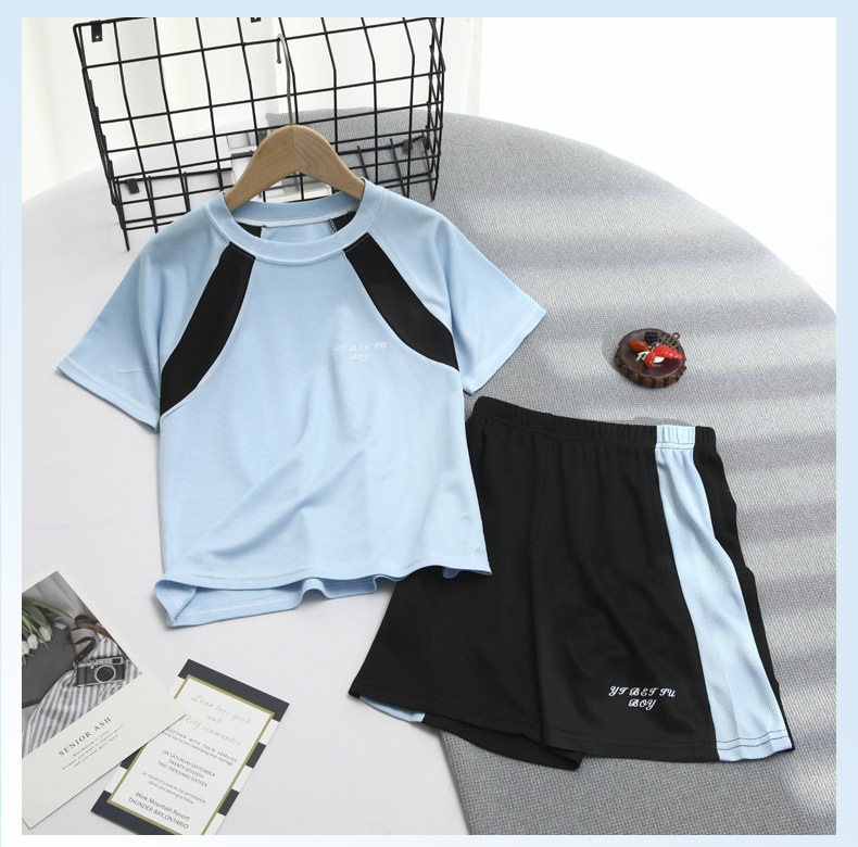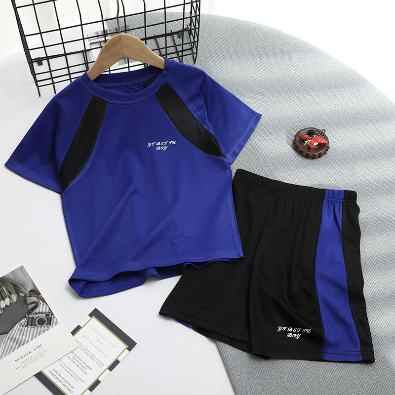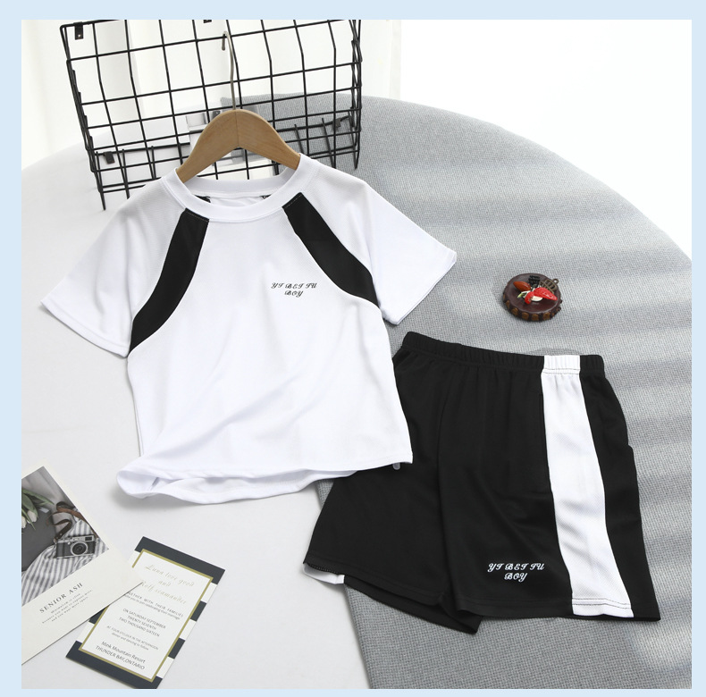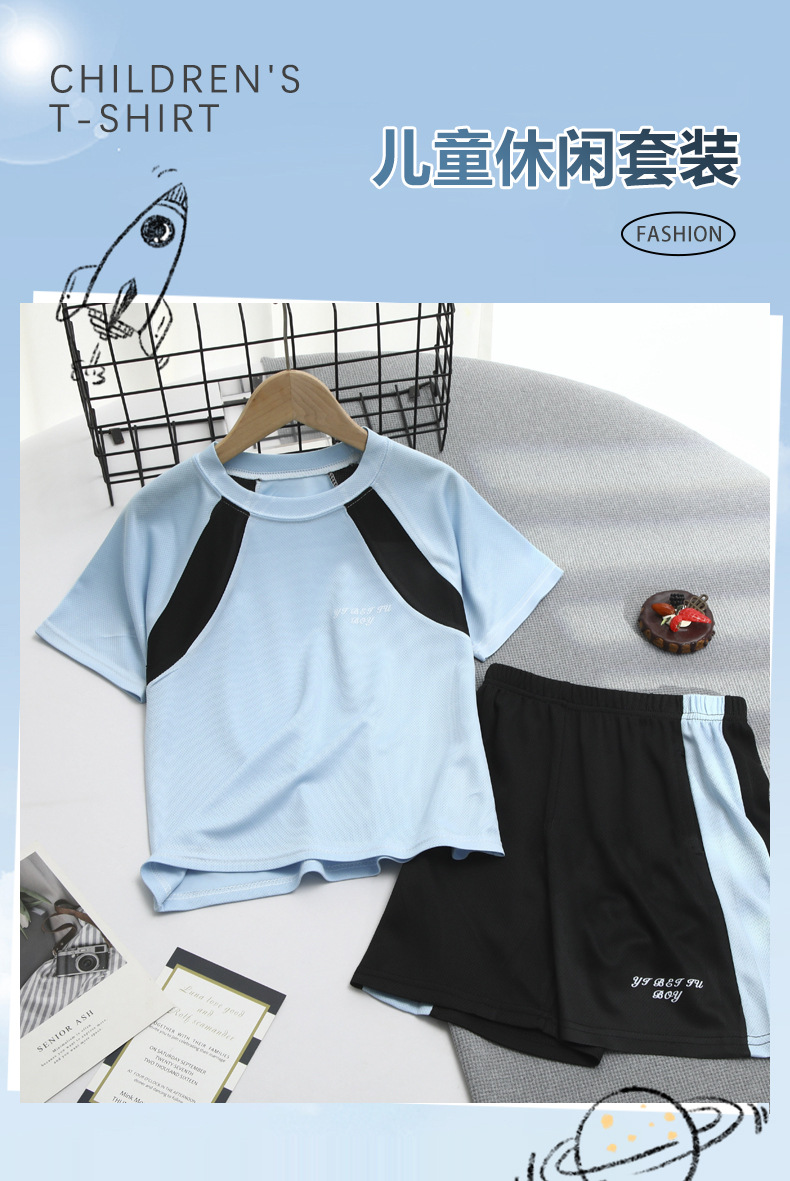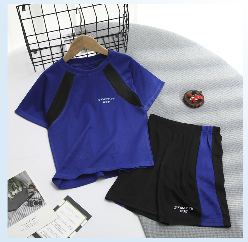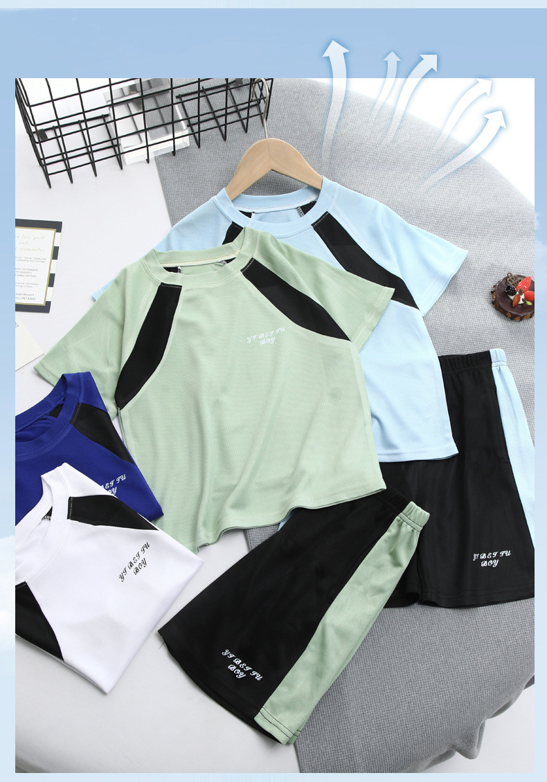 2025 여름 새로운 어린이 메쉬 통기성 스포츠 세트 어린이 어깨 반팔 반바지 캐주얼 투피스 세트스토어 가기