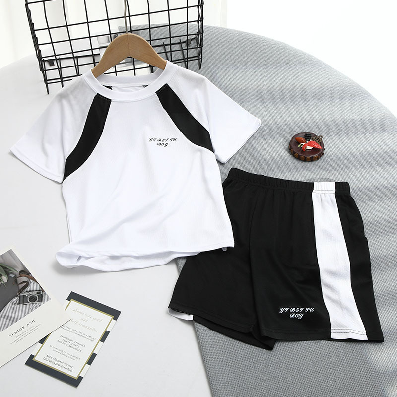 2025 여름 새로운 어린이 메쉬 통기성 스포츠 세트 어린이 어깨 반팔 반바지 캐주얼 투피스 세트