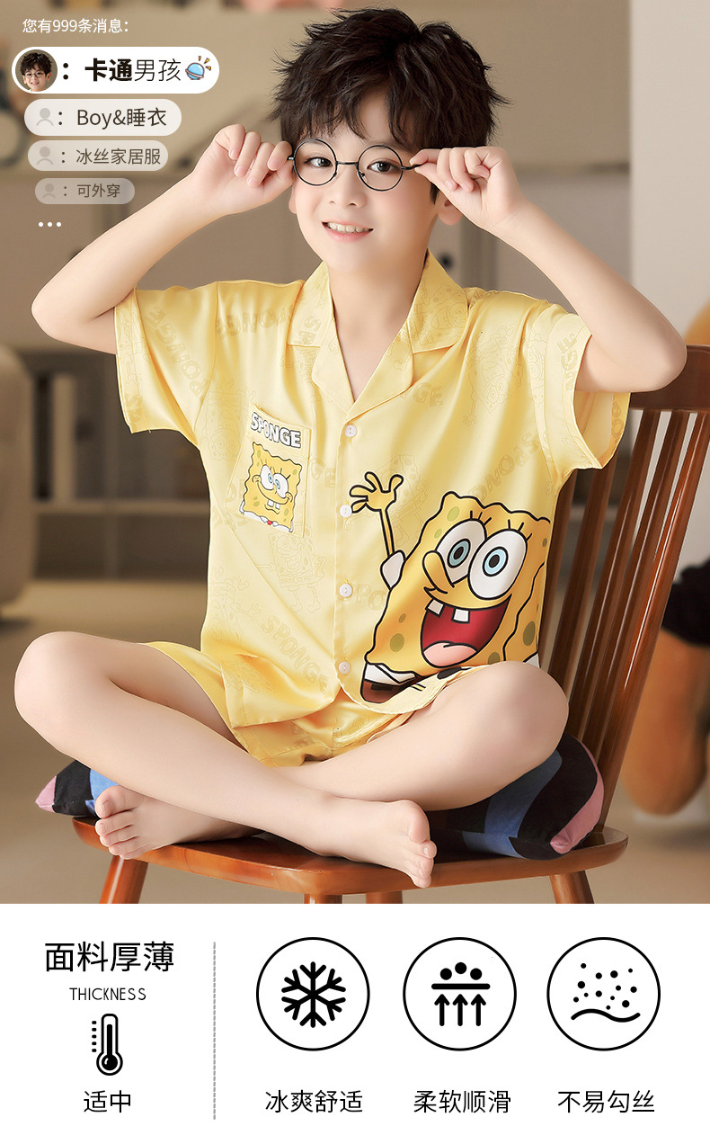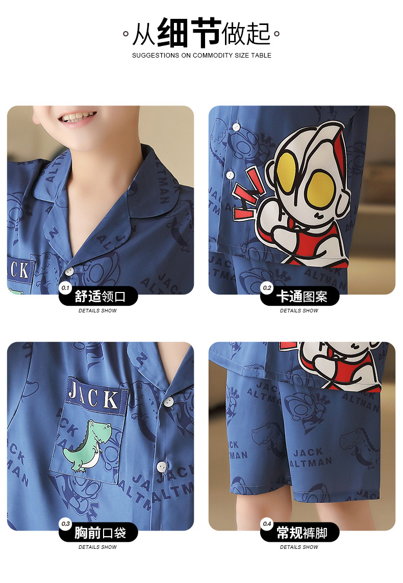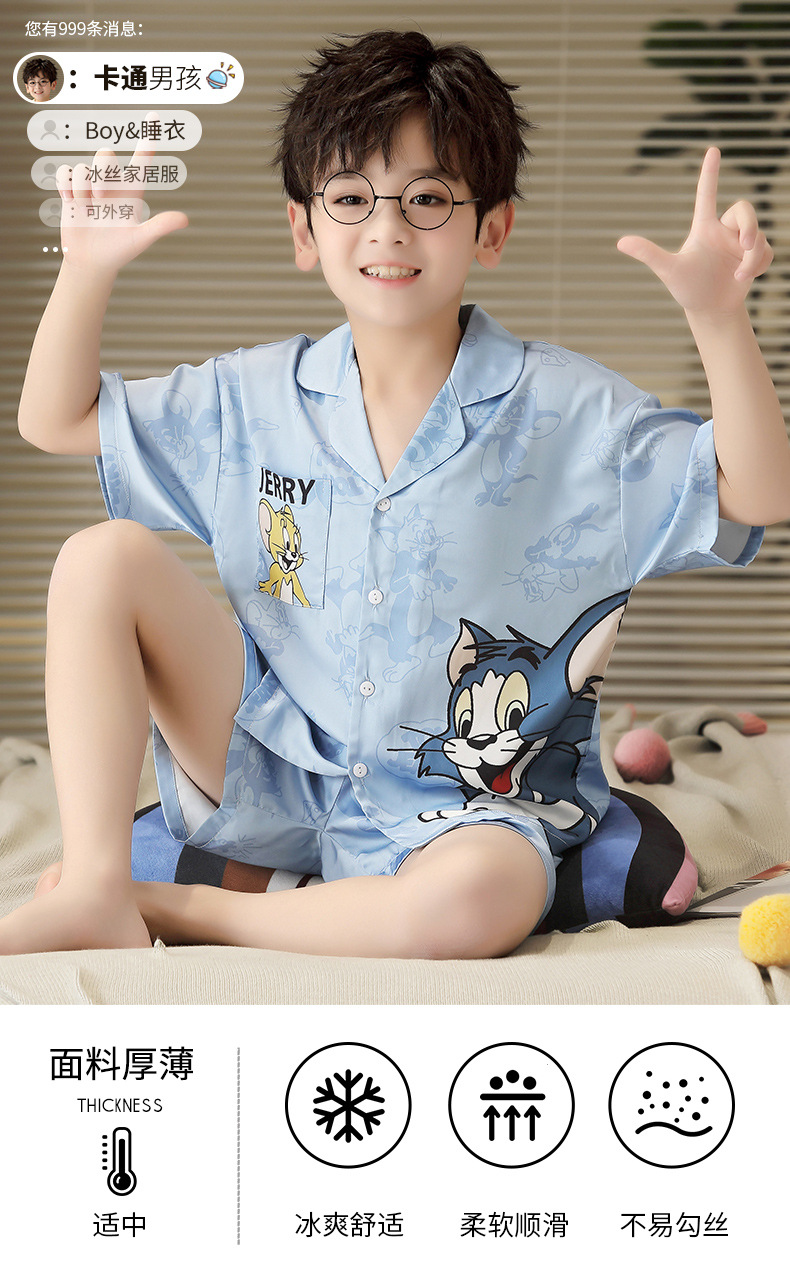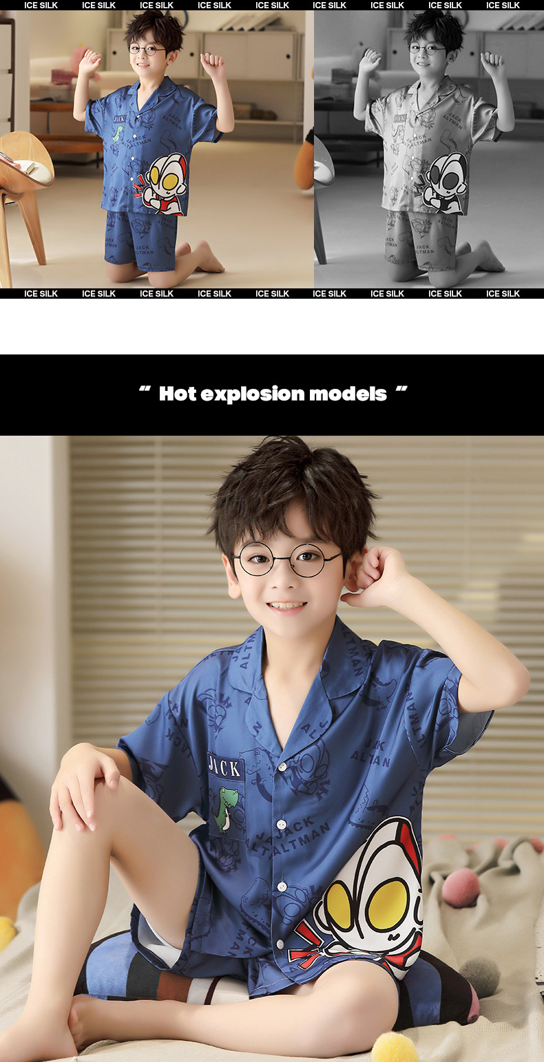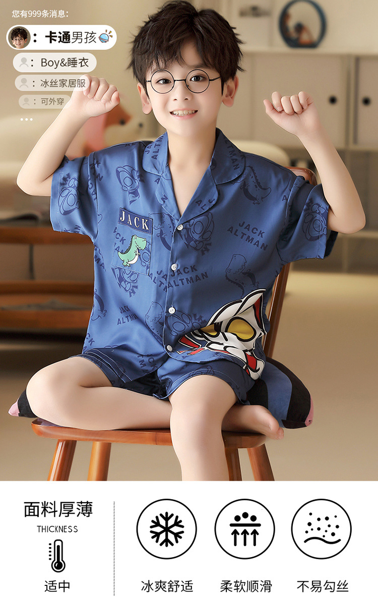 아이스 실크 소년의 잠옷 여름 소년과 아기를위한 얇은 반팔 카디건 여름 어린이 및 청소년 실크 홈 옷스토어 가기