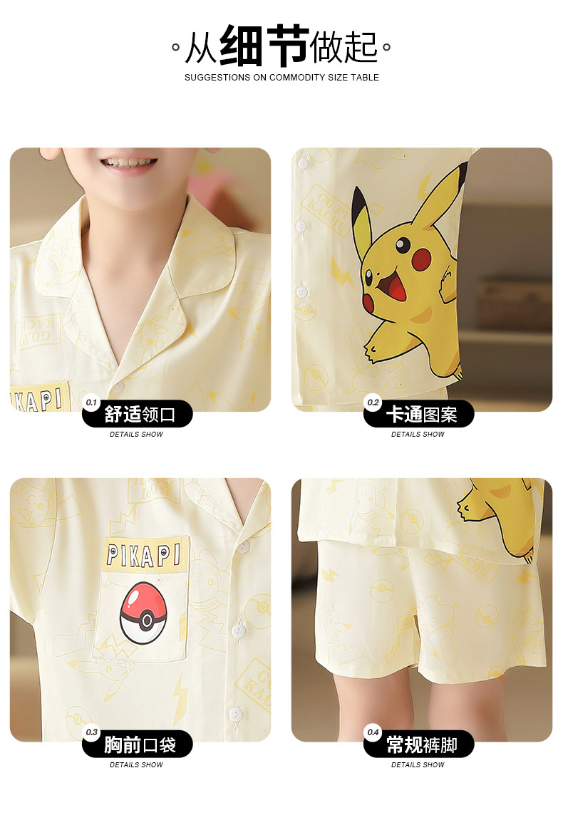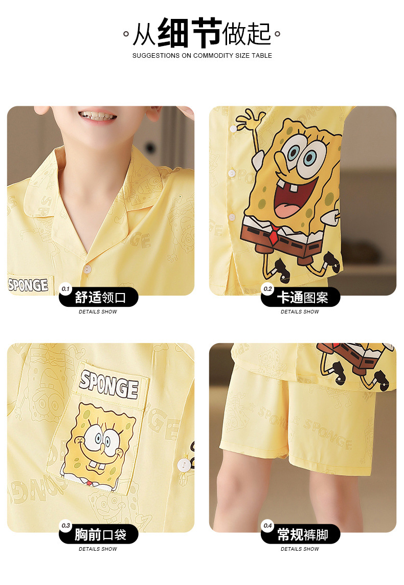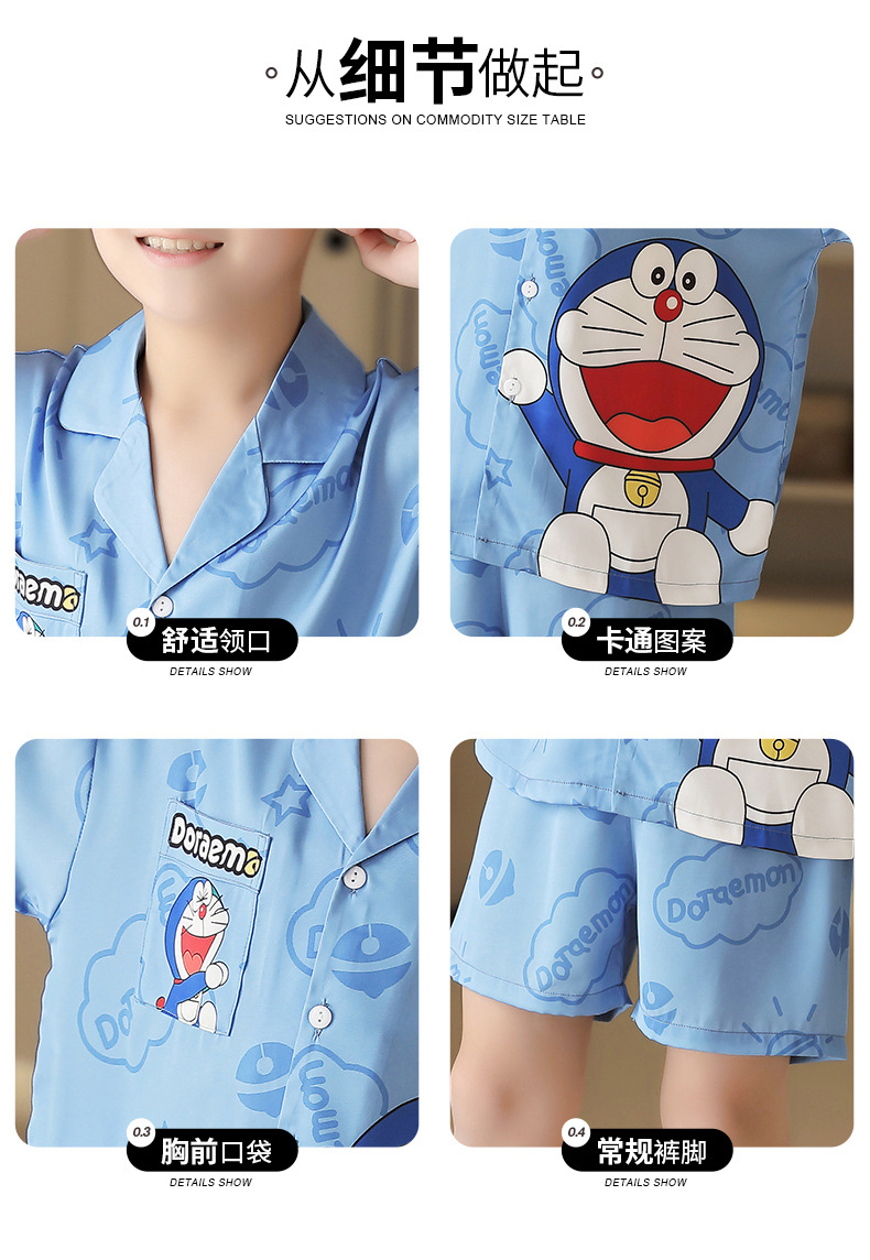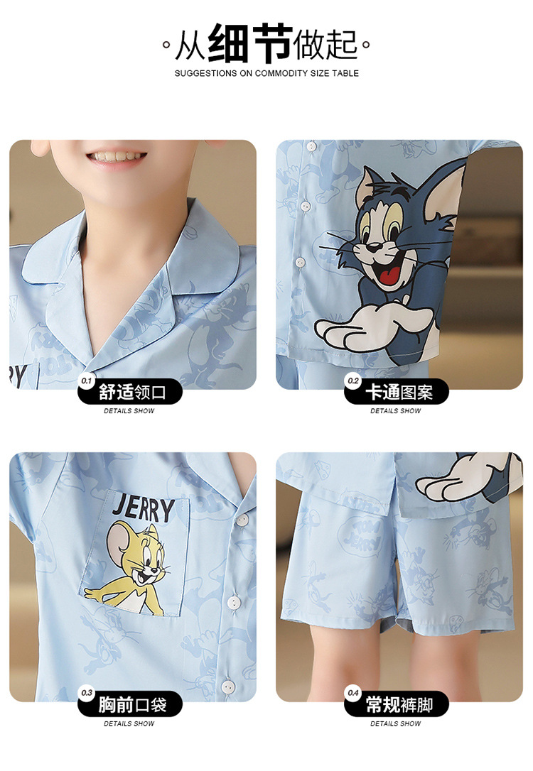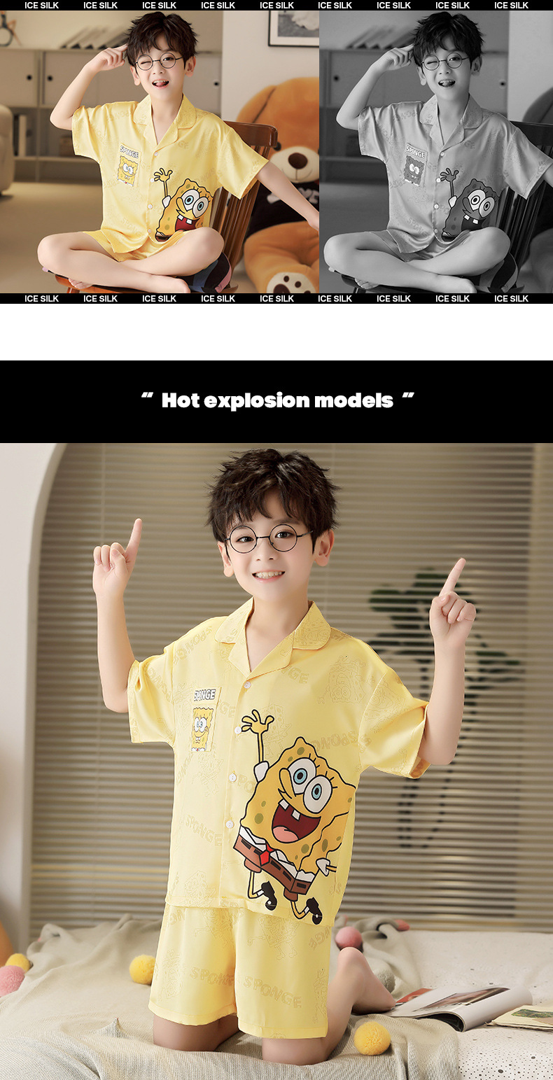 아이스 실크 소년의 잠옷 여름 소년과 아기를위한 얇은 반팔 카디건 여름 어린이 및 청소년 실크 홈 옷스토어 가기