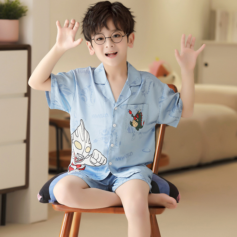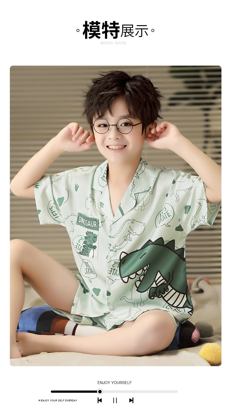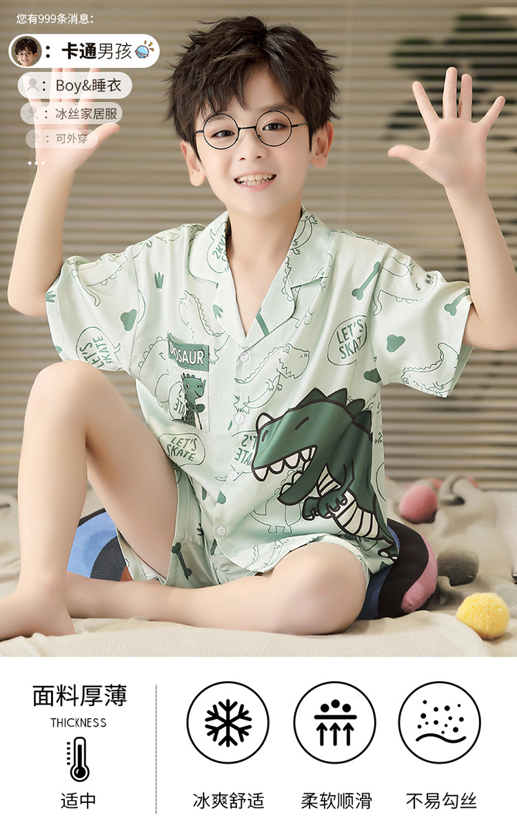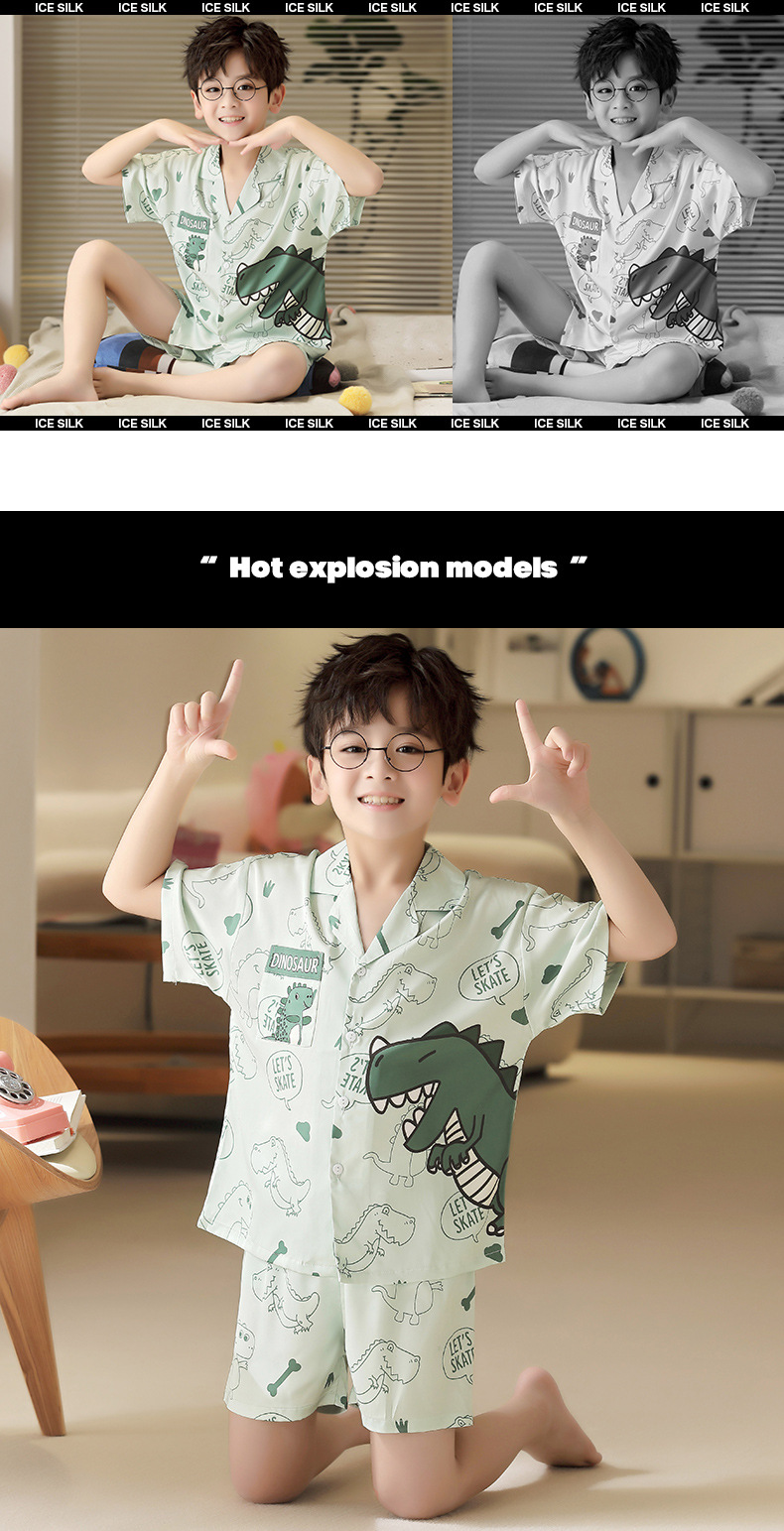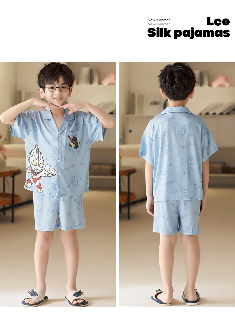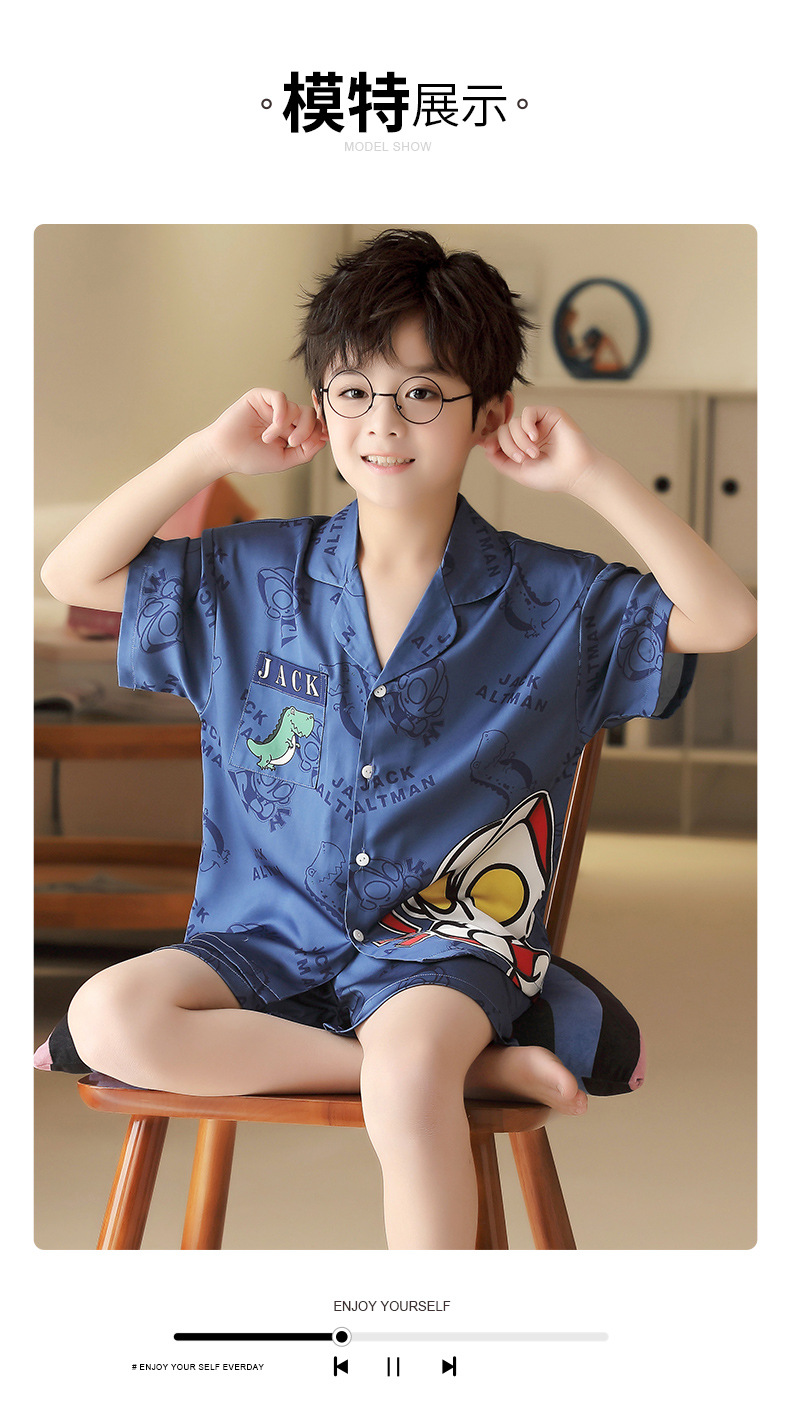 아이스 실크 소년의 잠옷 여름 소년과 아기를위한 얇은 반팔 카디건 여름 어린이 및 청소년 실크 홈 옷