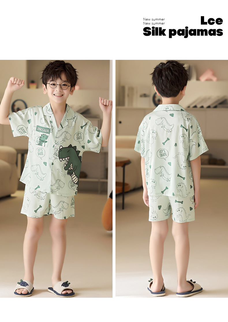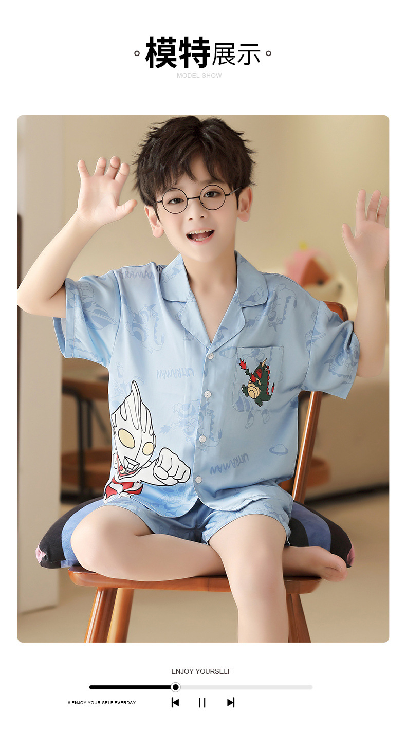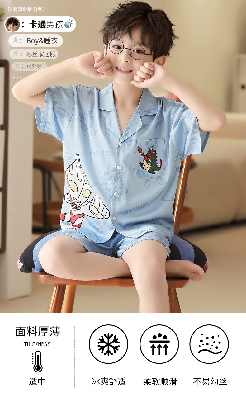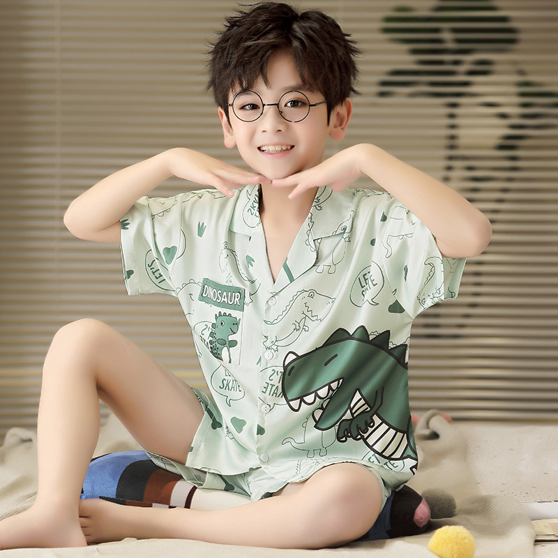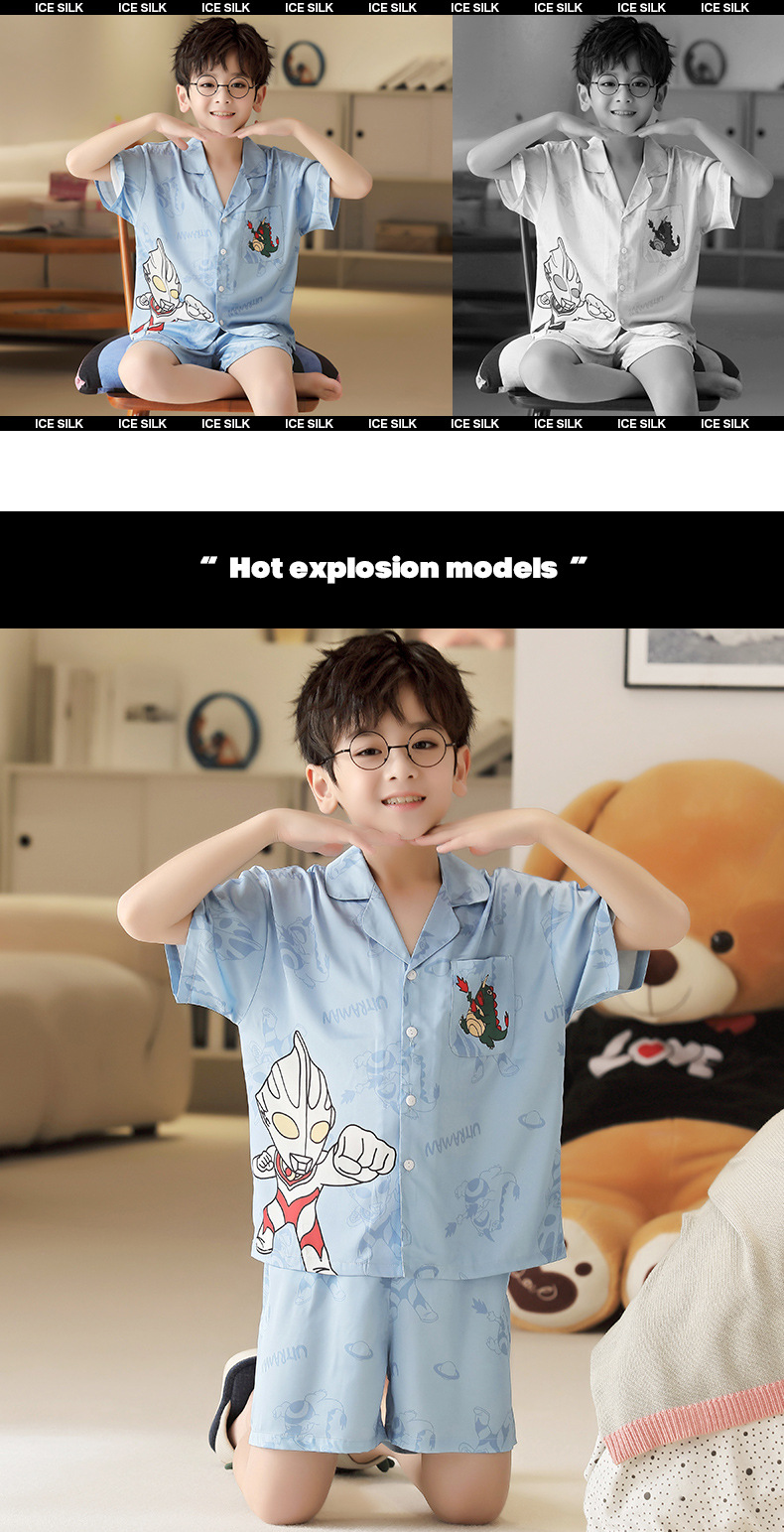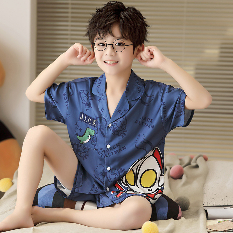아이스 실크 소년의 잠옷 여름 소년과 아기를위한 얇은 반팔 카디건 여름 어린이 및 청소년 실크 홈 옷
