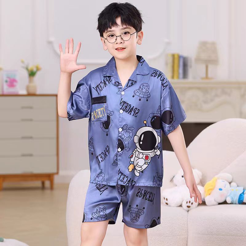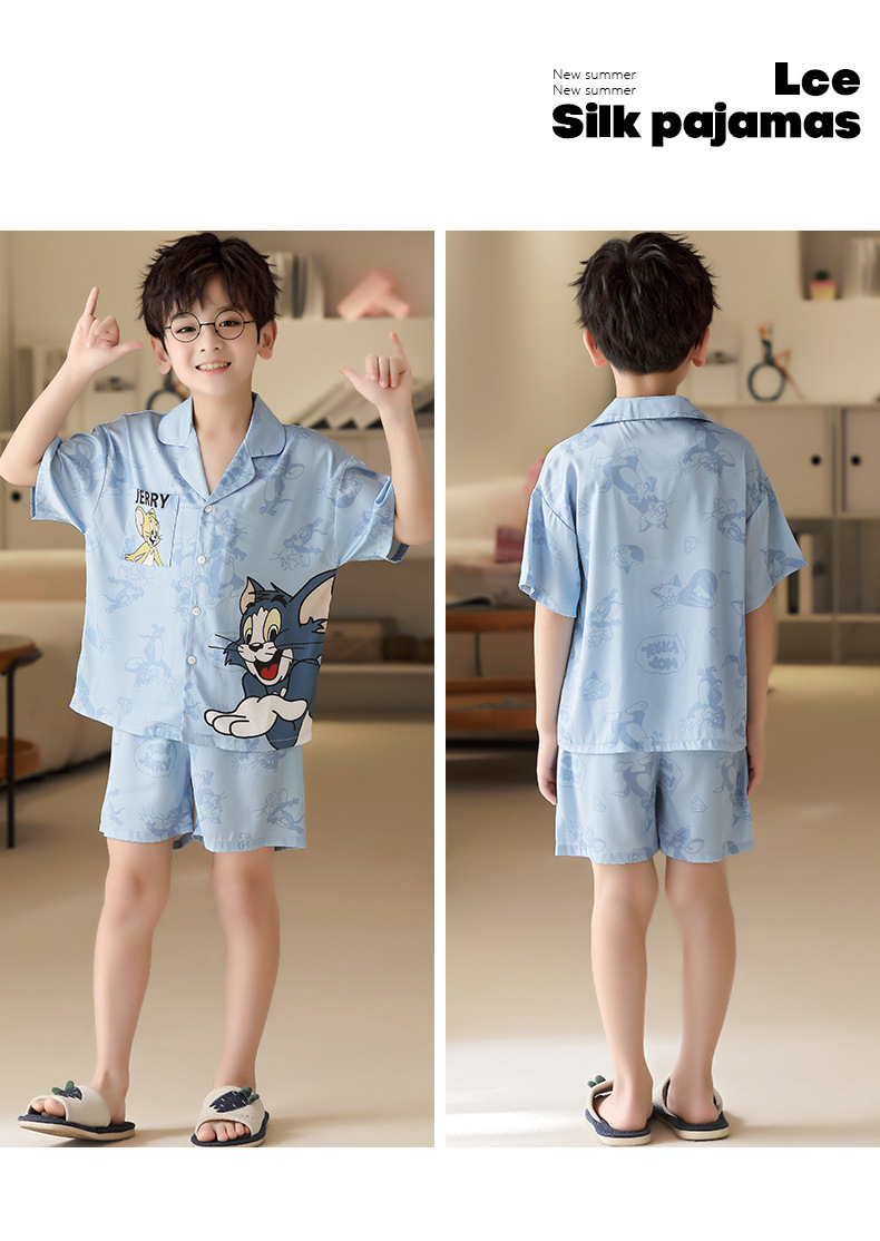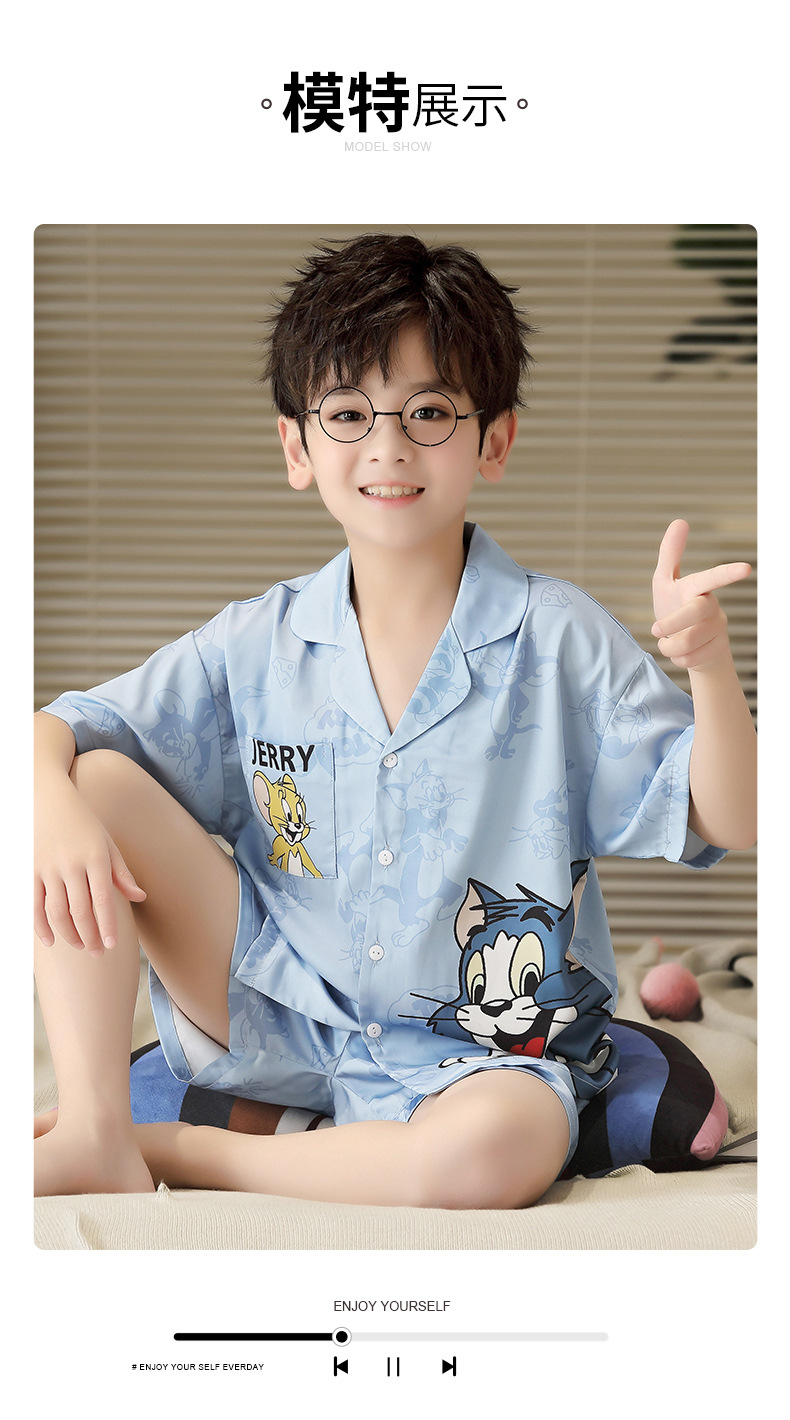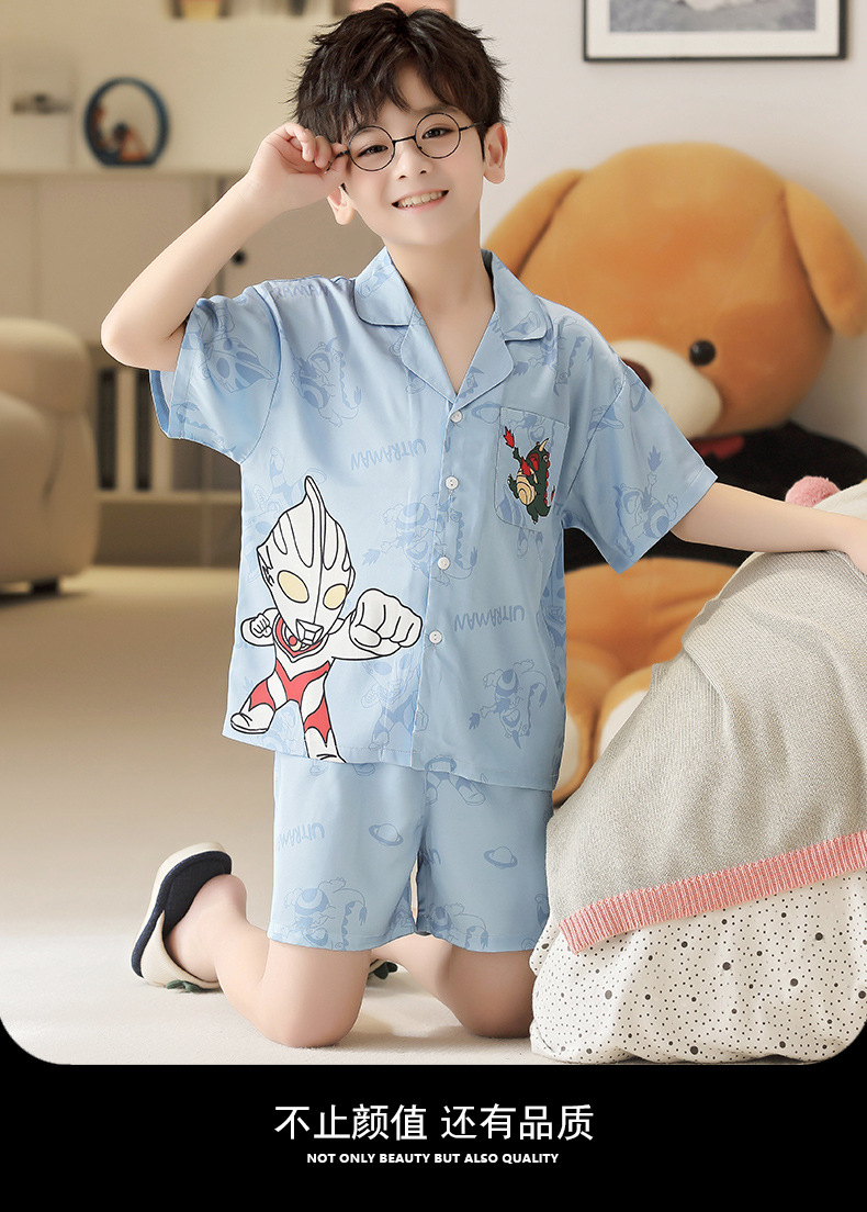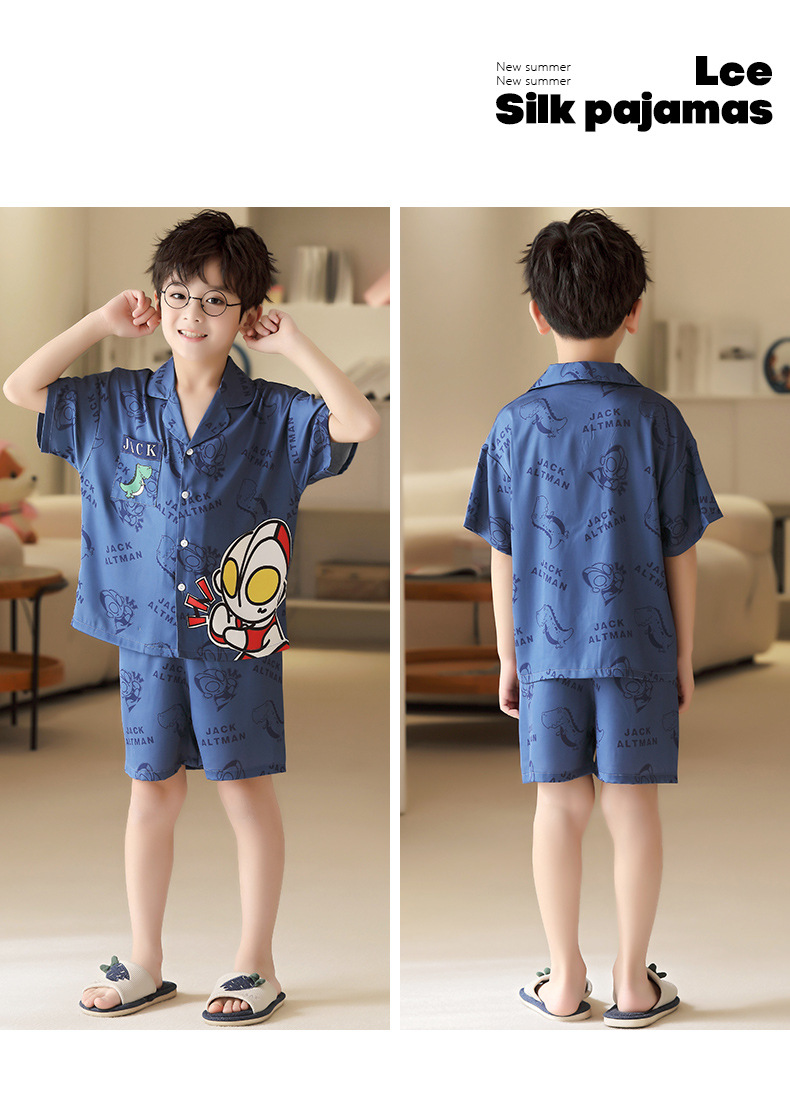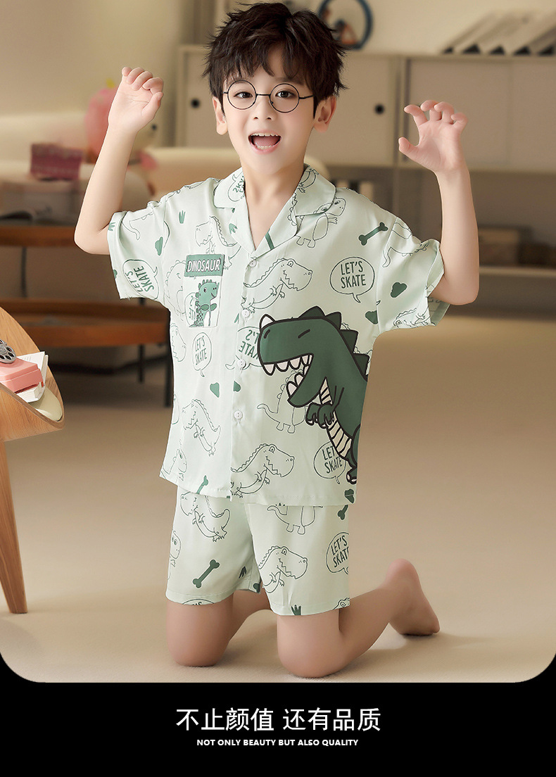 아이스 실크 소년의 잠옷 여름 소년과 아기를위한 얇은 반팔 카디건 여름 어린이 및 청소년 실크 홈 옷