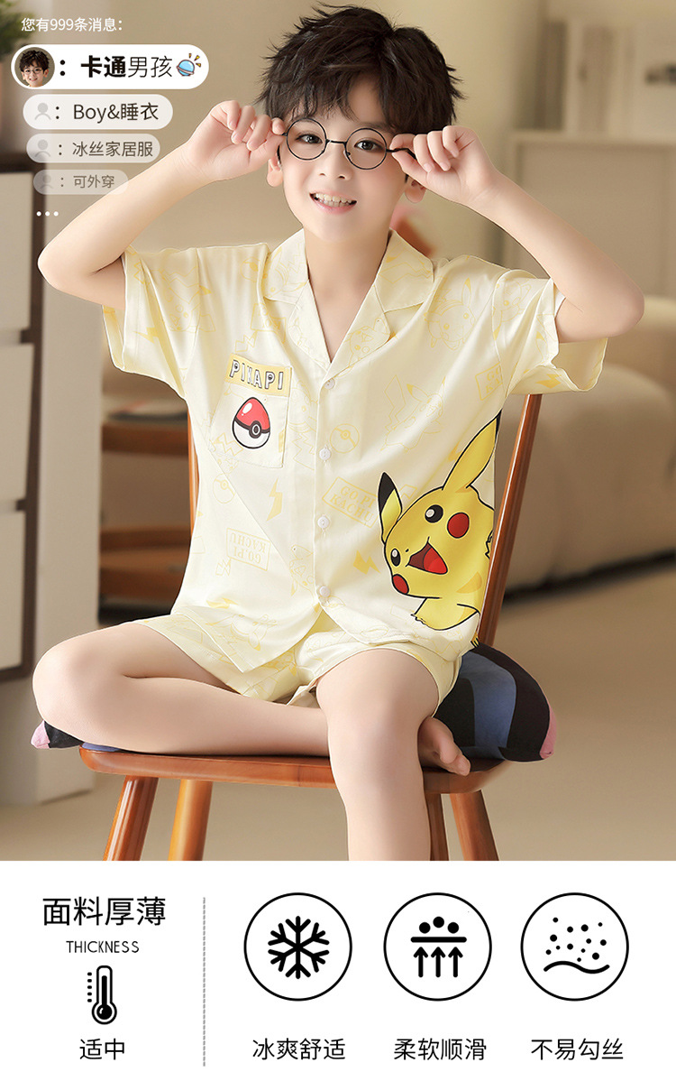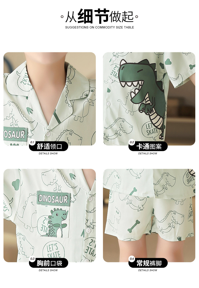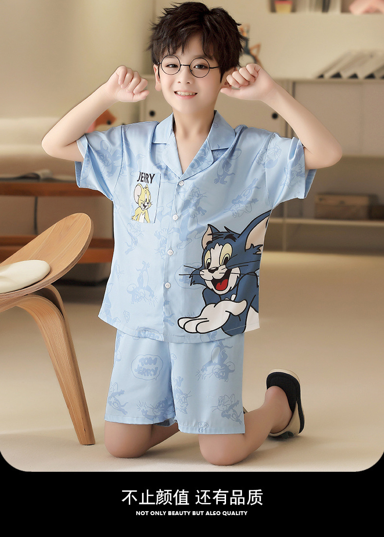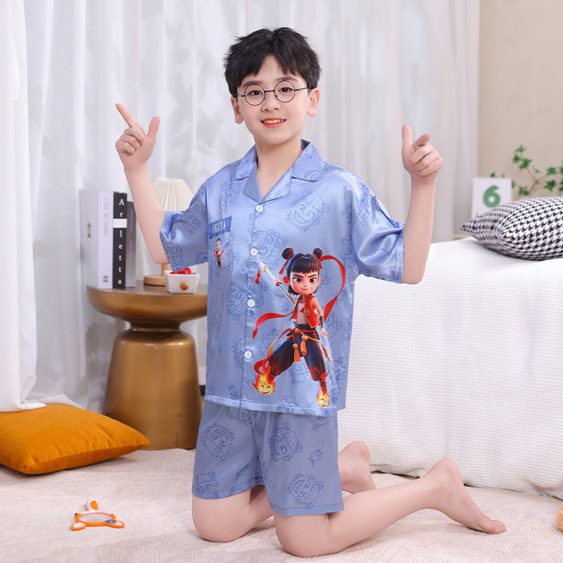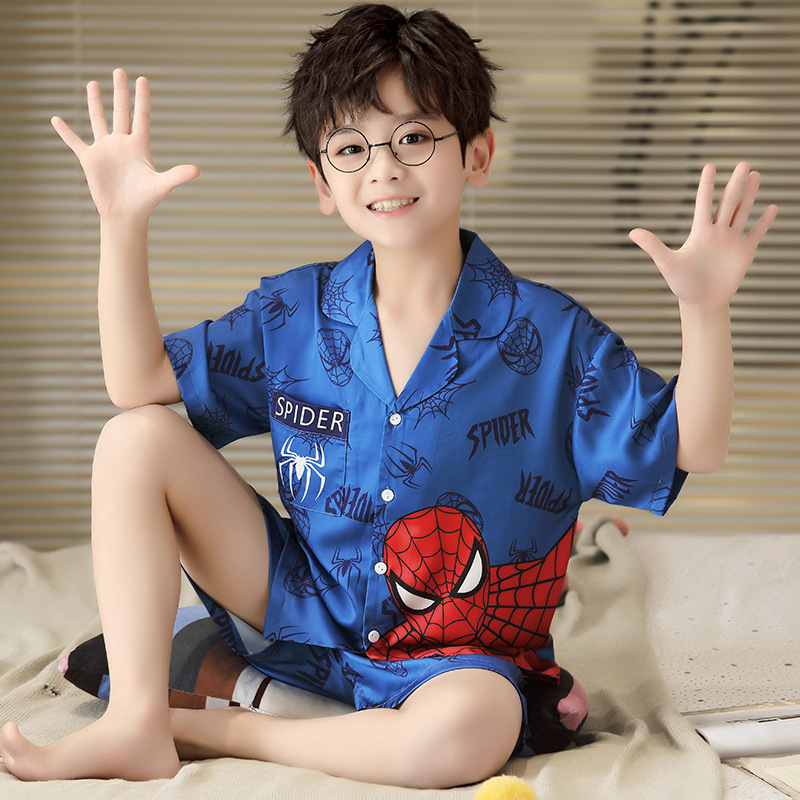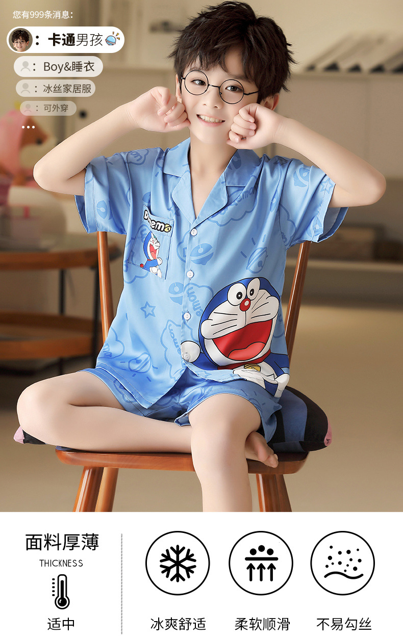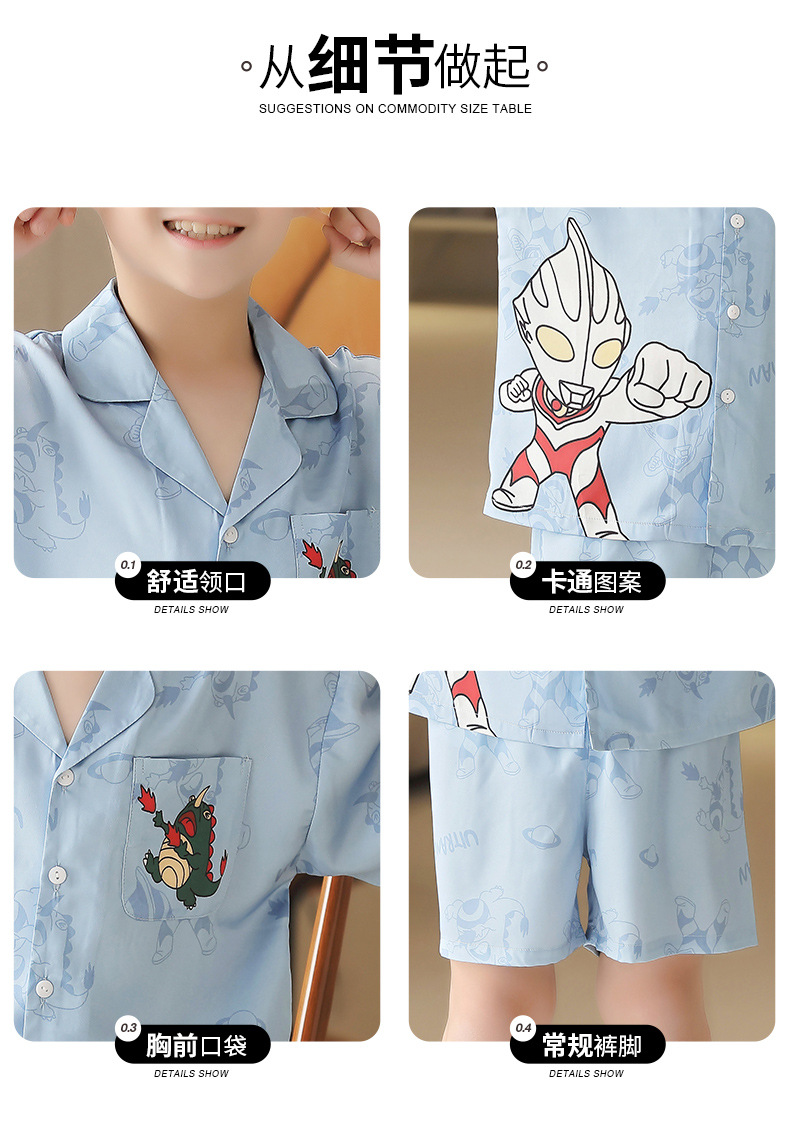 아이스 실크 소년의 잠옷 여름 소년과 아기를위한 얇은 반팔 카디건 여름 어린이 및 청소년 실크 홈 옷