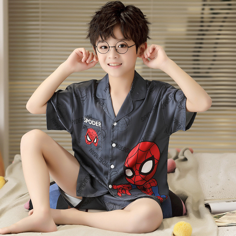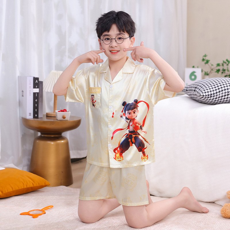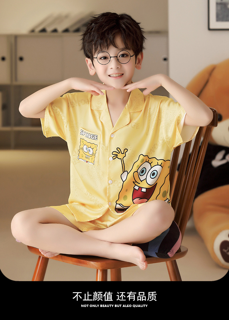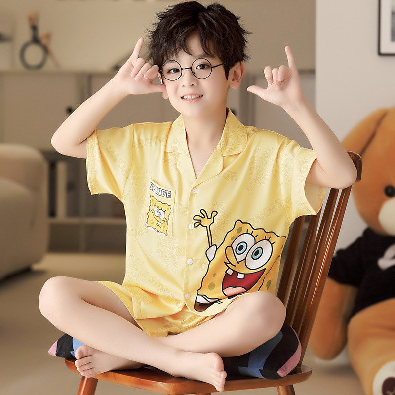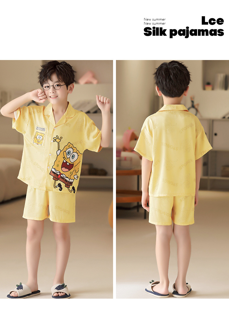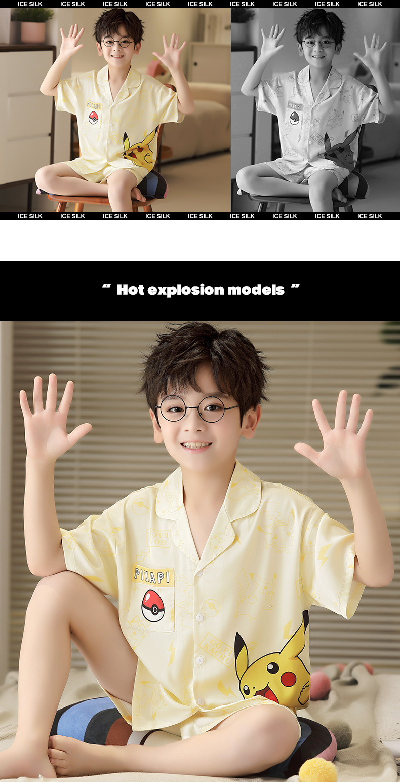 아이스 실크 소년의 잠옷 여름 소년과 아기를위한 얇은 반팔 카디건 여름 어린이 및 청소년 실크 홈 옷