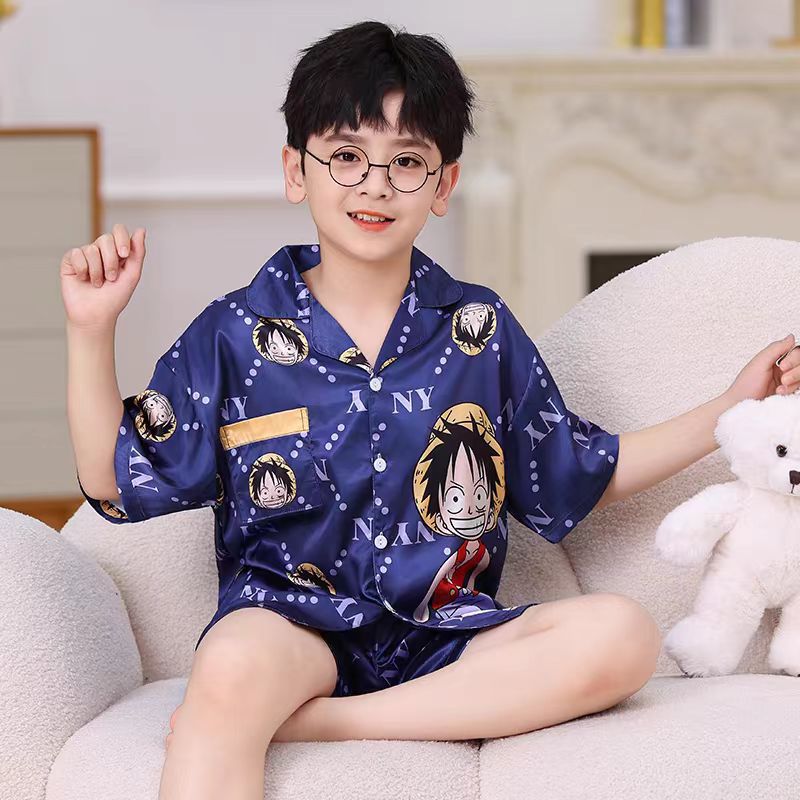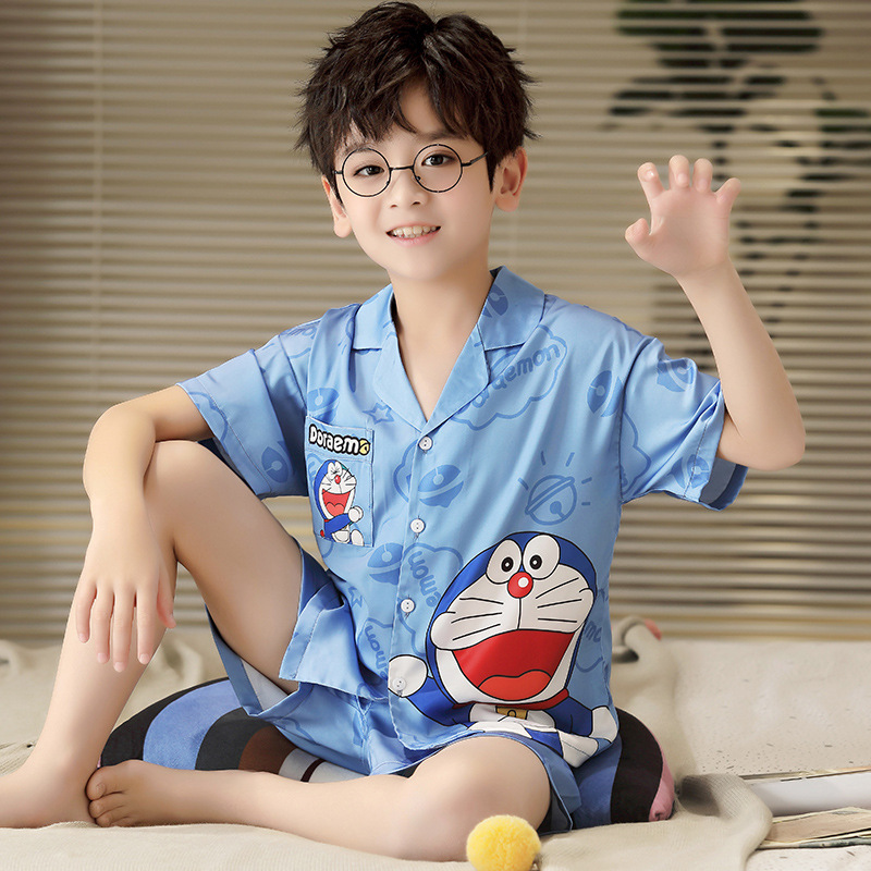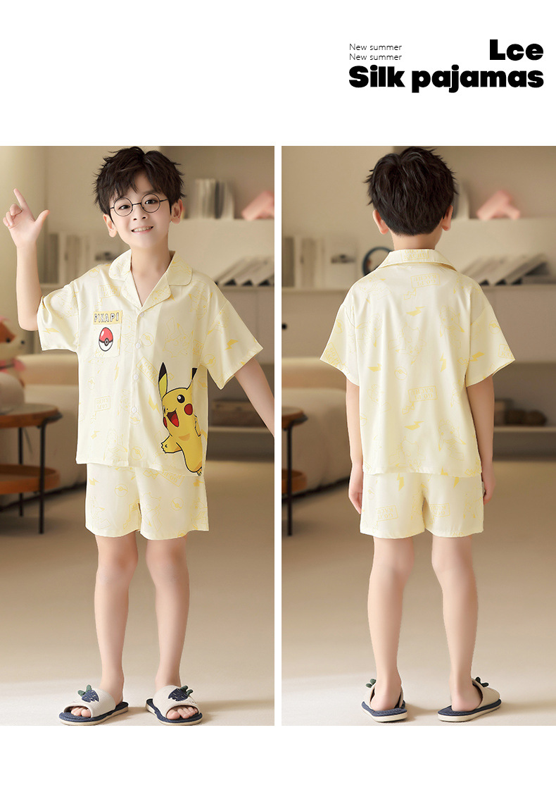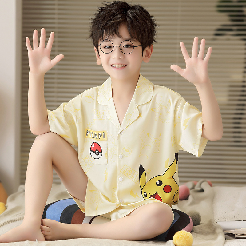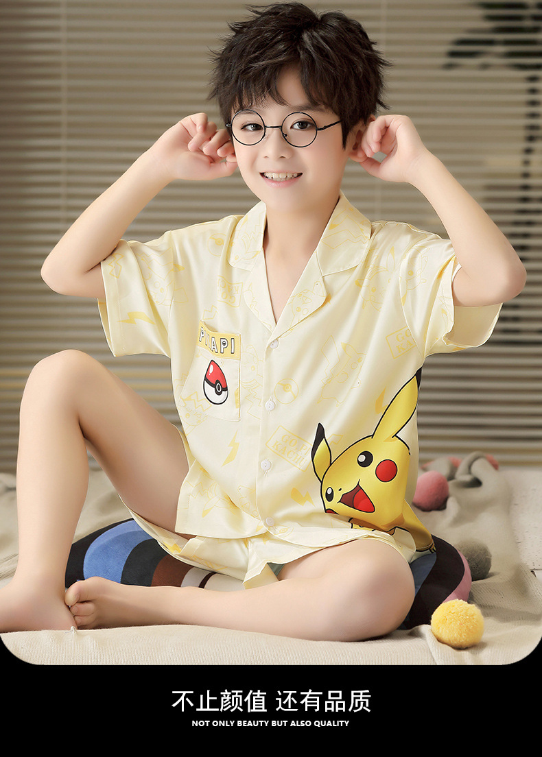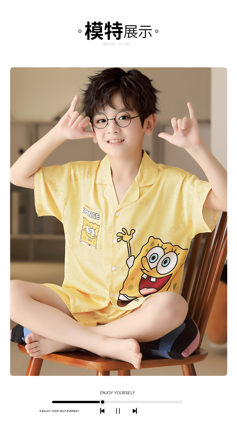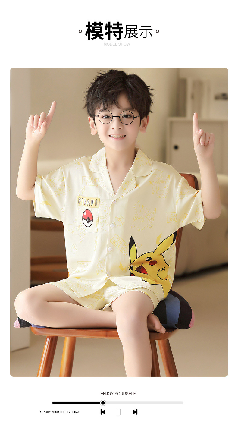 아이스 실크 소년의 잠옷 여름 소년과 아기를위한 얇은 반팔 카디건 여름 어린이 및 청소년 실크 홈 옷