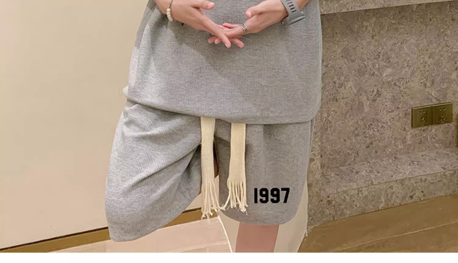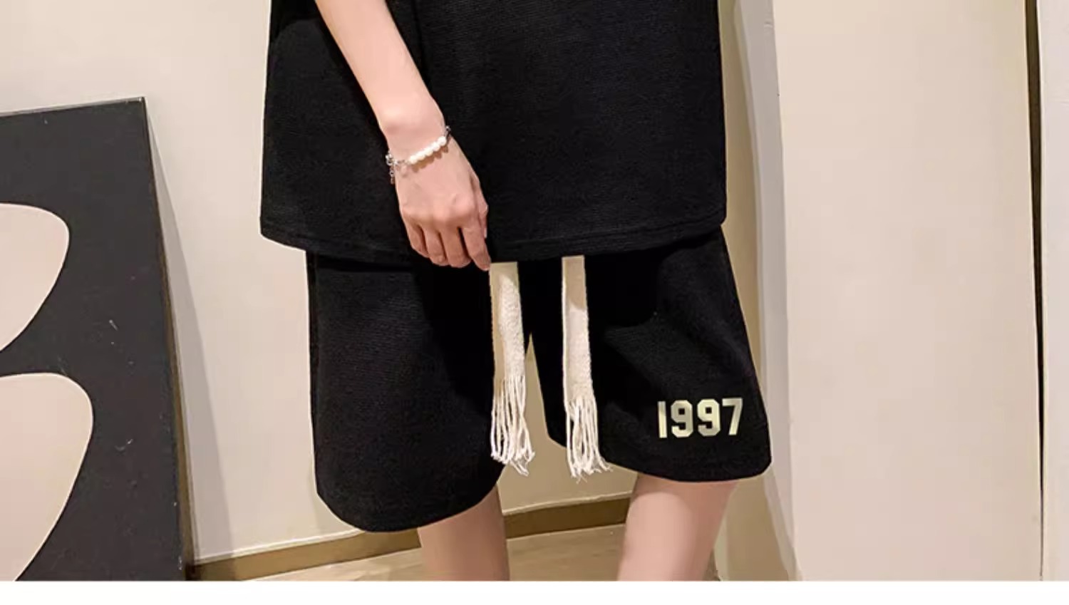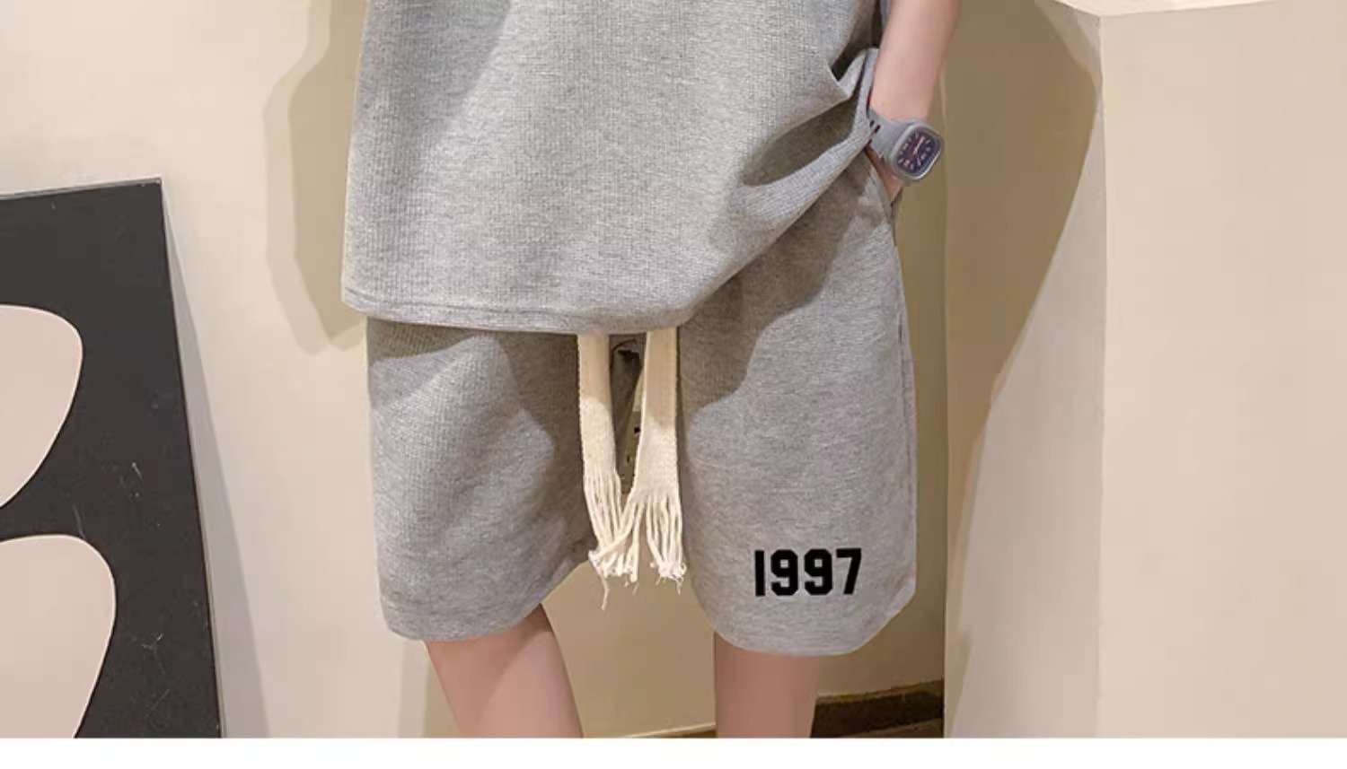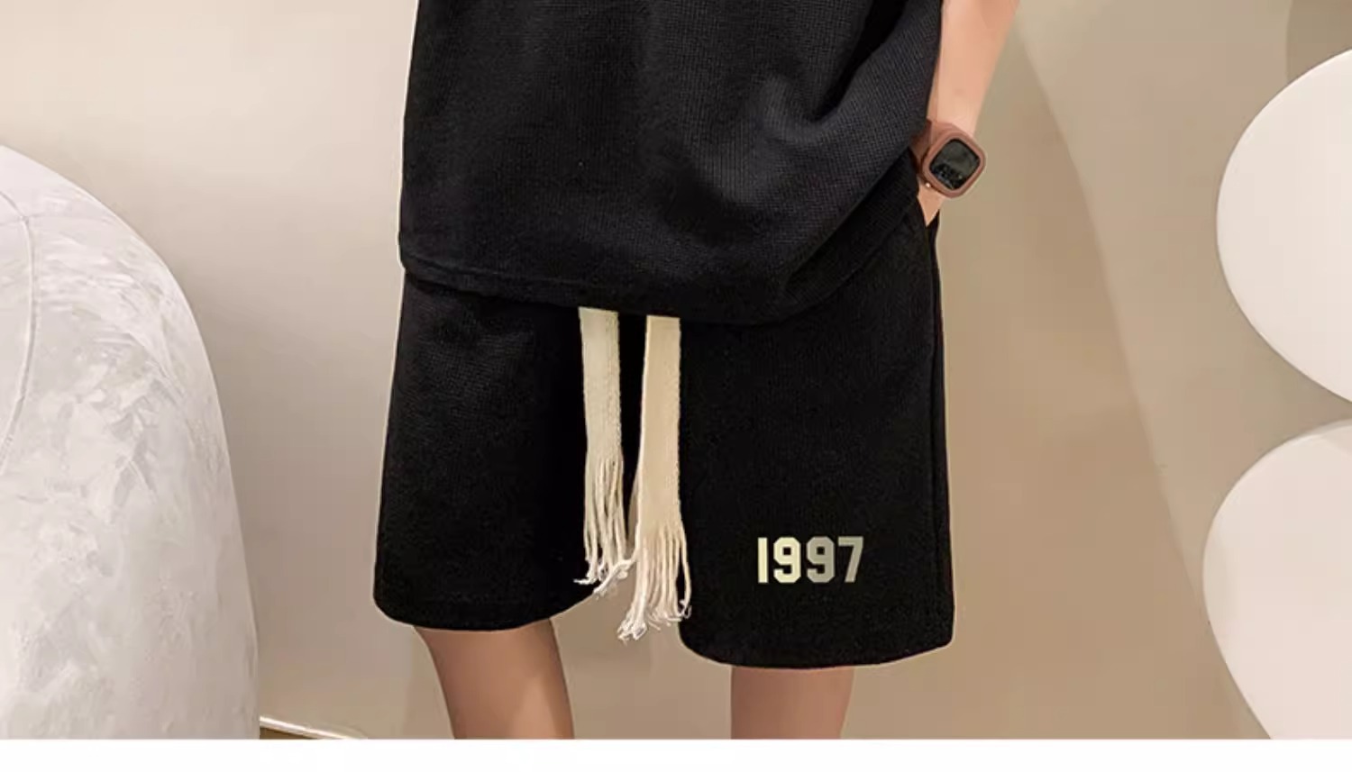 와플 반팔 티셔츠 남자 여름 스포츠 세트 느슨한 캐주얼 반바지 홍콩 스타일 Ins 트렌디 투피스 세트스토어 가기