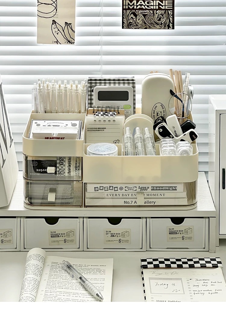 대용량 펜 홀더 저장 상자 높은 색상 가치 학생 데스크탑 다기능 서랍 펜 버킷 데스크 사무실 랙