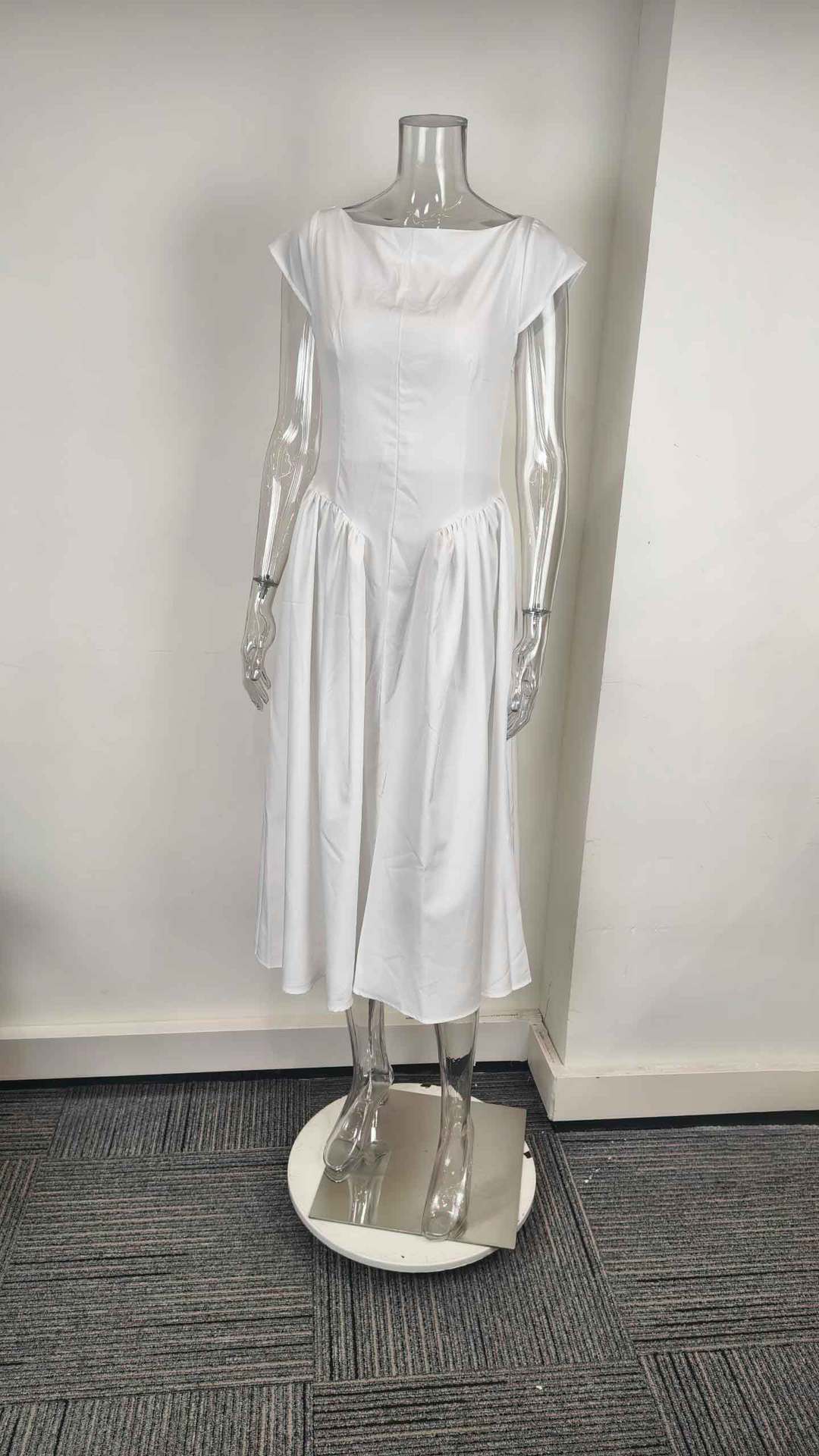 2026 봄 신상 유럽 및 미국 여성복 우아하고 섹시한 백리스 패션 슬림핏 라운드넥 민소매 단색 원피스