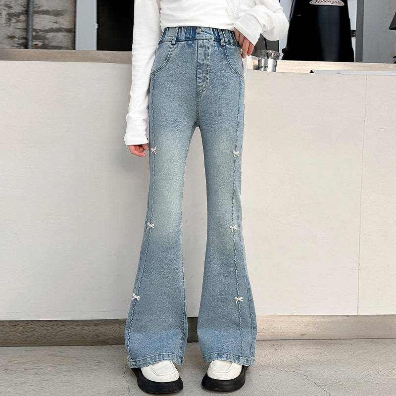 소녀 청바지 스키니 서양식 하이 허리 봄 착용 대형 어린이 캐주얼 바지 걸스 스트레치 플라 바지스토어 가기