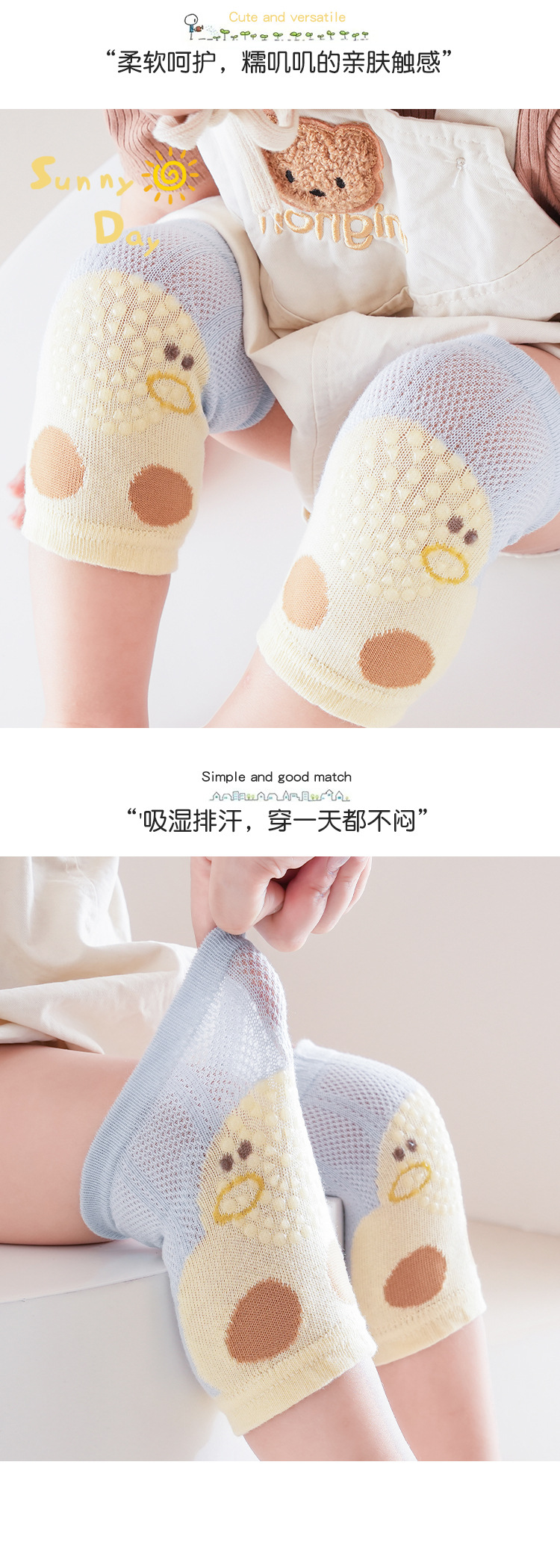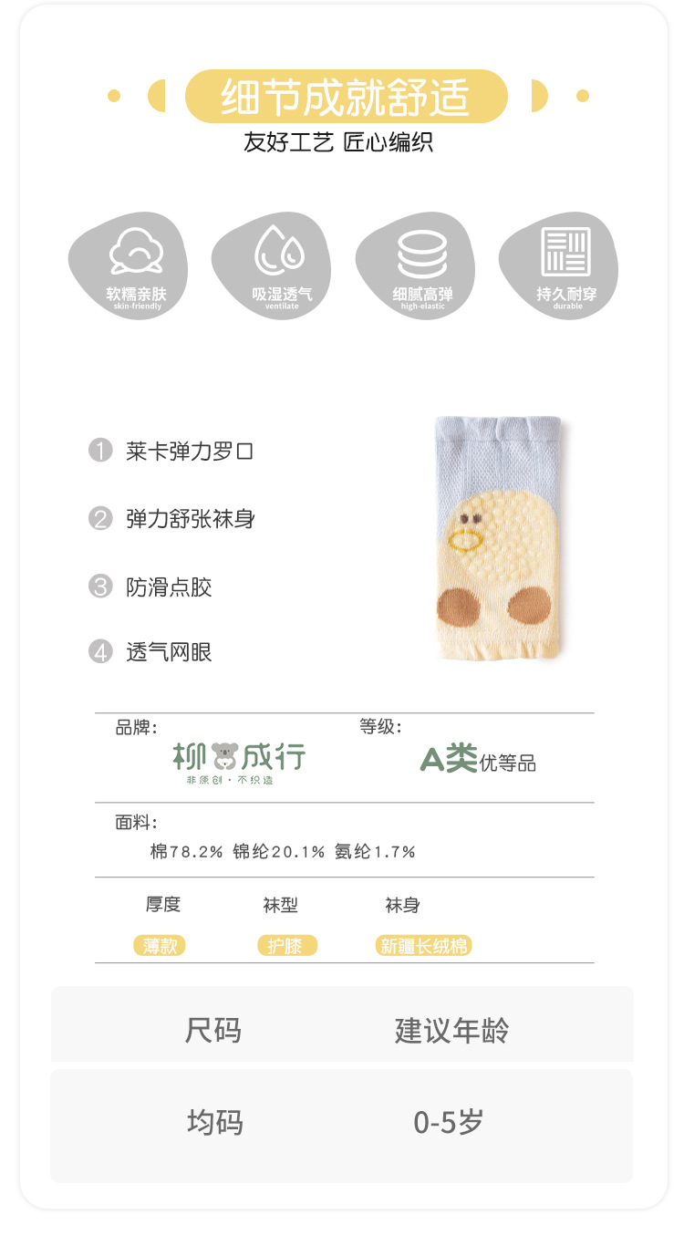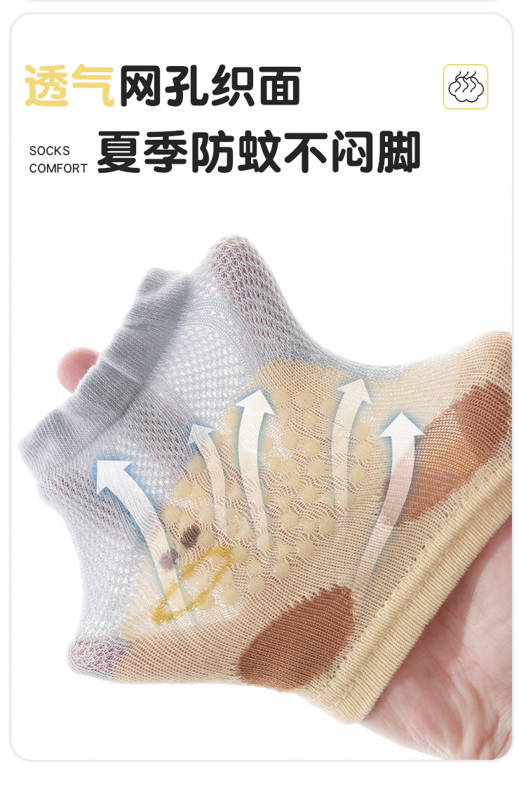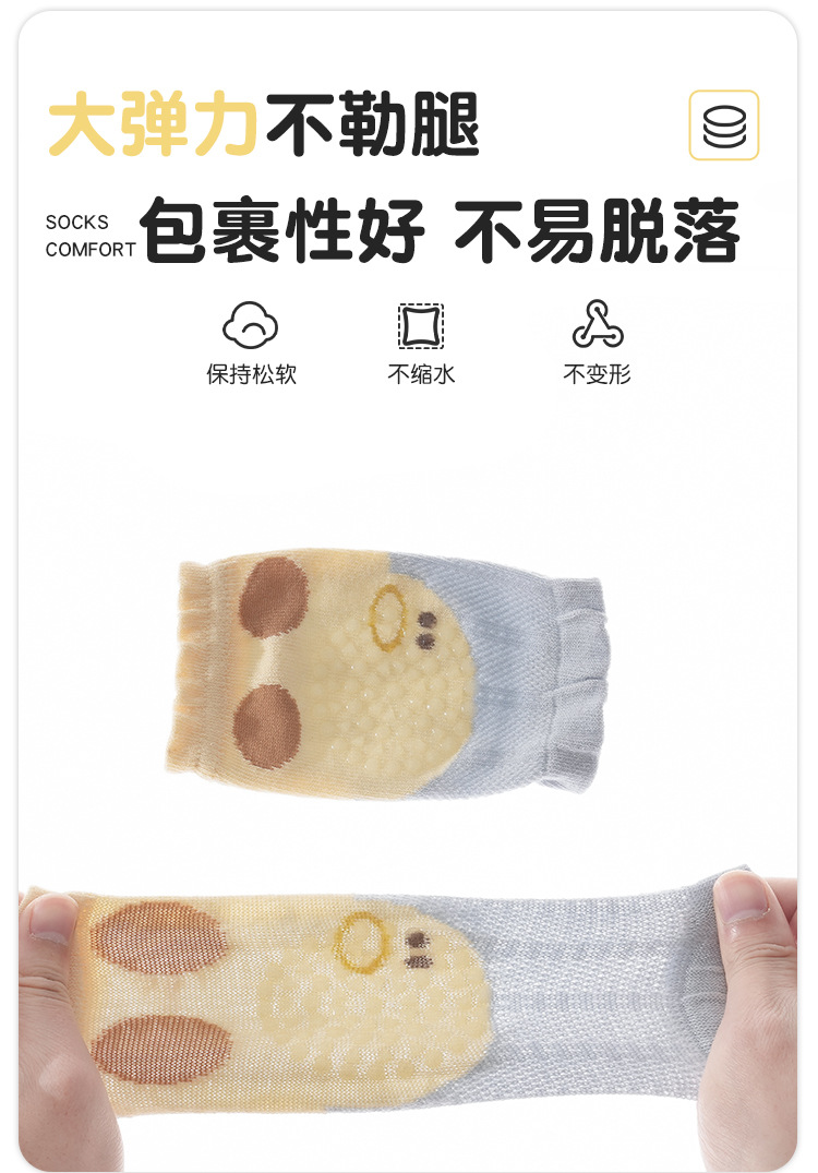 봄과 여름 새로운 아기 무릎 양말 얇은 항균 메쉬 만화 미끄럼 방지 아기 분배 기어가는 양말 통기성이 답답하지 않음