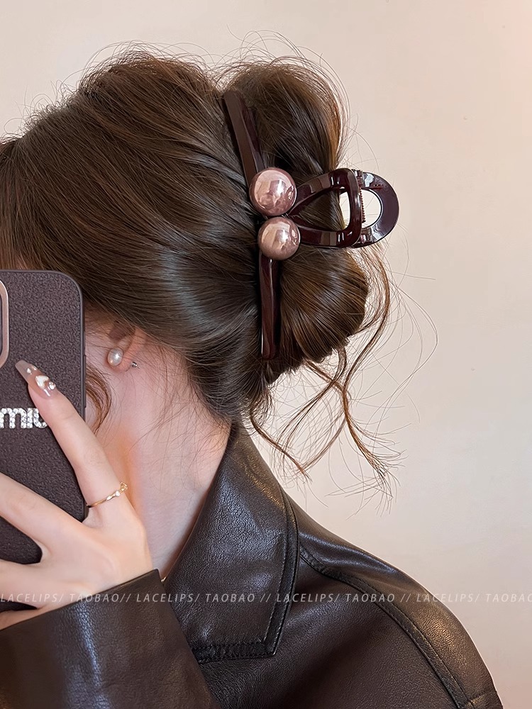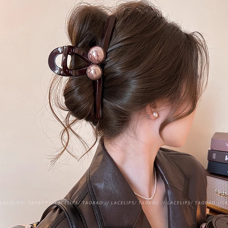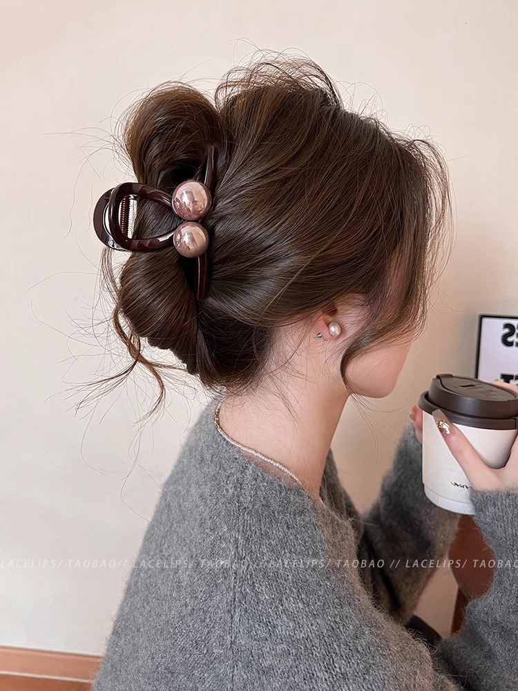 이른 봄 고급 진주 그랩 클립 대형 상어 클립 헤어 클립 여성용 2025 새로운 헤드 디스크 헤어 클립 헤어 액세서리