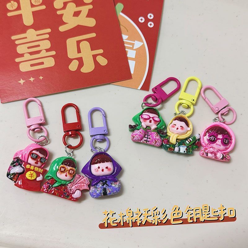 만화 동북 소녀 키 체인 컬러 코튼 패딩 재킷 리치 소녀 펜던트 학생 Schoolbag 여자 친구 선물 액세서리