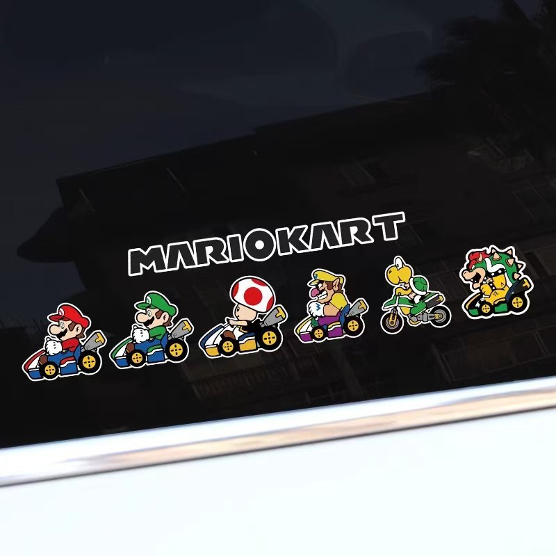 마리오 자동차 스티커 전기 자동차 스티커 귀여운 창조적 인 슈퍼 메리 오토바이 장식 헬멧 스티커 자동차 스티커스토어 가기
