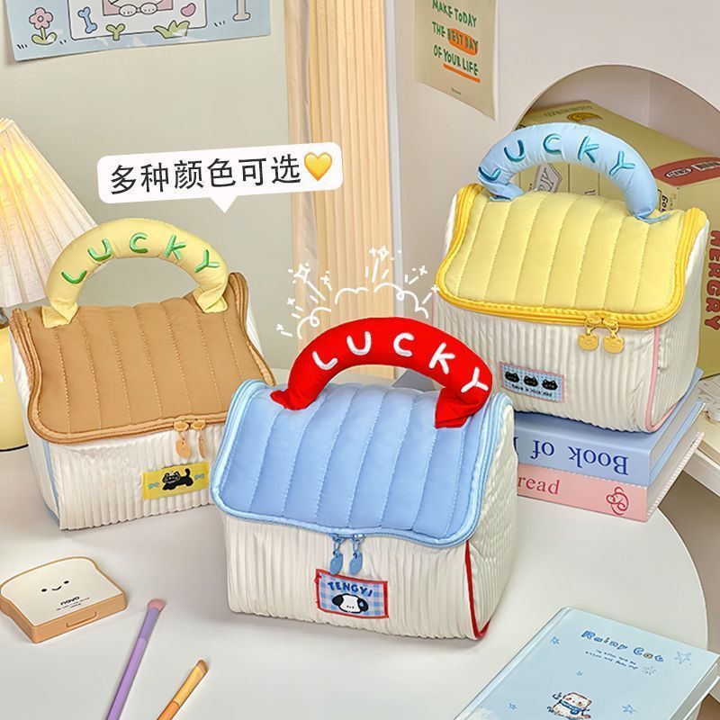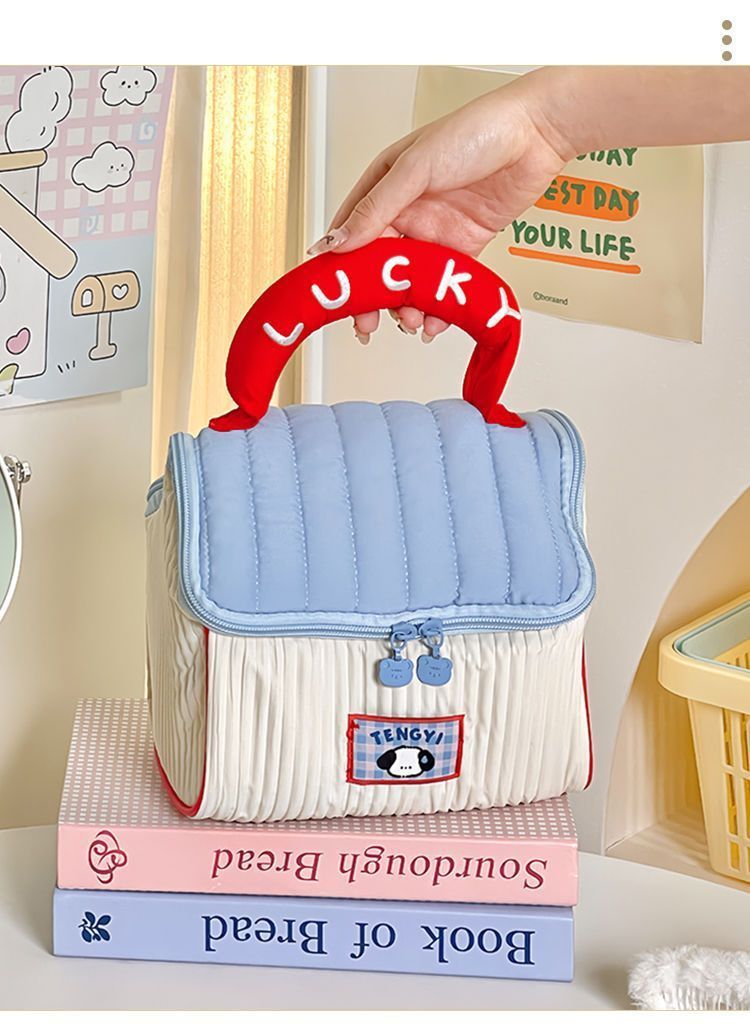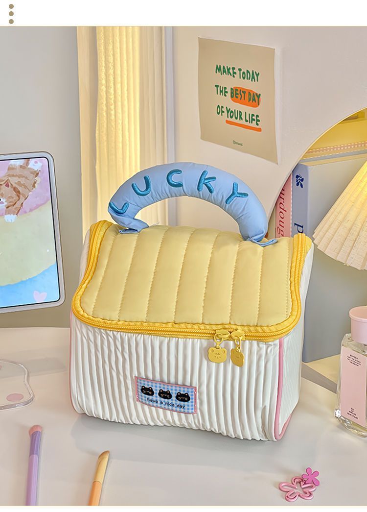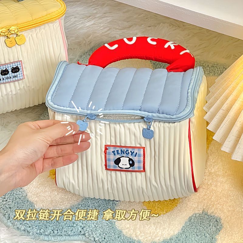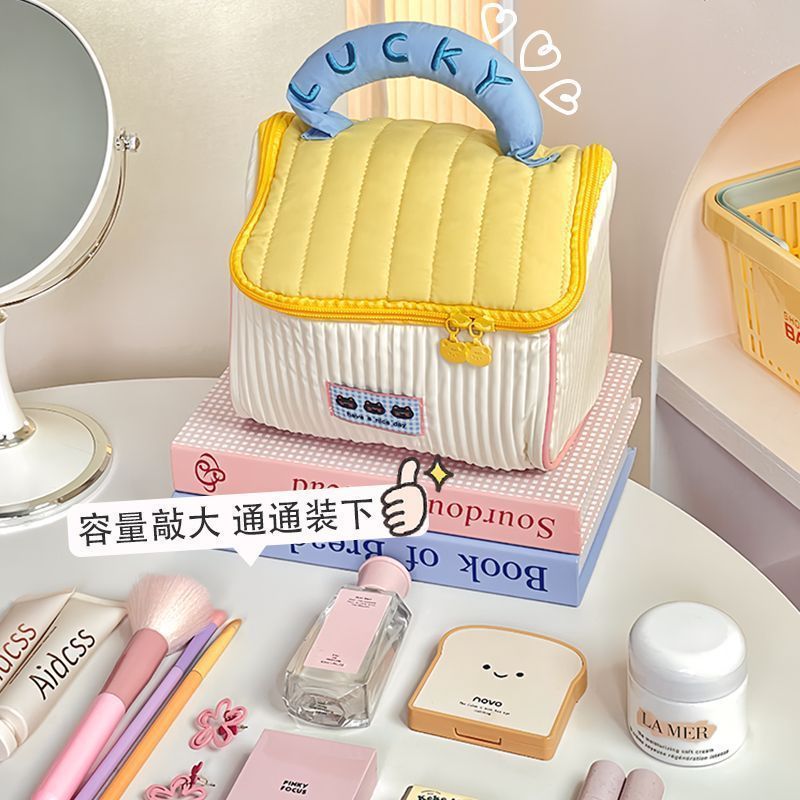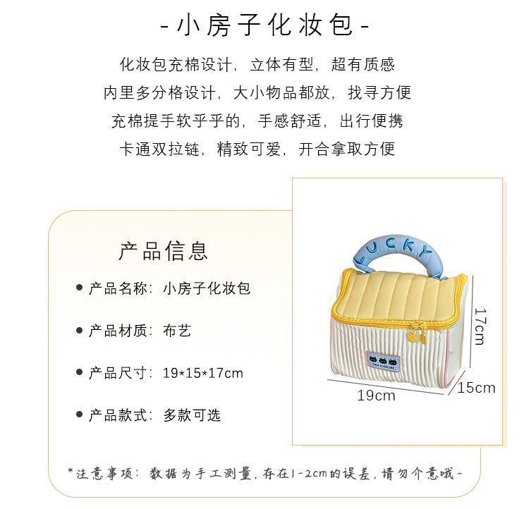 귀여운 인스 스타일 도파민 배색 작은 집 화장품 가방, 세련된 소녀들을 위한 가볍고 편리한 여행용 수납 가방스토어 가기