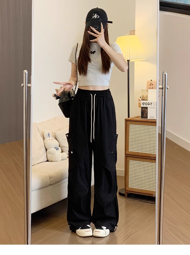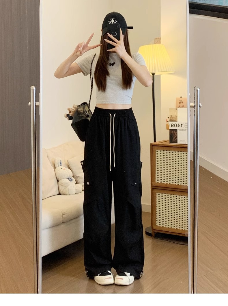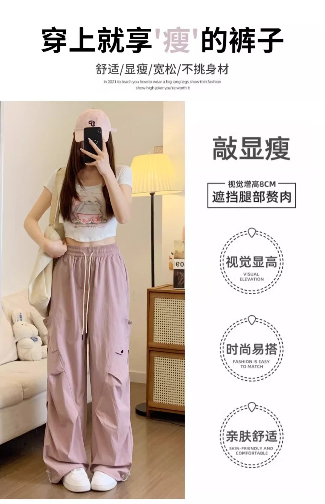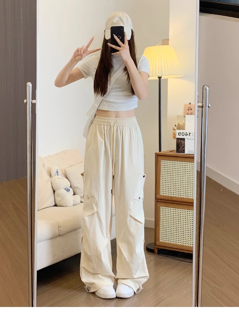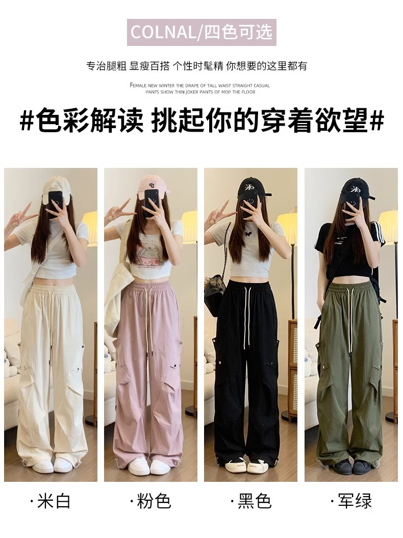 작업복 여성의 봄과 가을 2025 새로운 높은 허리 느슨한 스트레이트 아메리칸 스타일 카키 캐주얼 야외 등산 스포츠 바지스토어 가기