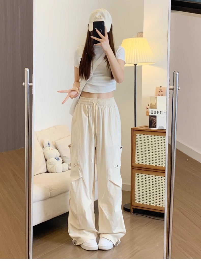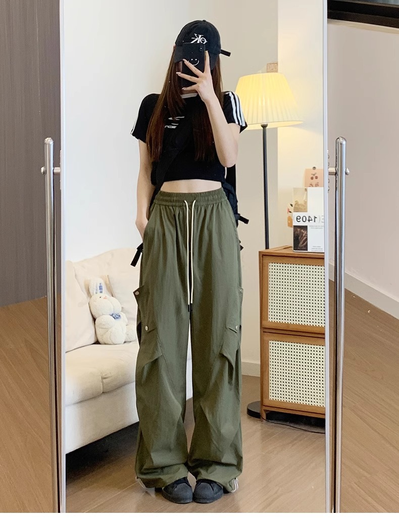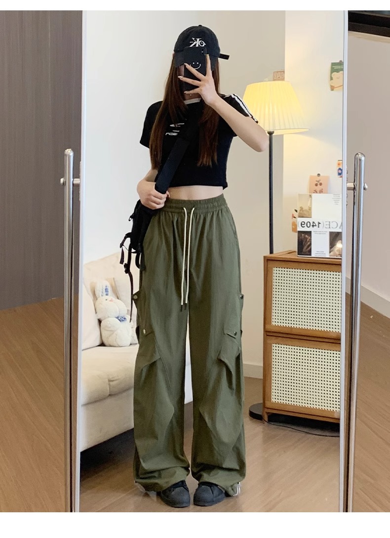 작업복 여성의 봄과 가을 2025 새로운 높은 허리 느슨한 스트레이트 아메리칸 스타일 카키 캐주얼 야외 등산 스포츠 바지