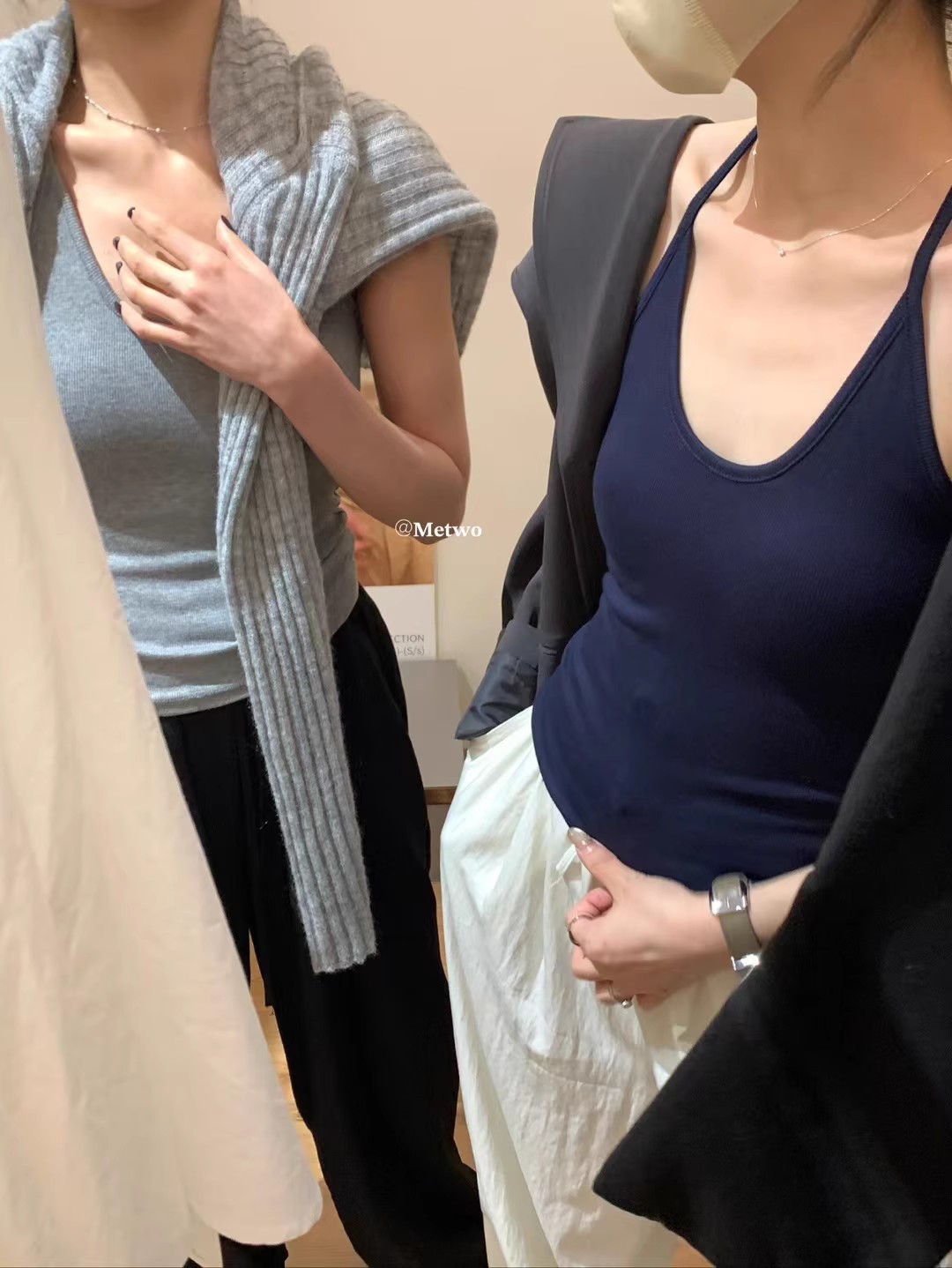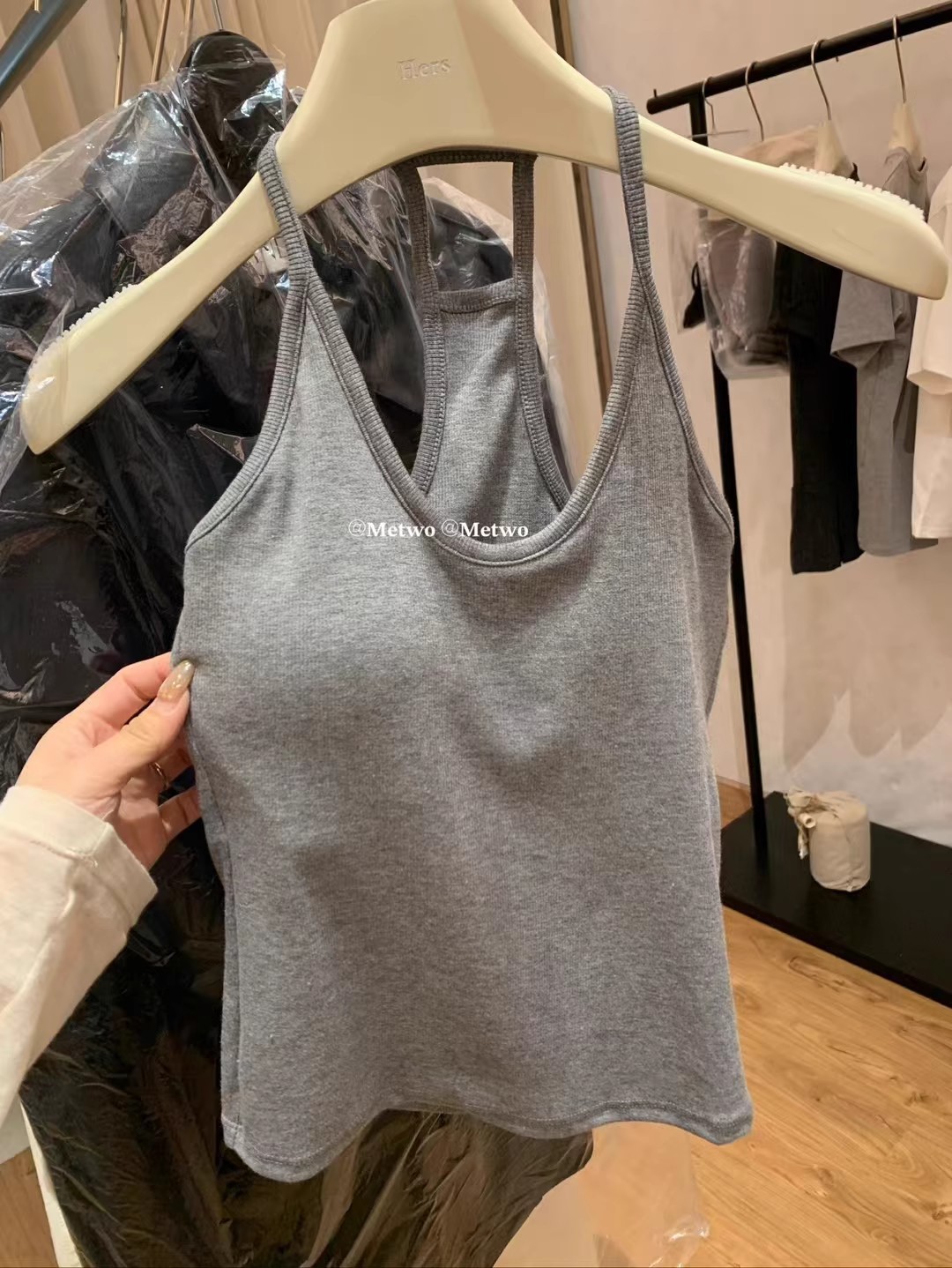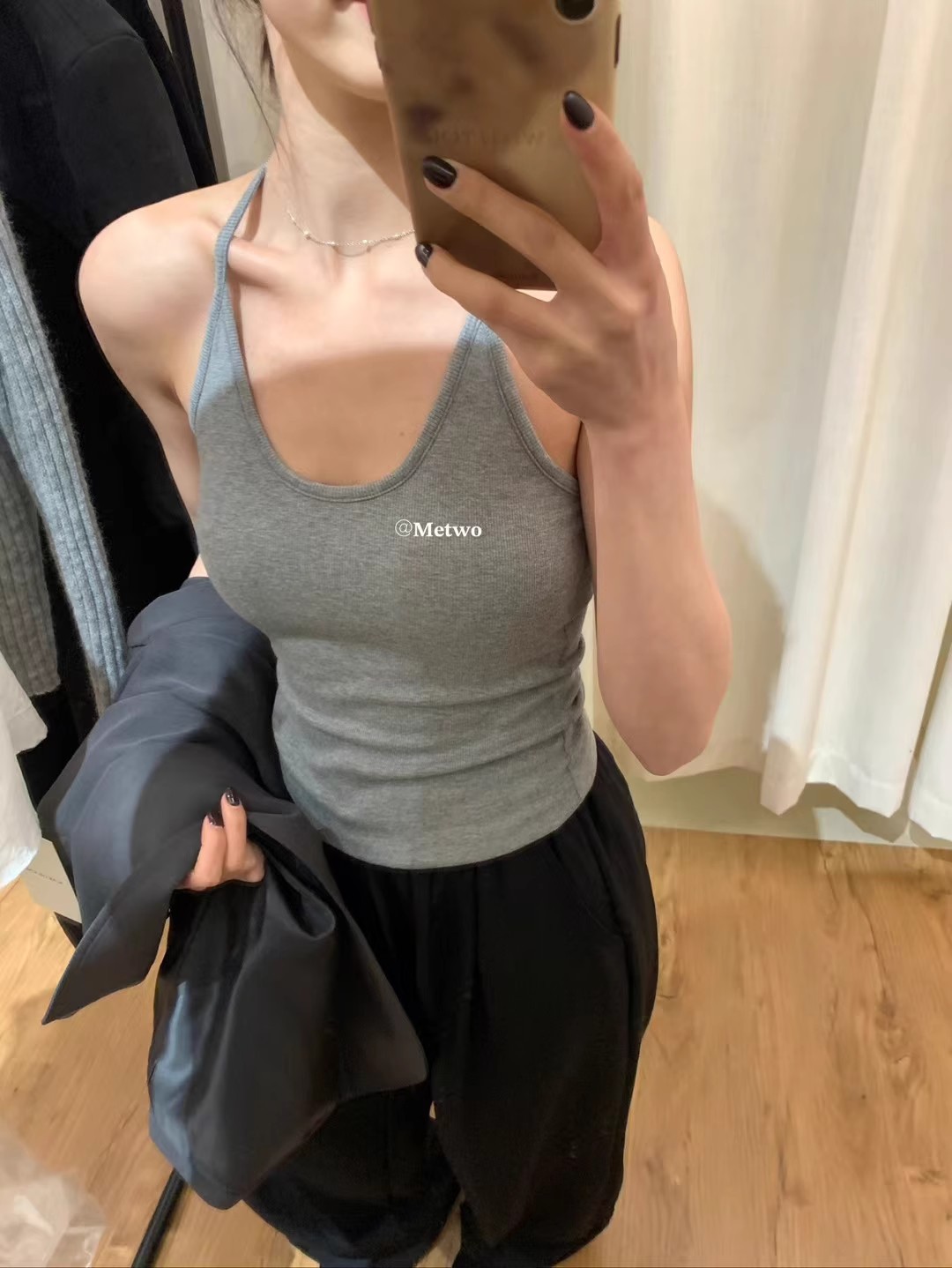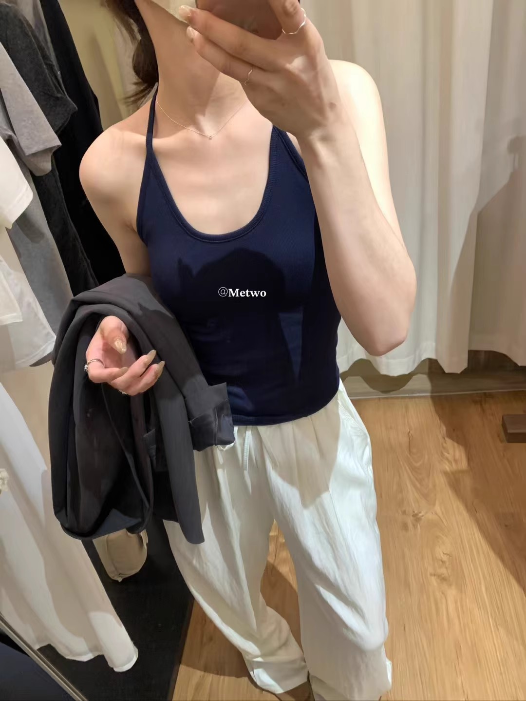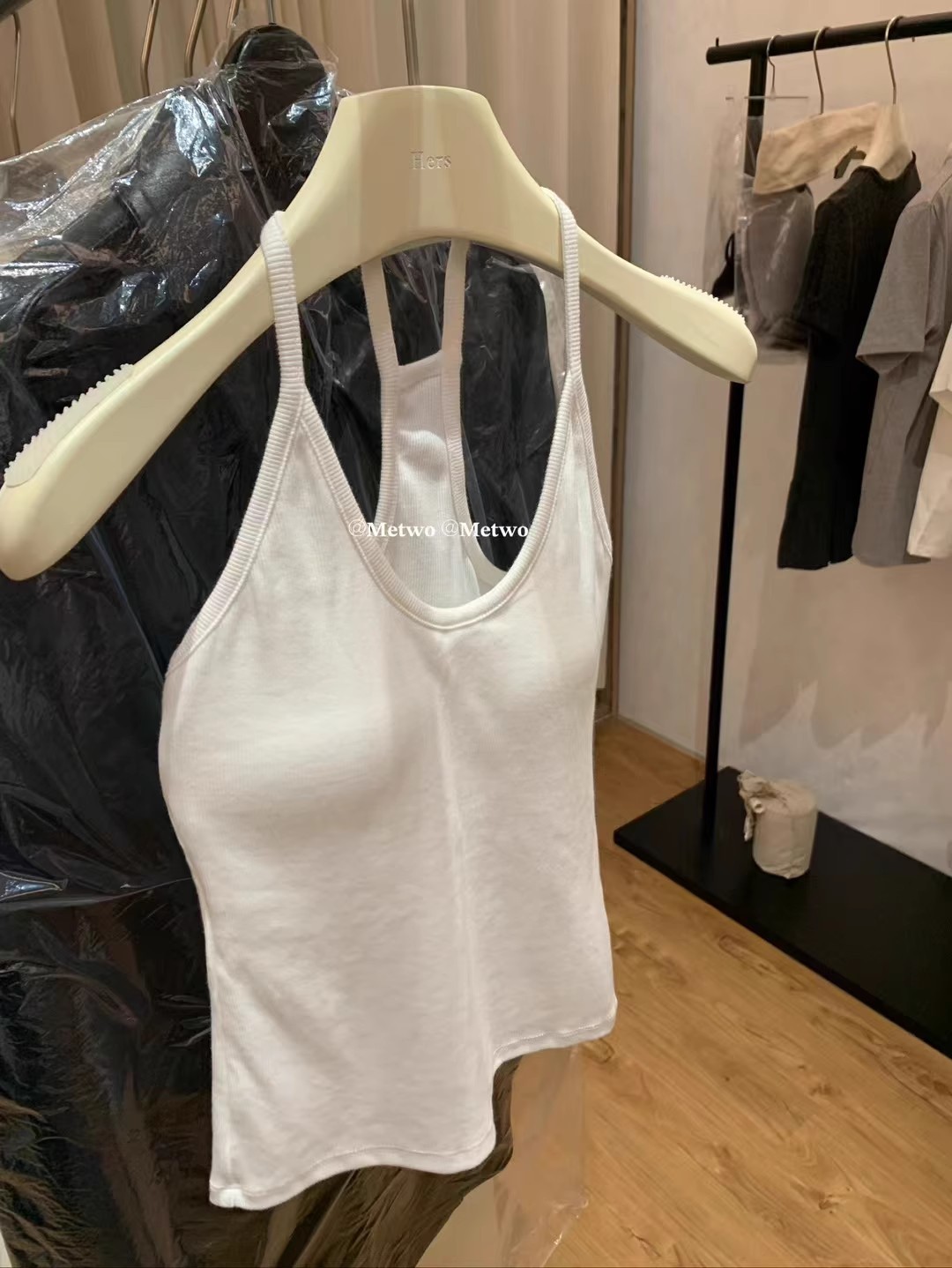 가슴 패드가있는 Metwo U-neck Camisole 여름 얇은 외부 착용 브래지어 컵스토어 가기