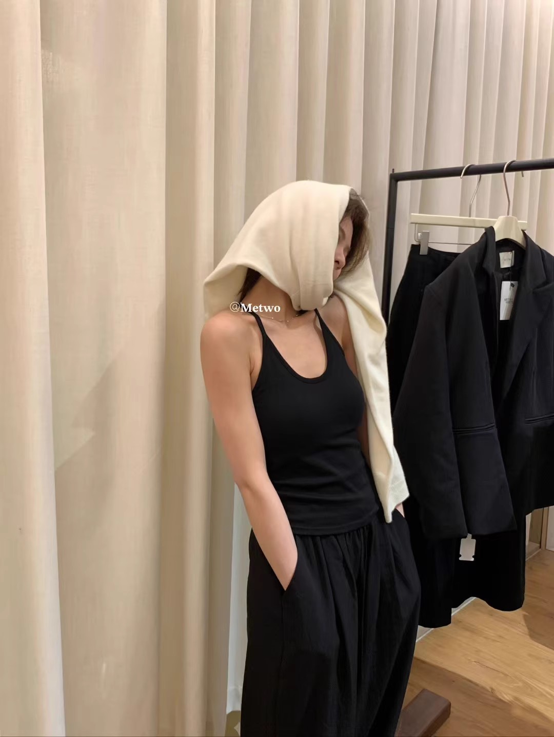 가슴 패드가있는 Metwo U-neck Camisole 여름 얇은 외부 착용 브래지어 컵