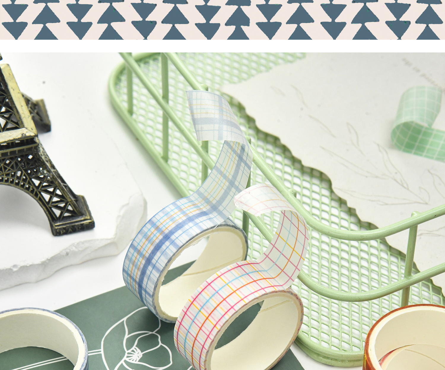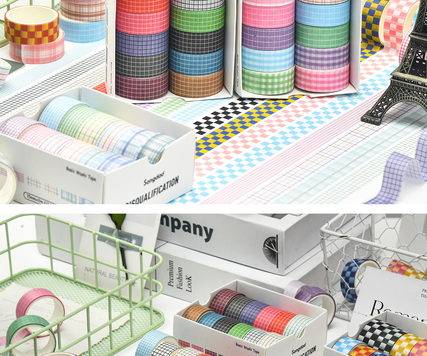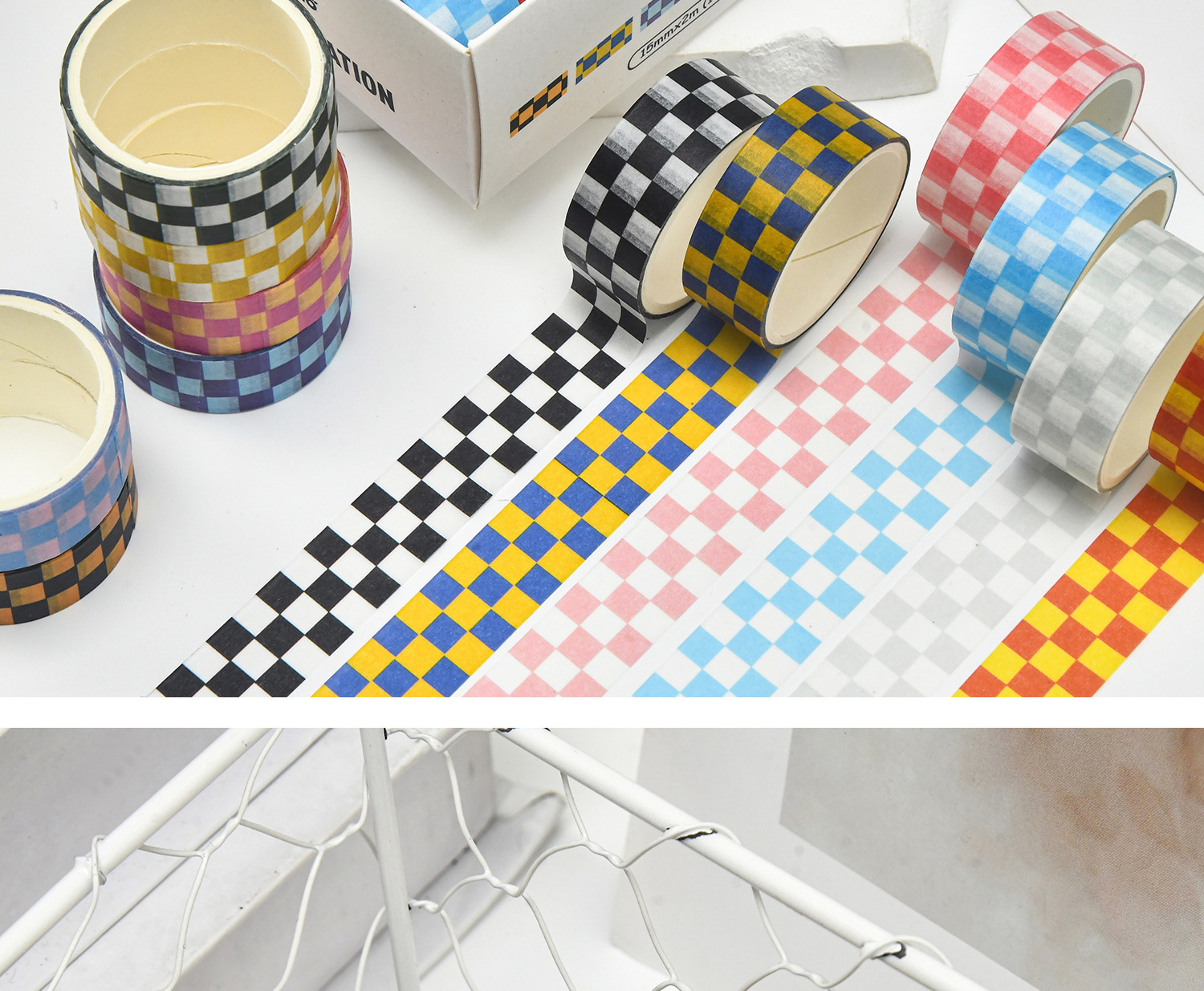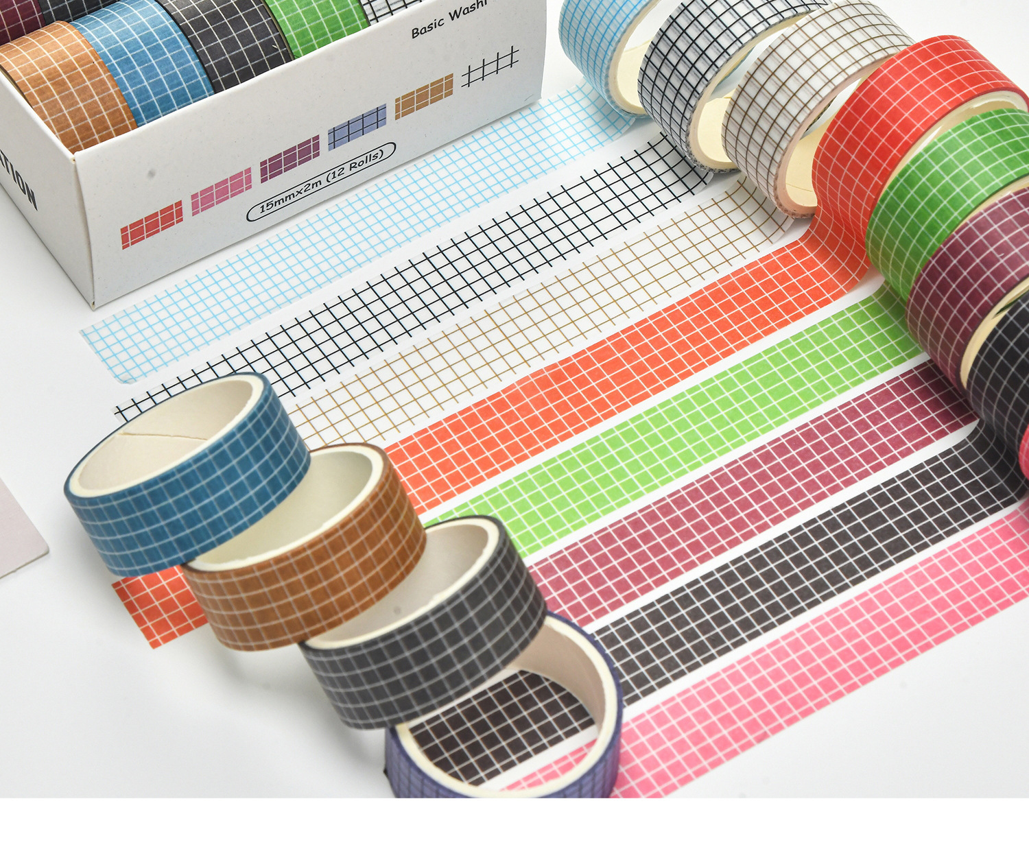 창의적인 체크 패턴 기본 학생 diy 문구 손 계정 테이프에 관련된 불명예스럽고 종이 테이프 세트 12
