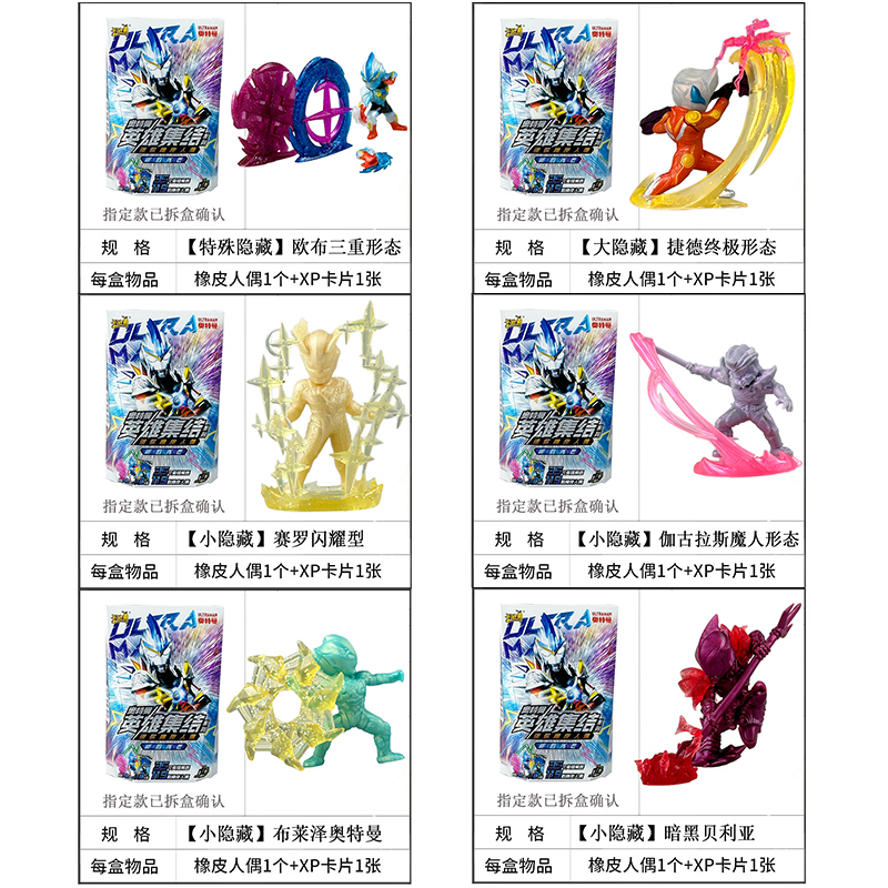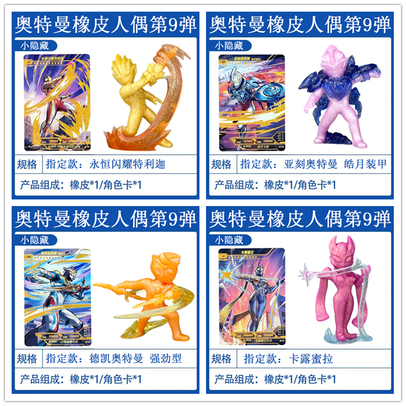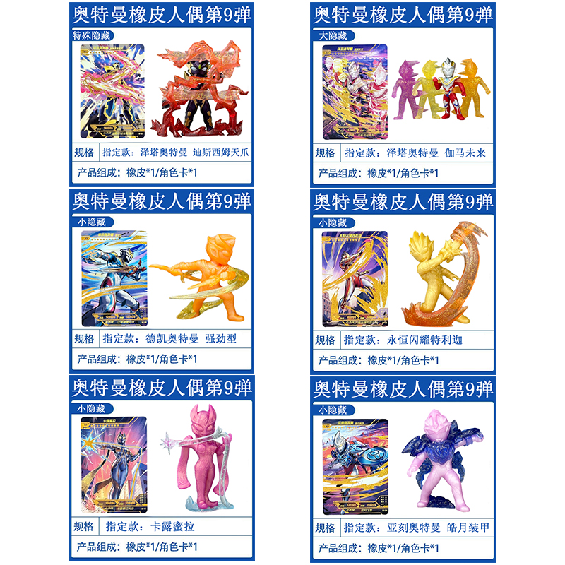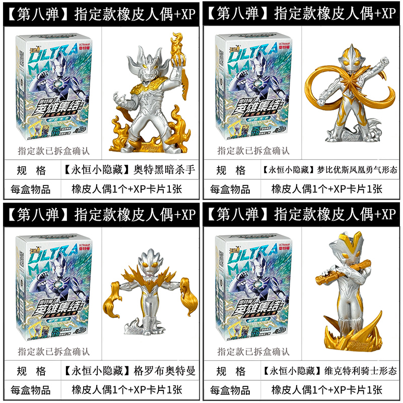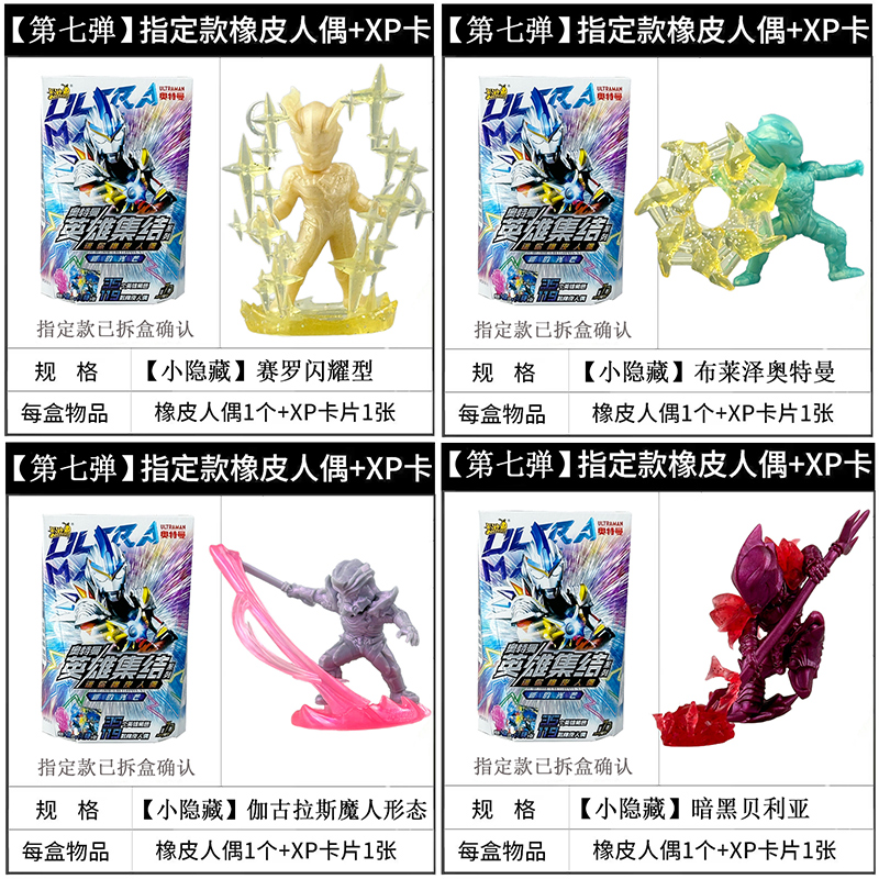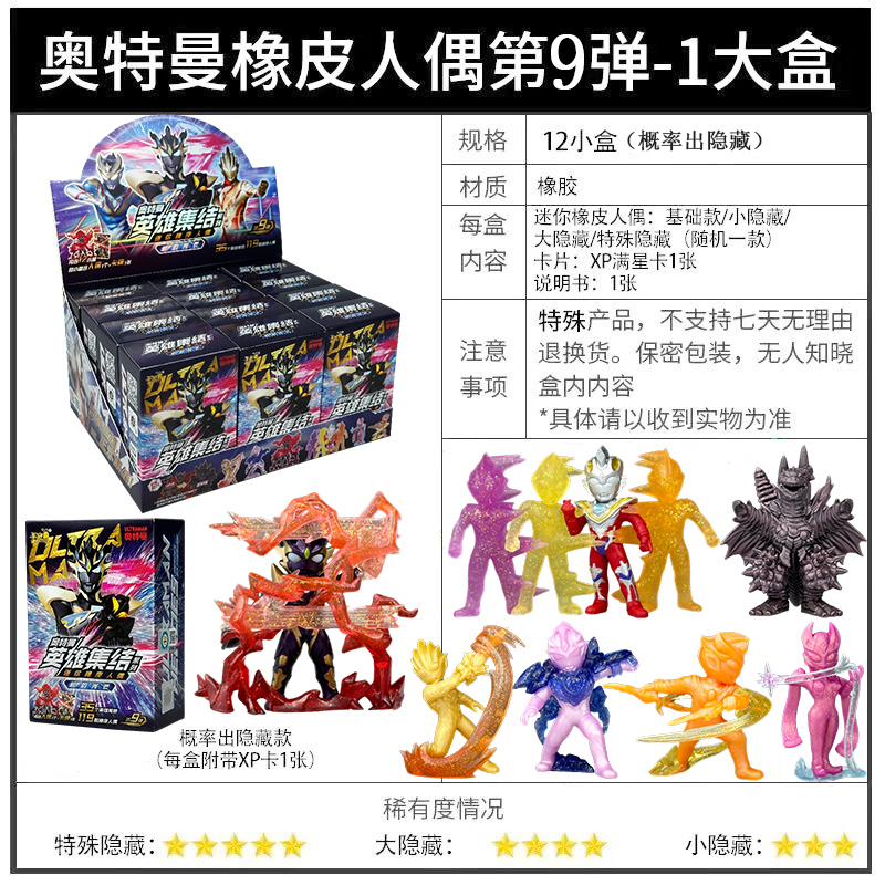 새로운 울트라 맨 미니 고무 인형 9 는 블라인드 박스를 모으는 대형 숨겨진 XP 카드 영웅의 전체 상자를 재생합니다.