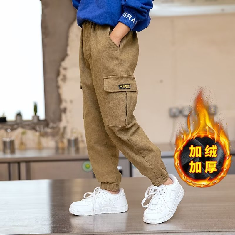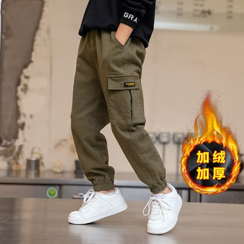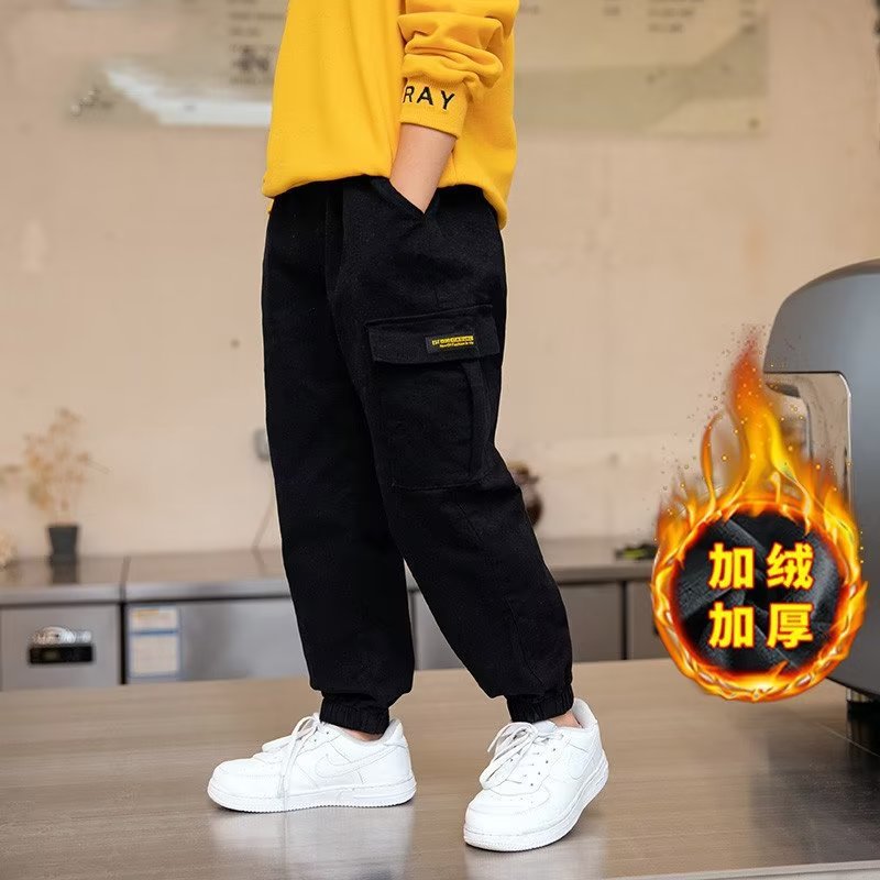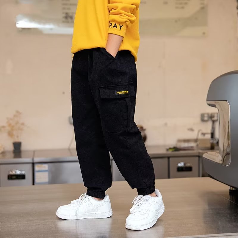 소년 쿠션 바지 봄과 가을 2023 새로운 가을 바지 어린이 발 바지 큰 어린이 가을 바지 트렌디