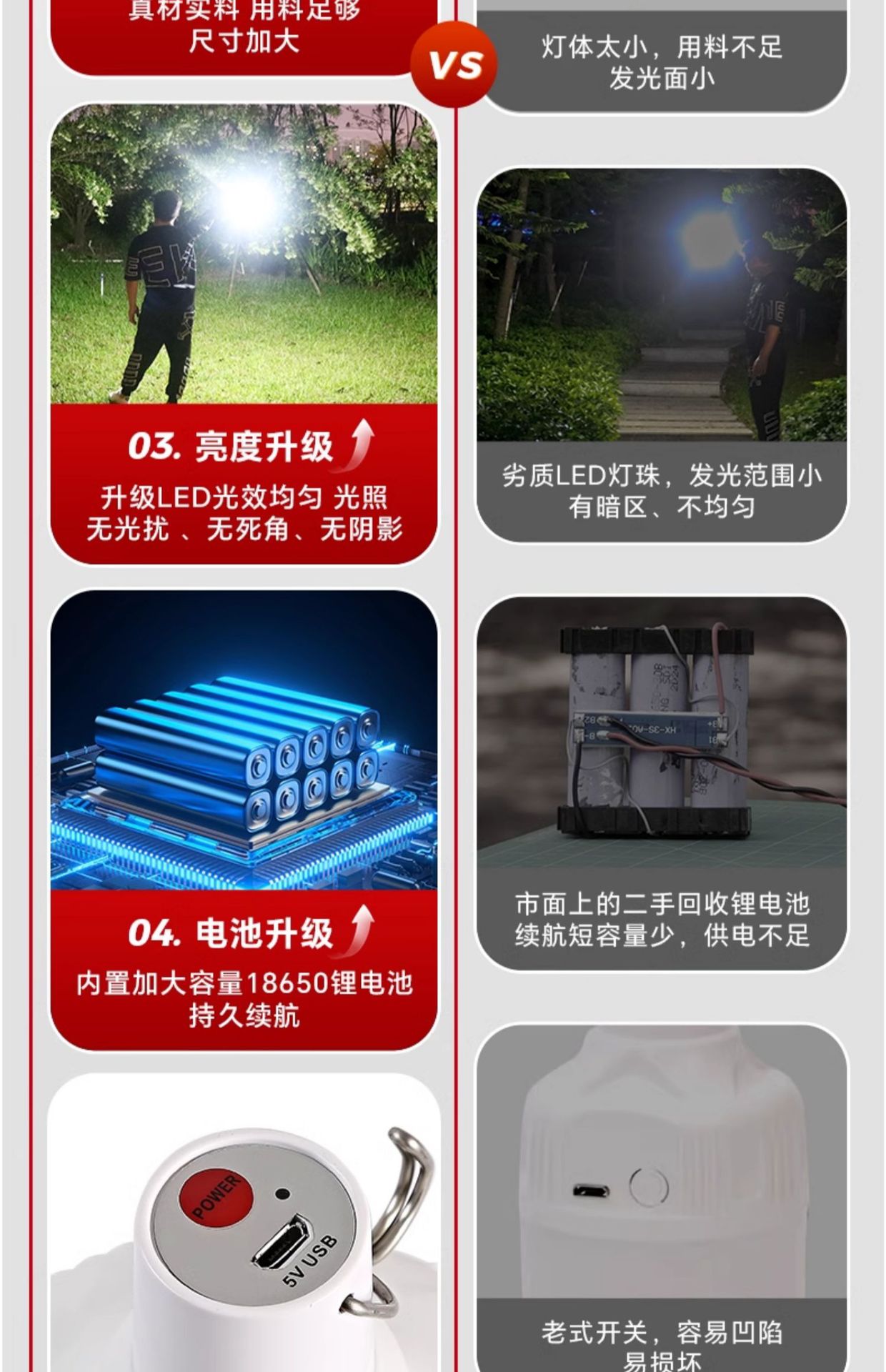 USB 충전 전구 정전 비상 조명 가정용 모바일 슈퍼 밝은 야외 led 야간 시장 실속 조명스토어 가기