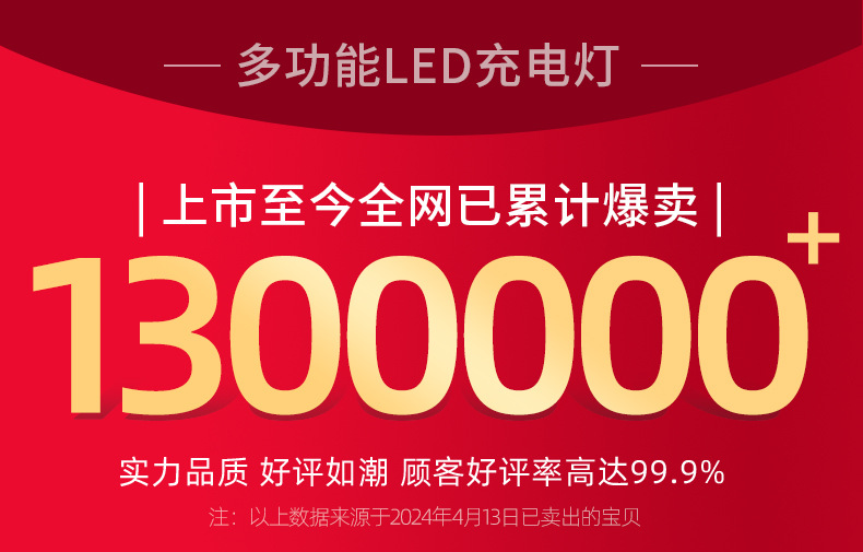 • 충전기 포함 48H 배터리 수명의 밝은 800w-H 백색광