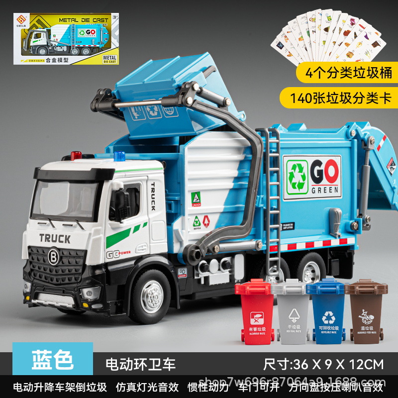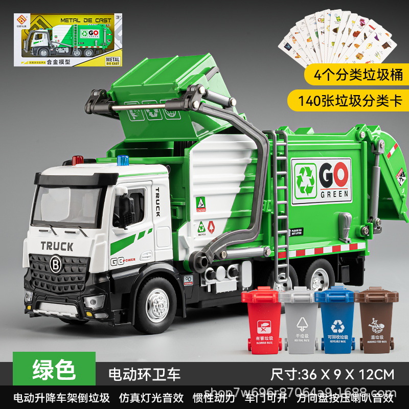 초대형 합금 전기 쓰레기차 어린이 장난감 시뮬레이션 청소차 모델 엔지니어링 차량 소년 장난감 차