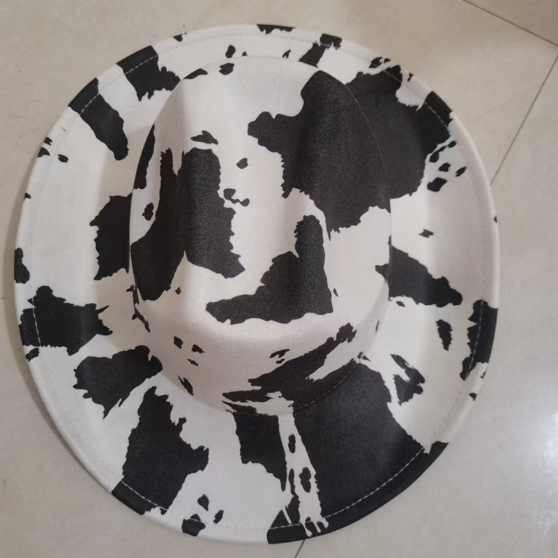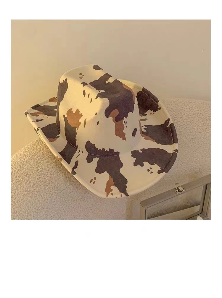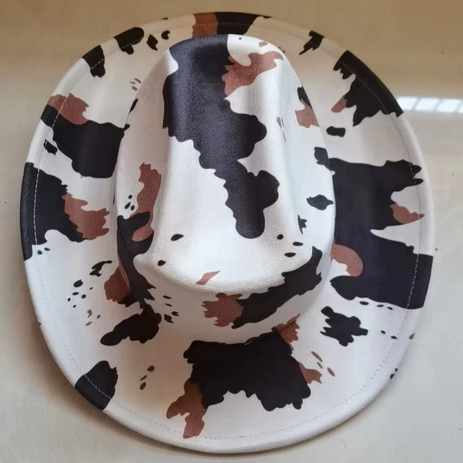 뜨거운 소녀 스타일 새로운 서양 카우보이 모자 유제품 암소 패턴 태양 보호 태양 모자 복고풍 모자 등산 기사 모자