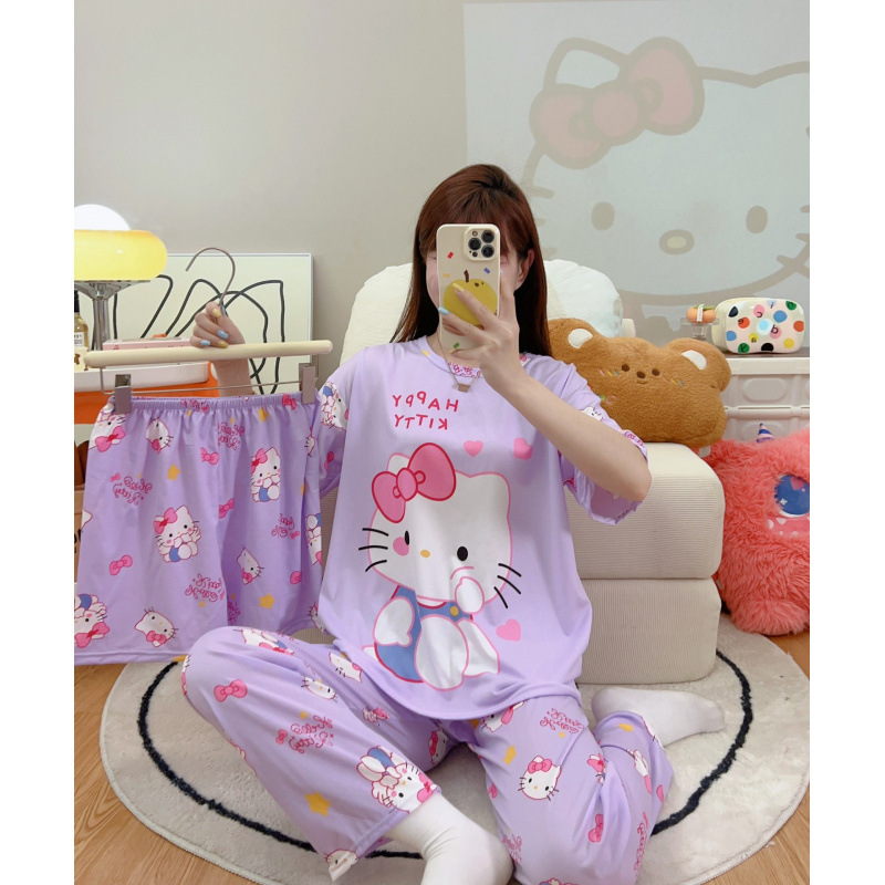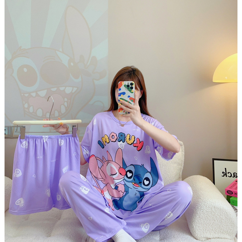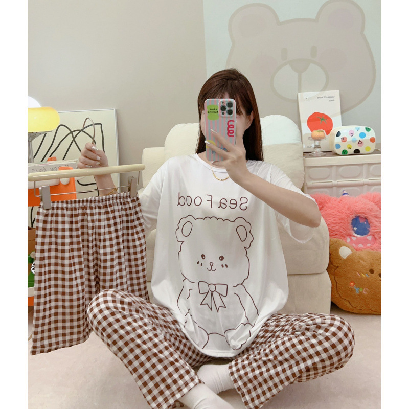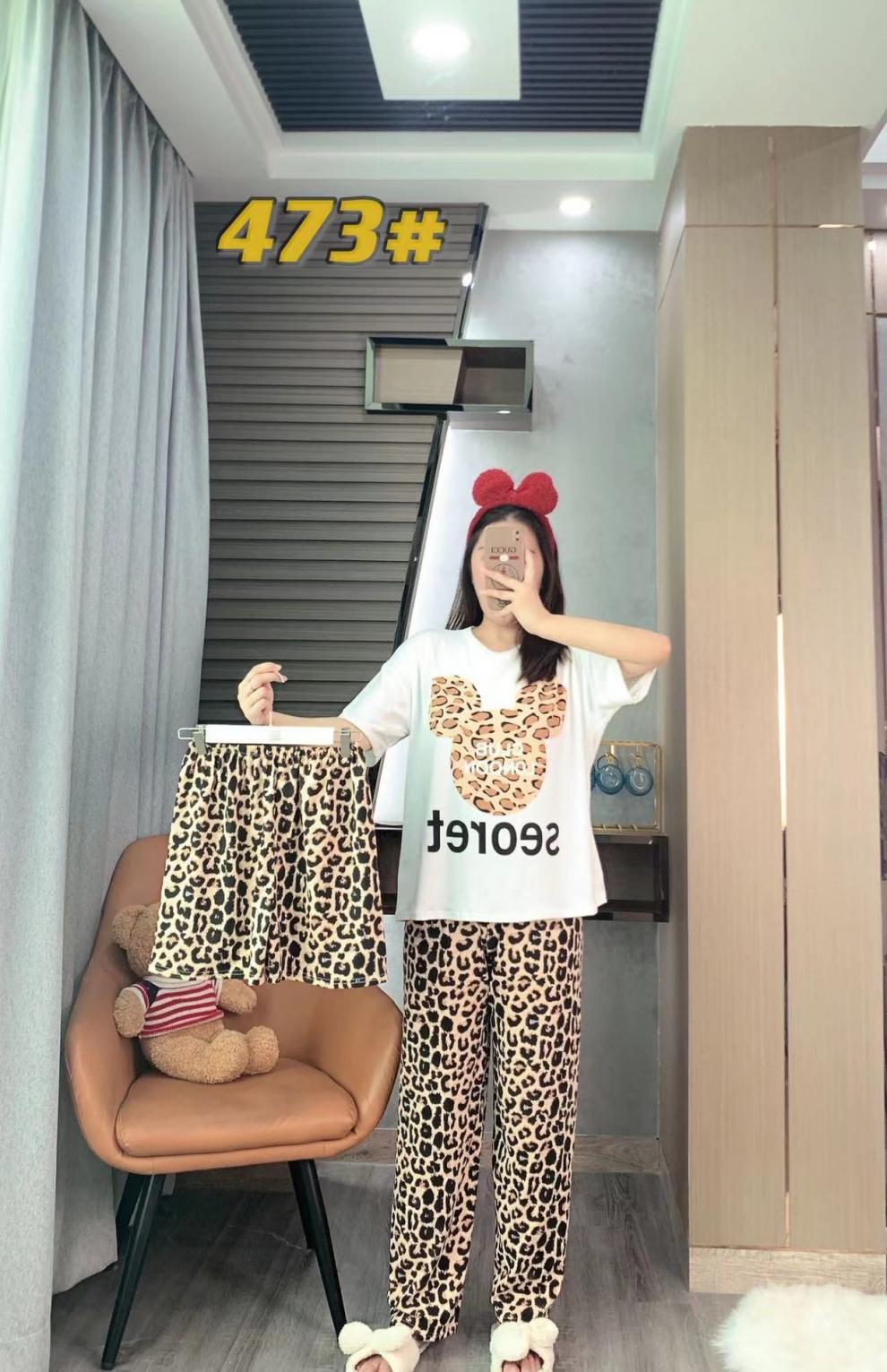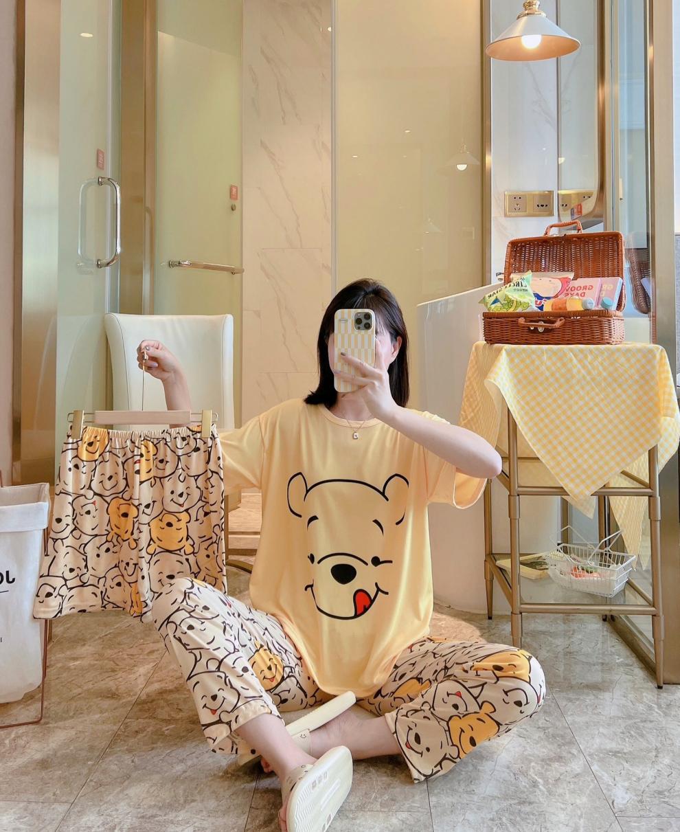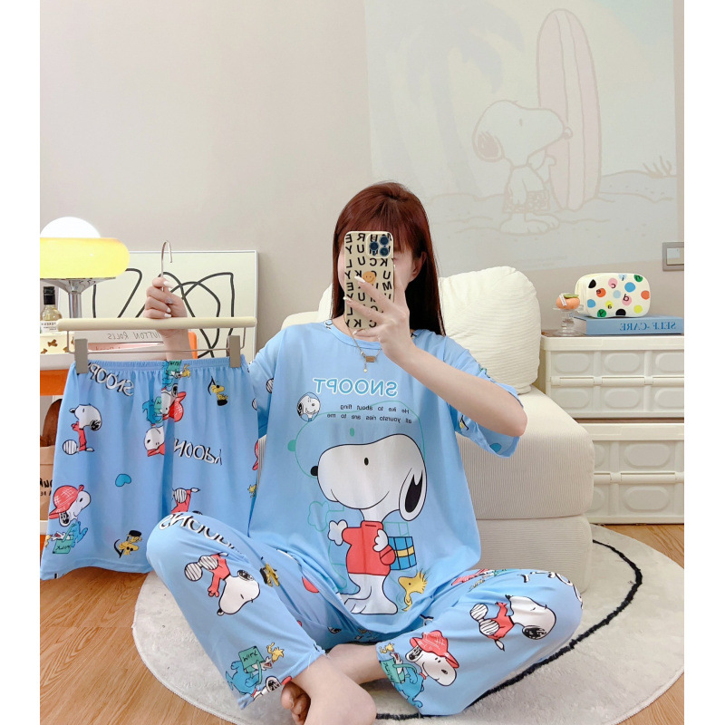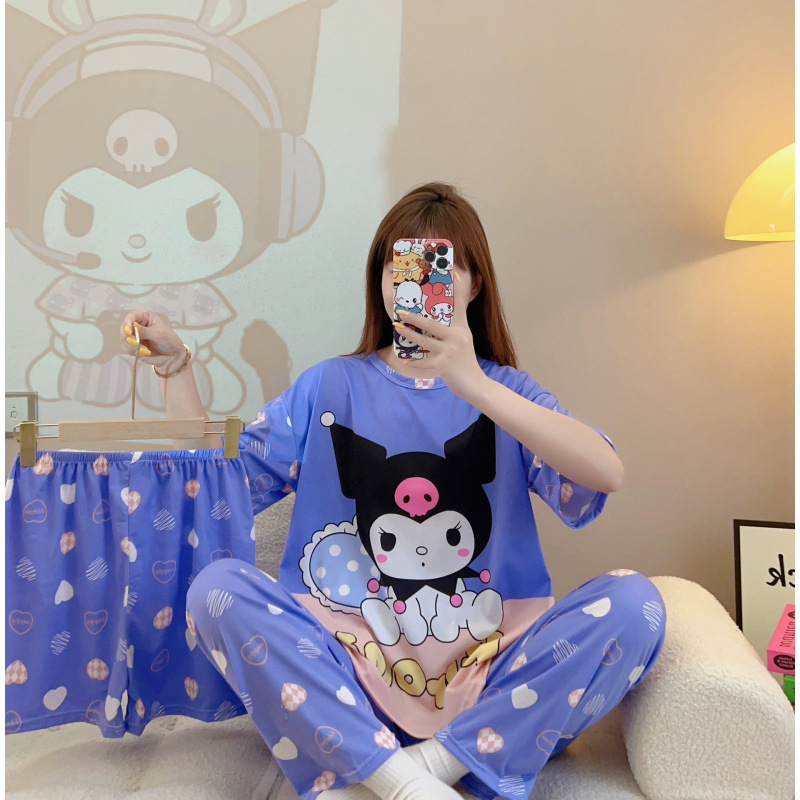 2024 새로운 여름 단면 우유 실크 귀여운 달콤한 만화 짧은 소매 3 피스 잠옷 세트스토어 가기