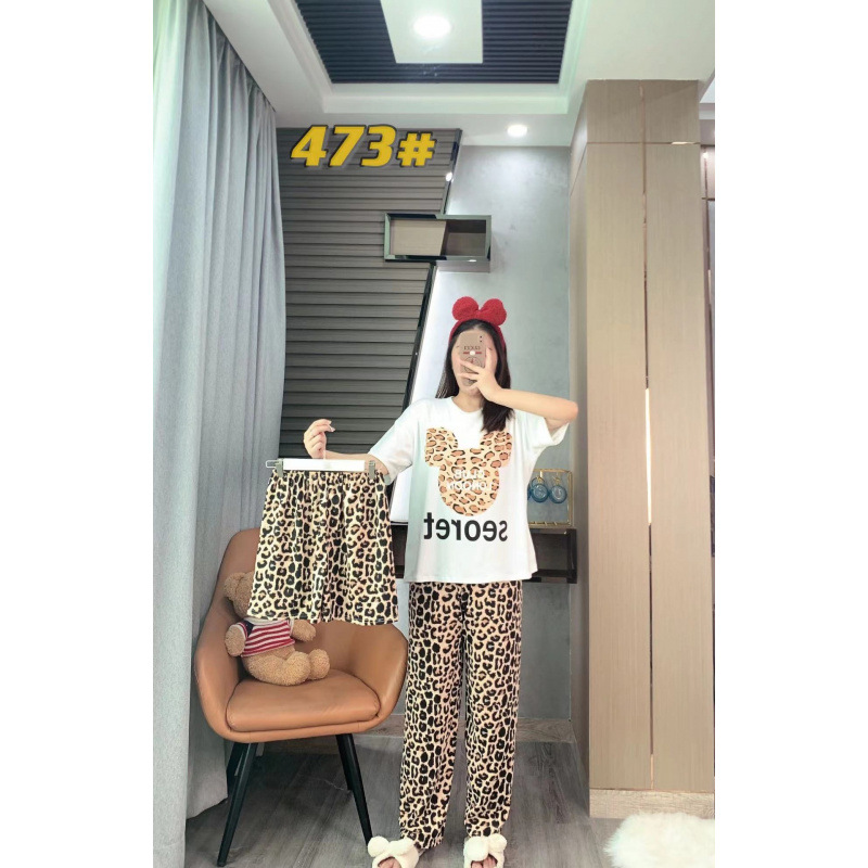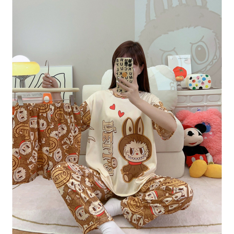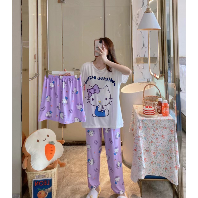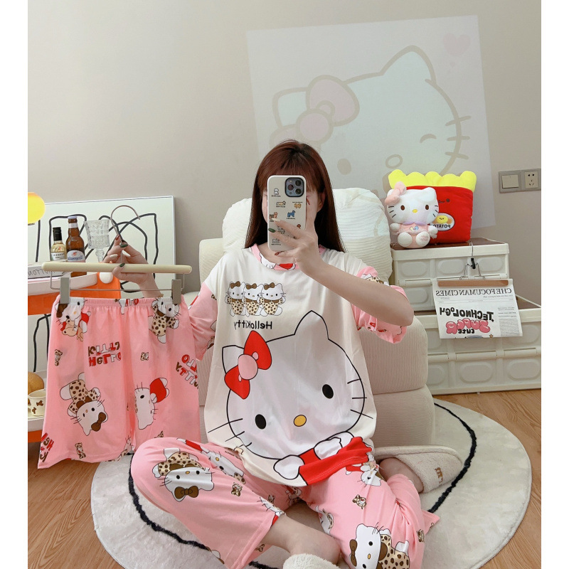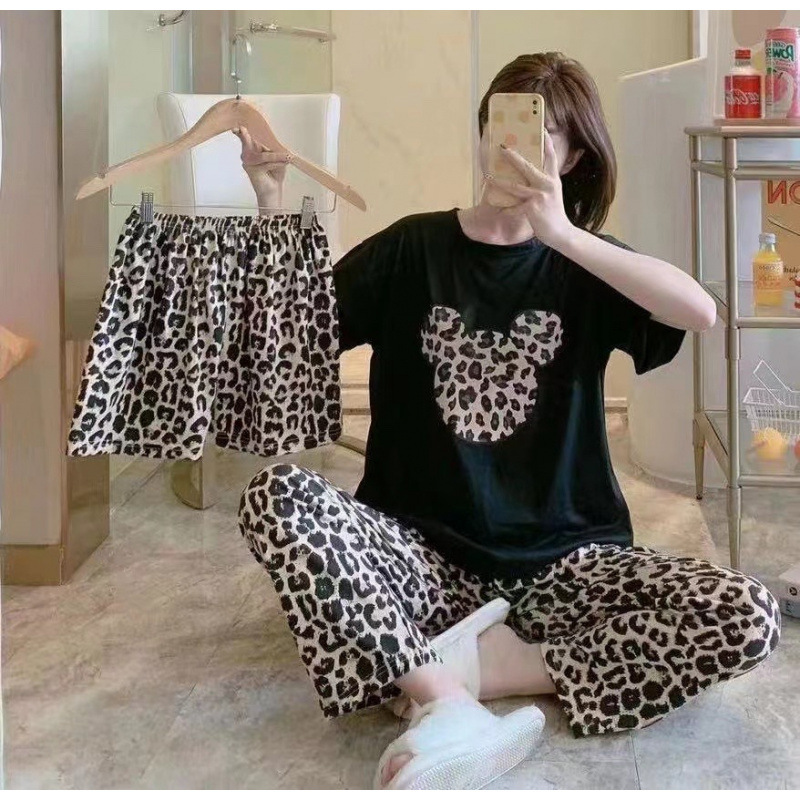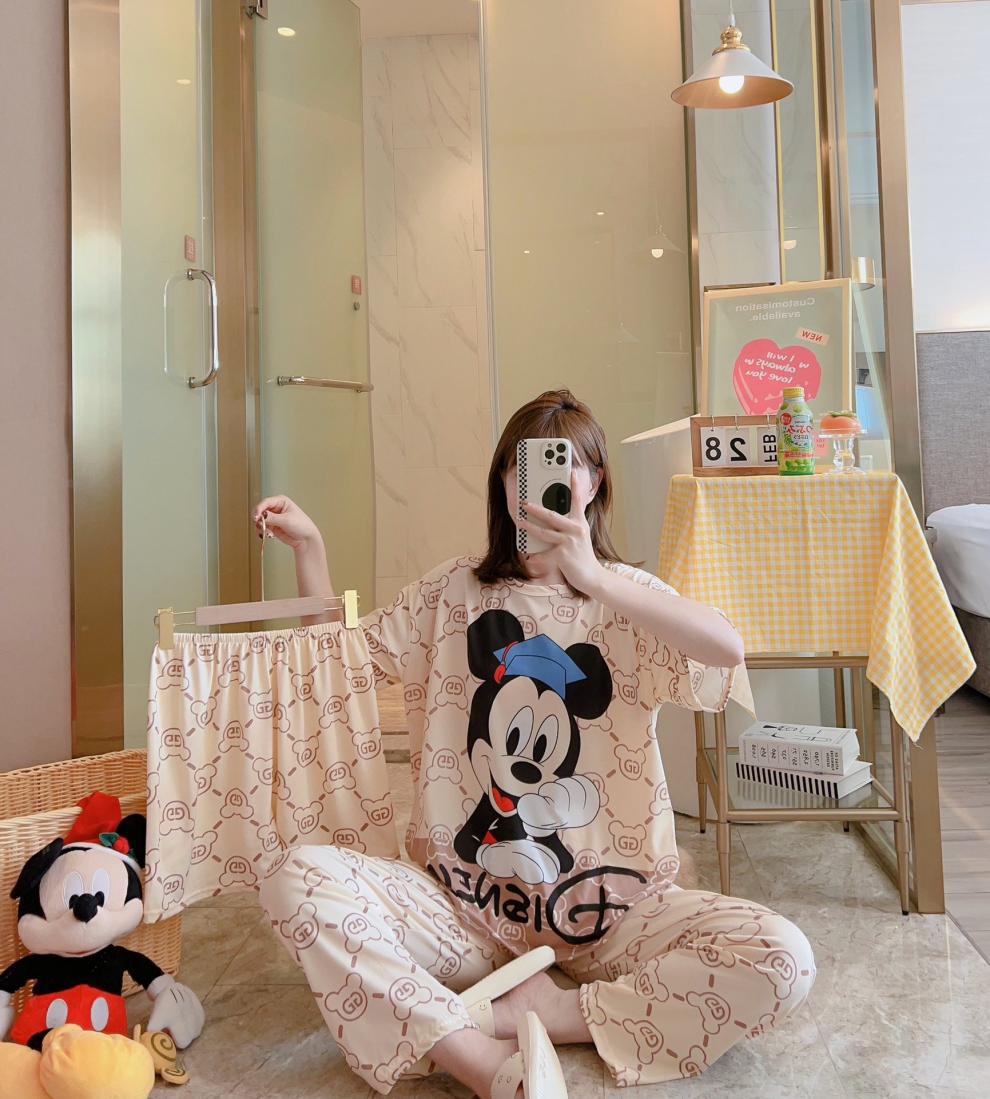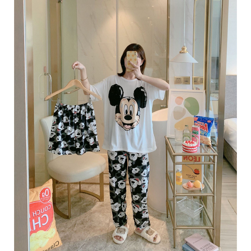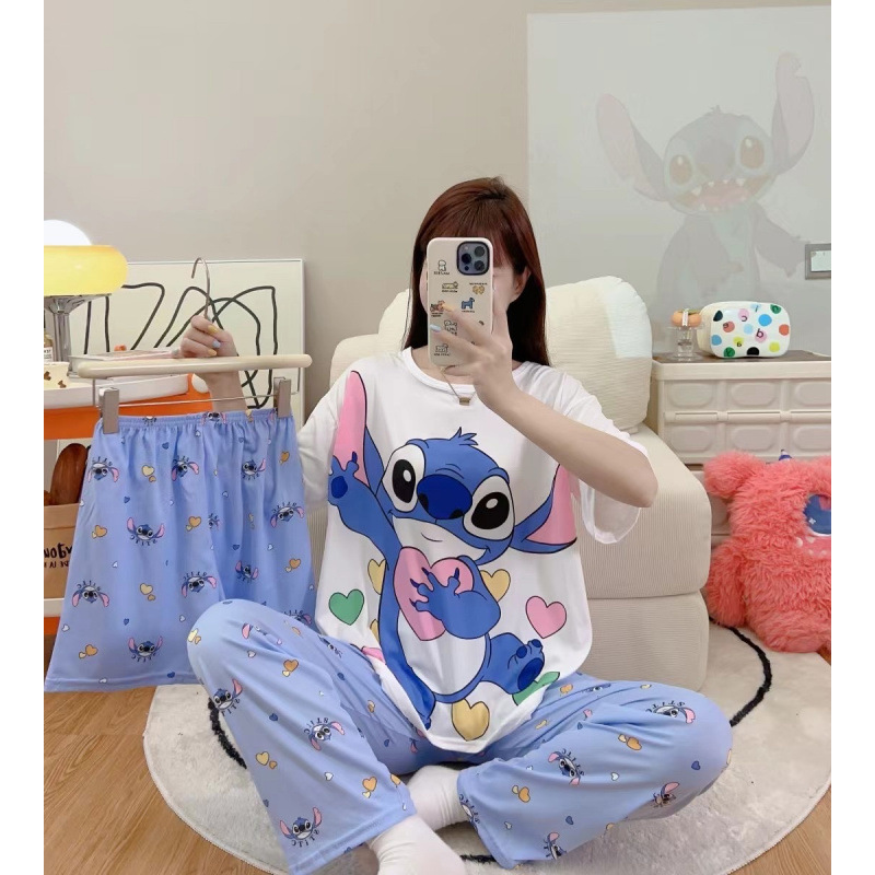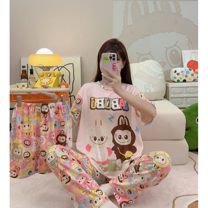2024 새로운 여름 단면 우유 실크 귀여운 달콤한 만화 짧은 소매 3 피스 잠옷 세트스토어 가기