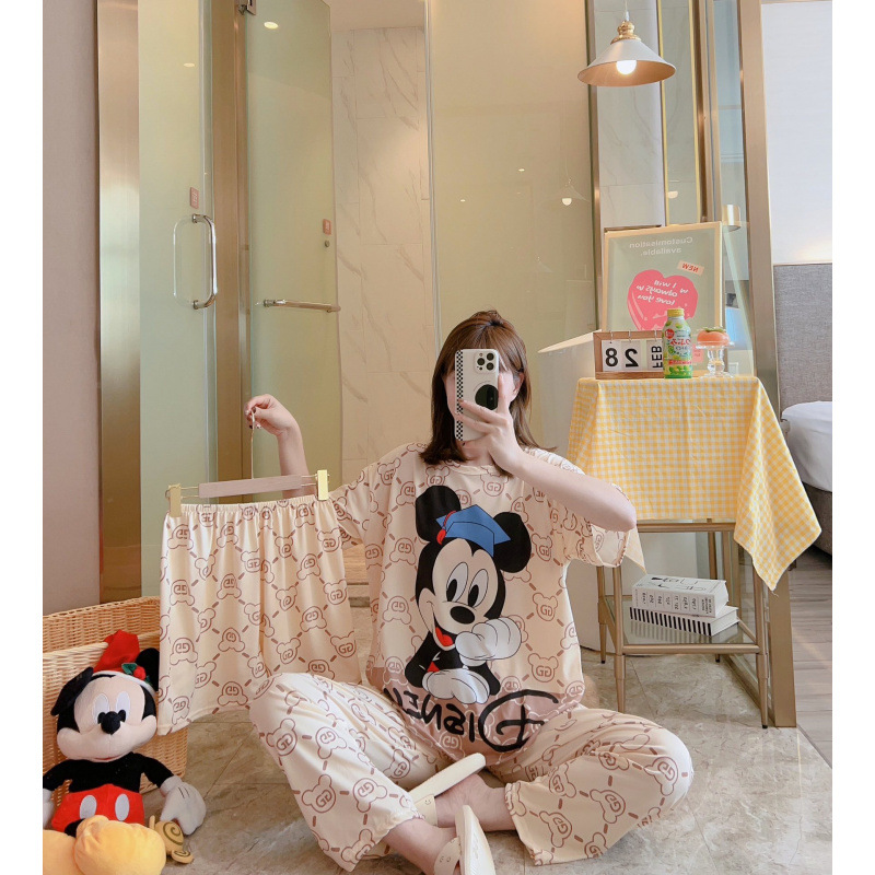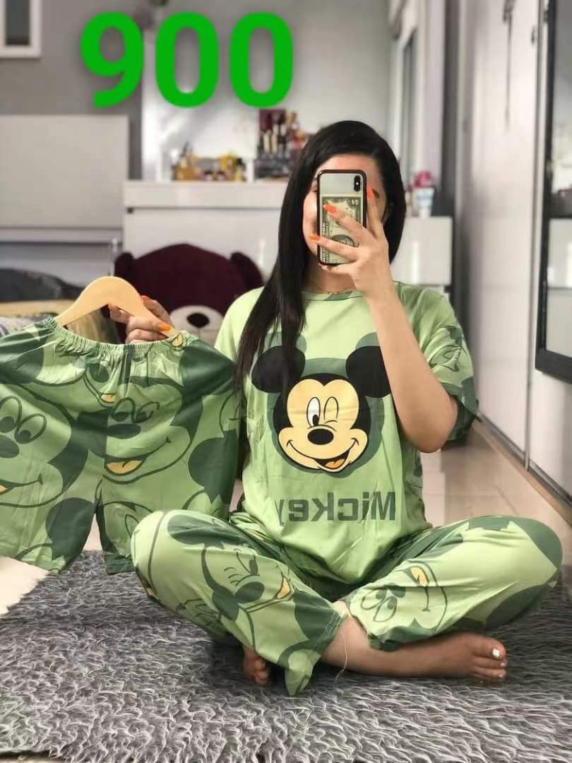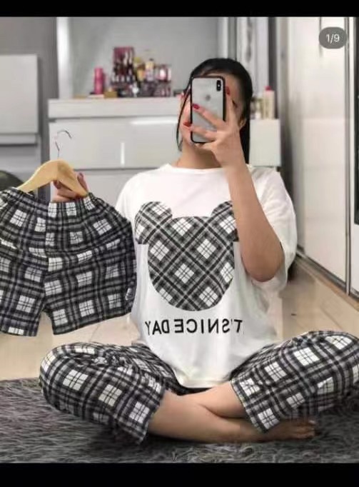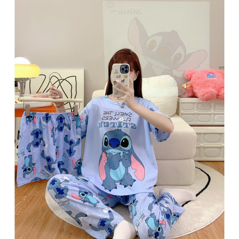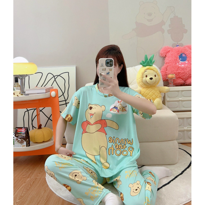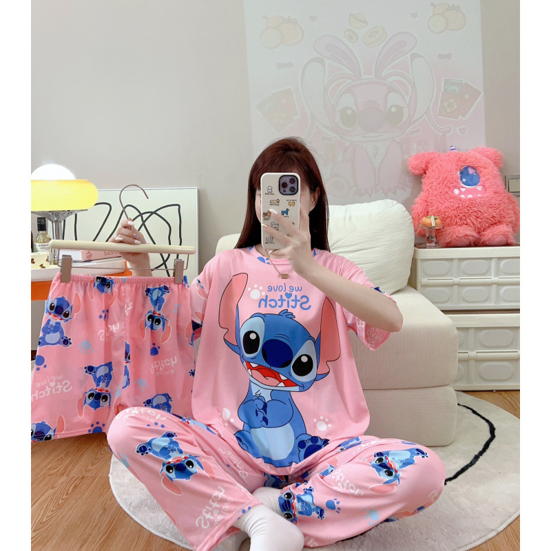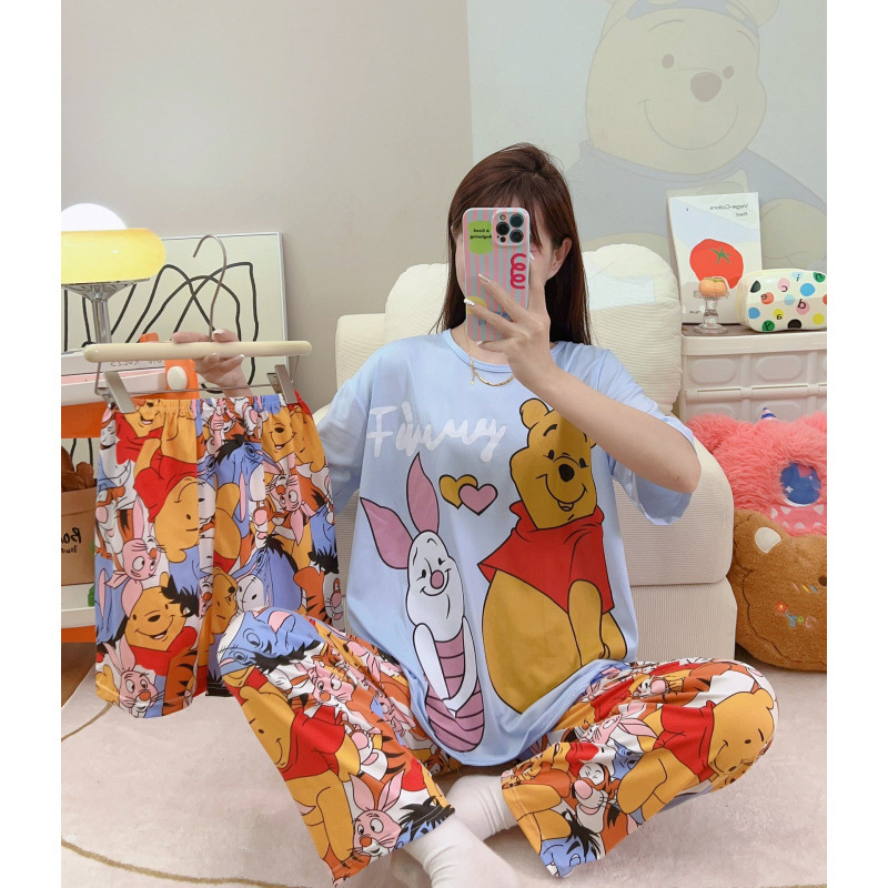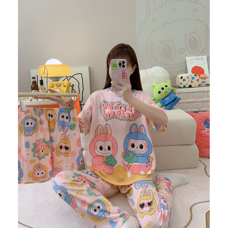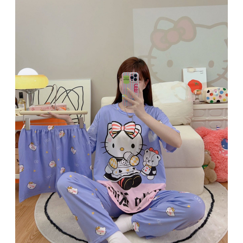 2024 새로운 여름 단면 우유 실크 귀여운 달콤한 만화 짧은 소매 3 피스 잠옷 세트스토어 가기