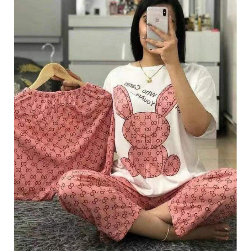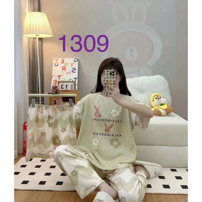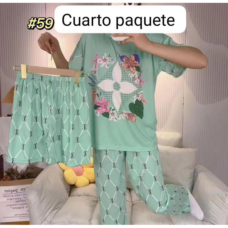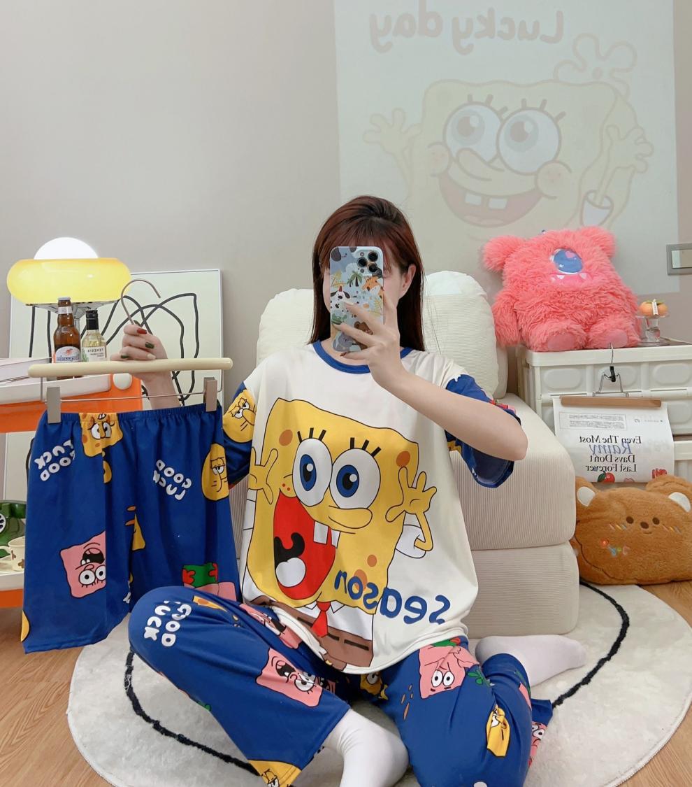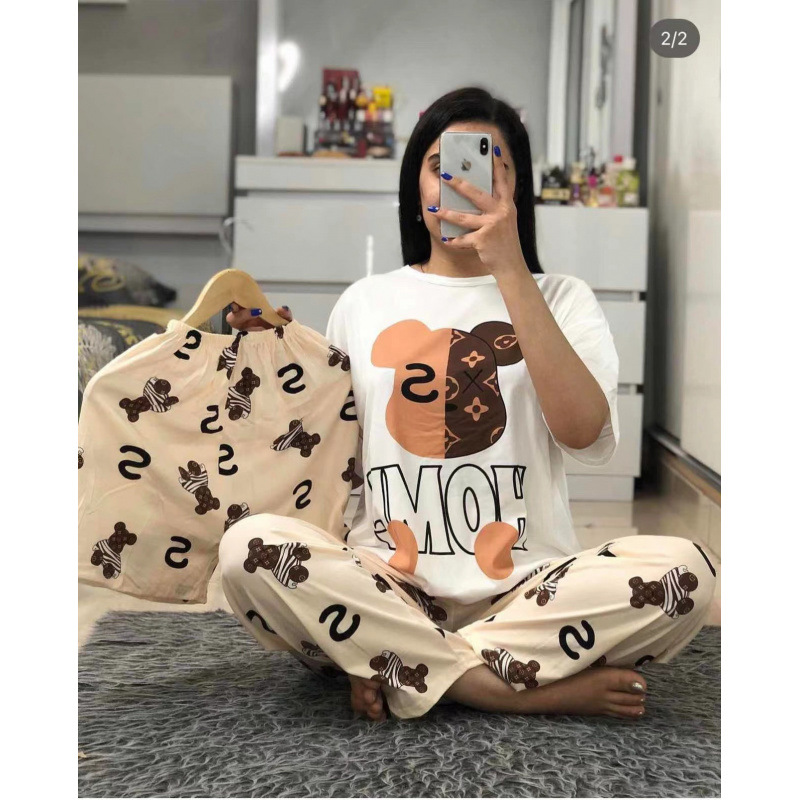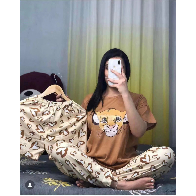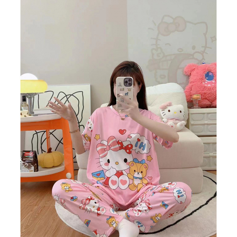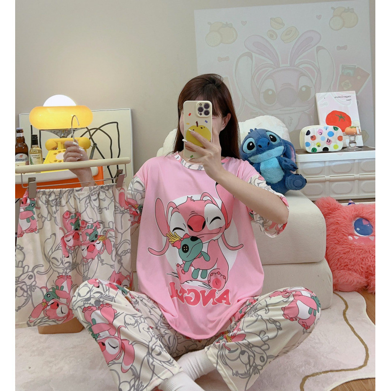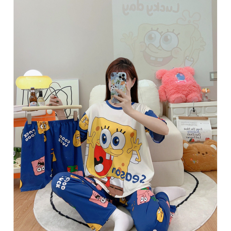 2024 새로운 여름 단면 우유 실크 귀여운 달콤한 만화 짧은 소매 3 피스 잠옷 세트스토어 가기