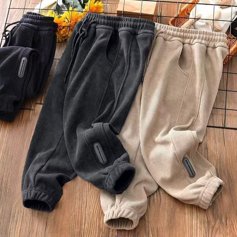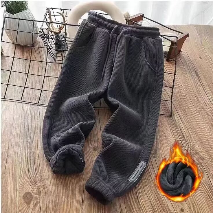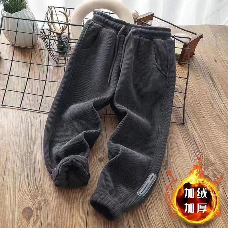 남학생 원피스 벨벳 스포츠 바지 2024 가을 겨울 소년 벨벳 느슨한 운동복 대형 어린이 캐주얼 바지스토어 가기
